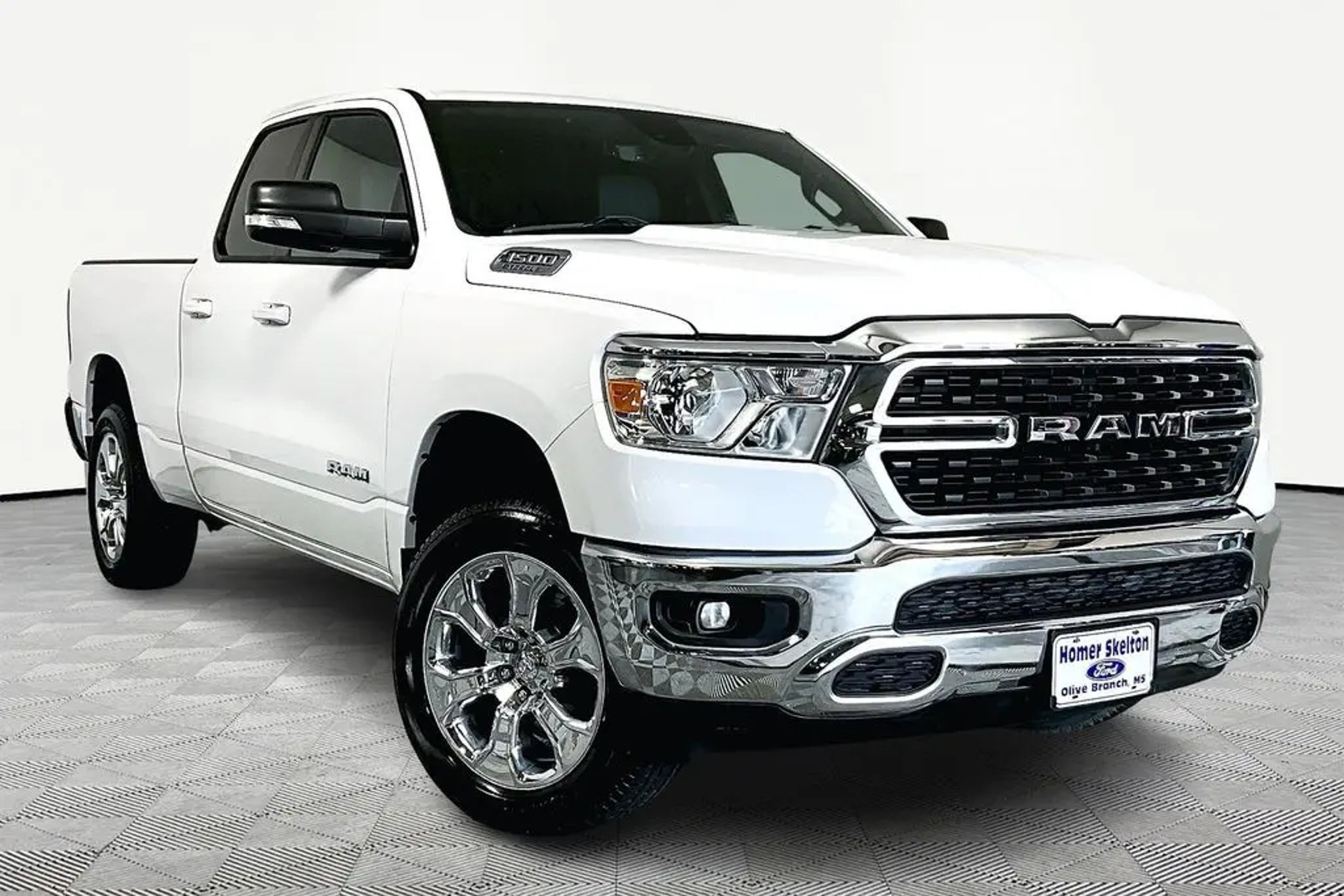 Clean CARFAX. Bright White Clearcoat 2022 Ram 1500 Big Horn/Lone Star 4WD 8-Speed Automatic 3.6L V6 24V VVT **CLEAN VEHICLE HISTORY REPORT**, 1500 Big Horn/Lone Star, 4D Quad Cab, 8-Speed Automatic, 4WD, 4G LTE Wi-Fi Hot Spot, 6 Speakers, Air Conditioning, Apple CarPlay, Big Horn Level 1 Equipment Group, Fully automatic headlights, Heated door mirrors, Panic alarm, Power 2-Way Driver Lumbar Adjust, Power 8-Way Driver Seat, Power steering, Power windows, Quick Order Package 23R Lone Star (Regional), Radio data system, Radio: Uconnect 5 W w/8.4 Display, Rear Window Defroster, Trailer Tow Package, Universal Garage Door Opener, Wheels: 20 x 9 Aluminum Chrome Clad. We're confident we have the right price for you, the right quality for you, the right level of trust for you and the proper respect for how you want to purchase an automobile. We pride ourselves on the best and fastest way to get all the information you need to make well-informed decisions all in 30 minutes or less. Express Buying is Fast, Simple, Friendly, and Fair. It all adds up to the right car buying experience for you. You'll simply love the way we do business. Need specific reasons to start here? Have a look at the list below: Upfront prices. Zero hassles. Homer Skelton Ford makes it easy to find the right car for you at a price you can trust. Your car's no-haggle price is the same online as it is on the lot, and we will validate our pricing 100% of the time. We also offer very flexible financing options. We stand behind our cars. All of our used cars are Quality Certified and come with a free vehicle history and safety recall report, and a 72-Hour Money-Back Guarantee. Certain vehicles may have unrepaired safety recalls. We'll buy your car even if you don't buy ours. Our fast, free appraisal process along with our partnership with Kelly Blue Book's Trade-In Buying Center ensures the most money for your Trade-In. KBB will write you a check for your automobile or we will! Either cash offer is good for seven days. And we'll buy any car, no matter its age or condition. Odometer is 7343 miles below market average!