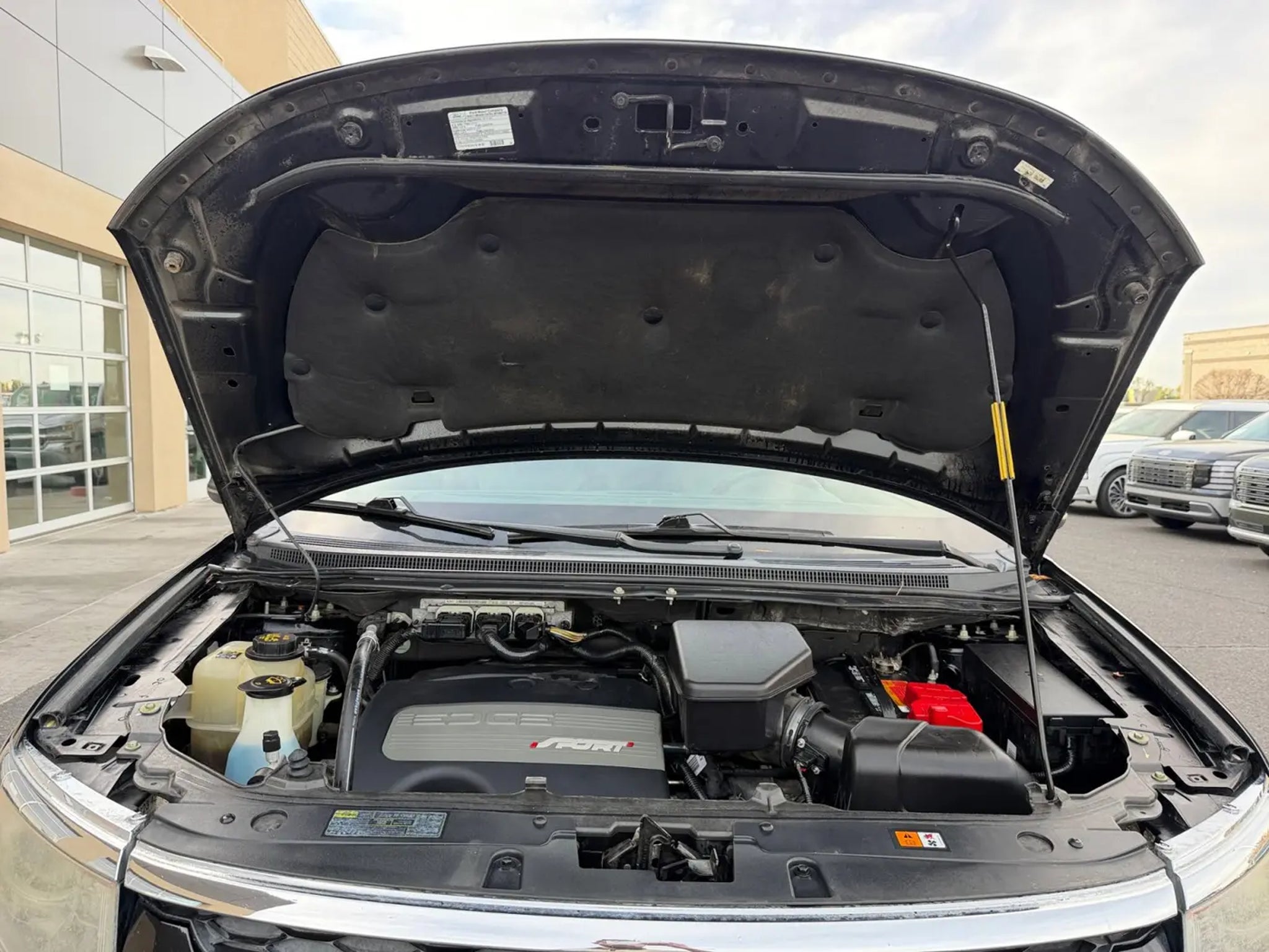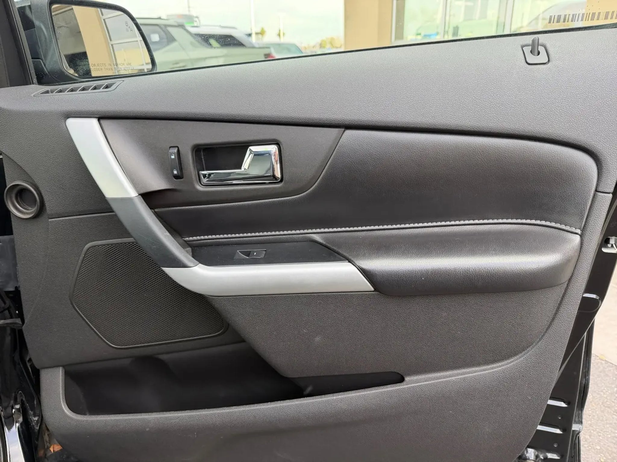 This 2012 Black Ford Edge Sport AWD is well equipped and includes these features and benefits: Driver Entry Package (Intelligent Access w/Push Button Start, Perimeter Alarm, Power Liftgate, and Remote Start), Equipment Group 400A, Vision Package (BLIS Blind Spot Information System, LED Turn Signal Mirror Indicators, and Rain Sensing Wipers), AWD, 12 Speakers, 22 Polished Aluminum Wheels, 3.39 Axle Ratio, 4-Wheel Disc Brakes, ABS brakes, Air Conditioning, All-Weather Floor Mats, Alloy wheels, AM/FM radio: SIRIUS, AM/FM Stereo w/Single CD/MP3/Navigation, Auto-dimming Rear-View mirror, Automatic temperature control, Brake assist, Bumpers: body-color, CD player, Compass, Delay-off headlights, Driver door bin, Driver vanity mirror, Dual front impact airbags, Dual front side impact airbags, Electronic Stability Control, Exterior Parking Camera Rear, Four wheel independent suspension, Front anti-roll bar, Front Bucket Seats, Front Center Armrest w/Storage, Front dual zone A/C, Front License Plate Bracket, Front reading lights, Fully automatic headlights, Garage door transmitter: HomeLink, Heated door mirrors, Heated front seats, Illuminated entry, Integrated SIRIUS Travel Link, Leather-Trimmed Heated Bucket Seats, Low tire pressure warning, Memory seat, Occupant sensing airbag, Outside temperature display, Overhead airbag, Overhead console, Panic alarm, Passenger door bin, Passenger vanity mirror, Power door mirrors, Power driver seat, Power passenger seat, Power steering, Power windows, Premium audio system: Sony, Radio data system, Radio: Sony AM/FM Stereo w/HD Radio/MyFord Touch, Rear anti-roll bar, Rear Parking Sensors, Rear reading lights, Rear seat center armrest, Rear window defroster, Rear window wiper, Remote keyless entry, Speed control, Speed-Sensitive Wipers, Split folding rear seat, Spoiler, Steering wheel mounted audio controls, Tachometer, Telescoping steering wheel, Tilt steering wheel, Traction control, Trip computer, Variably intermittent wipers, and Vista Roof. AWD, 12 Speakers, 22 Polished Aluminum Wheels, 3.39 Axle Ratio, 4-Wheel Disc Brakes, ABS brakes, Air Conditioning, All-Weather Floor Mats, Alloy wheels, AM/FM radio: SIRIUS, AM/FM Stereo w/Single CD/MP3/Navigation, Auto-dimming Rear-View mirror, Automatic temperature control, BLIS Blind Spot Information System, Brake assist, Bumpers: body-color, CD player, Compass, Delay-off headlights, Driver door bin, Driver Entry Package, Driver vanity mirror, Dual front impact airbags, Dual front side impact airbags, Electronic Stability Control, Equipment Group 400A, Exterior Parking Camera Rear, Four wheel independent suspension, Front anti-roll bar, Front Bucket Seats, Front Center Armrest w/Storage, Front dual zone A/C, Front License Plate Bracket, Front reading lights, Fully automatic headlights, Garage door transmitter: HomeLink, Heated door mirrors, Heated front seats, Illuminated entry, Integrated SIRIUS Travel Link, Intelligent Access w/Push Button Start, Leather-Trimmed Heated Bucket Seats, LED Turn Signal Mirror Indicators, Low tire pressure warning, Memory seat, Occupant sensing airbag, Outside temperature display, Overhead airbag, Overhead console, Panic alarm, Passenger door bin, Passenger vanity mirror, Perimeter Alarm, Power door mirrors, Power driver seat, Power Liftgate, Power passenger seat, Power steering, Power windows, Premium audio system: Sony, Radio data system, Radio: Sony AM/FM Stereo w/HD Radio/MyFord Touch, Rain Sensing Wipers, Rear anti-roll bar, Rear Parking Sensors, Rear reading lights, Rear seat center armrest, Rear window defroster, Rear window wiper, Remote keyless entry, Remote Start, Speed control, Speed-Sensitive Wipers, Split folding rear seat, Spoiler, Steering wheel mounted audio controls, Tachometer, Telescoping steering wheel, Tilt steering wheel, Traction control, Trip computer, Variably intermittent wipers, Vision Package, Vista Roof, AWD.Awards:* 2012 IIHS Top Safety Pick * Ward's 10 Best Engines (applie