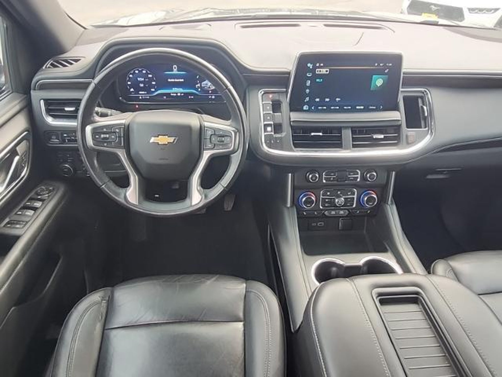 This 2022 Chevrolet Tahoe LT in Dark Ash Metallic includes the following features: EcoTec3 5.3L V8 10-Speed Automatic with Overdrive 4WD License Plate Front Mounting Package, Preferred Equipment Group 1LT (1st & 2nd Row Color-Keyed Carpeted Floor Mats, Auto-Dimming Inside Rear-View Mirror, Automatic Stop/Start, Bose 9-Speaker Stereo Audio System Feature, Bright Front & Rear Door Sill Plates, Color-Keyed Carpeting Floor Covering, Driver & Front Outboard Passenger Airbags, Enhanced Driver Information Center, Floor Console w/Storage Area, Hands-Free Rear Power Programmable Liftgate, Infotainment Display, Leather-Wrapped Steering Wheel, LED Daytime Running Lamps, Memory Settings for Driver, Remote Start, SiriusXM Radio w/360L, Start/Stop System Disable Button, Universal Home Remote, and Wireless Charging), 4WD, Black Leather, 10-Way Power Driver & Passenger Seat Adjusters, 2nd Row Manual Bucket Seats, 3.23 Rear Axle Ratio, 3rd row seats: split-bench, 4-Wheel Disc Brakes, 9 Speakers, ABS brakes, Air Conditioning, Alloy wheels, AM/FM radio: SiriusXM with 360L, Apple CarPlay/Android Auto, Auto High-beam Headlights, Auto-dimming Rear-View mirror, Automatic temperature control, Brake assist, Bumpers: body-color, Compass, Delay-off headlights, Driver door bin, Driver vanity mirror, Dual front impact airbags, Dual front side impact airbags, Electronic Stability Control, Emergency communication system: OnStar and Chevrolet connected services capable, Four wheel independent suspension, Front anti-roll bar, Front Bucket Seats, Front Center Armrest, Front dual zone A/C, Front High-Back Reclining Bucket Seats, Front reading lights, Fully automatic headlights, Garage door transmitter, Heated door mirrors, Heated Driver & Front Passenger Seats, Heated front seats, Illuminated entry, Leather steering wheel, Leather-Appointed Seat Trim, Low tire pressure warning, Memory seat, Navigation System, Not Equipped w/Front & Rear Park Assist, Not Equipped w/Steering Column Lock, Occupant sensing airbag, Outside temperature display, Overhead airbag, Overhead console, Panic alarm, Passenger door bin, Passenger vanity mirror, Power door mirrors, Power driver seat, Power Liftgate, Power passenger seat, Power steering, Power windows, Premium audio system: Chevrolet Infotainment System 3, Premium Smooth Ride Suspension, Radio: Chevrolet Infotainment 3 Premium System, Rain sensing wipers, Rear air conditioning, Rear anti-roll bar, Rear reading lights, Rear seat center armrest, Rear window defroster, Rear window wiper, Remote keyless entry