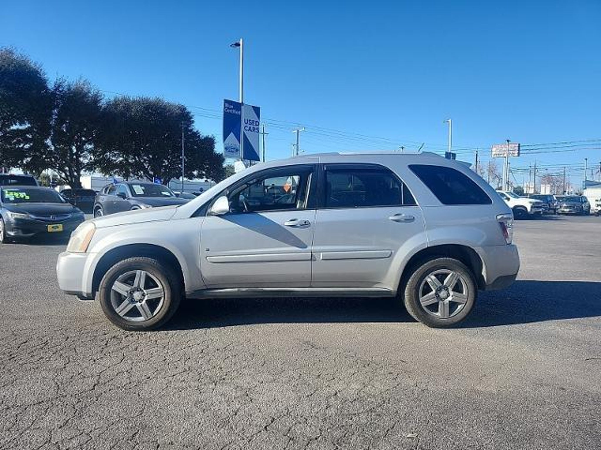 This 2009 Chevrolet Equinox LT in Blade Silver Metallic includes the following features: 3.4L V6 5-Speed Automatic Electronic with Overdrive FWD Chrome & Sound Package (17 x 7 Bright Chrome Clad Aluminum Wheels), Equipment Group 1LT, 16 x 6.5 Cast Aluminum Wheels, 2.48 Axle Ratio, 4-Wheel Disc Brakes, 6 Speakers, ABS brakes, Air Conditioning, Alloy wheels, AM/FM radio: XM, AM/FM Stereo w/CD/MP3 Player, Bluetooth? For Phone, Bodyside moldings, Bumpers: body-color, CD player, Delay-off headlights, Driver door bin, Driver vanity mirror, Dual front impact airbags, Electronic Stability Control, Emergency communication system: OnStar Safe & Sound, Four wheel independent suspension, Front anti-roll bar, Front Bucket Seats, Front Center Armrest w/Storage, Front License Plate Bracket, Front reading lights, Front Reclining Bucket Seats, Fully automatic headlights, Illuminated entry, Leather steering wheel, Low tire pressure warning, Occupant sensing airbag, Outside temperature display, Overhead airbag, Panic alarm, Passenger door bin, Passenger vanity mirror, Power door mirrors, Power steering, Power windows, Premium Cloth Seat Trim, Radio data system, Rear anti-roll bar, Rear seat center armrest, Rear window defroster, Rear window wiper, Remote keyless entry, Remote Vehicle Start, Roof rack: rails only, Security system, Speed control, Speed-sensing steering, Split folding rear seat, Spoiler, Steering wheel mounted audio controls, Tachometer, Tilt steering wheel, Traction control, Trip computer, Variably intermittent wipers, Voltmeter, and XM Radio. Blade Silver Metallic 2009 Chevrolet Equinox LT 1LT FWD 5-Speed Automatic Electronic with Overdrive 3.4L V6 Mac Haik?s Southway Ford has been serving our Friends and Family in South Texas for over twenty years. Many of our employees have been with the company since the start. This means that chances are the staff member that helps you today will be here tomorrow now that is a refreshing change! Located at 7979 IH 35 South in San Antonio, TX. We are the low price leader finishing in the top twenty Ford dealers in the nation for volume of sales in 2008. We are Blue Oval Certified by Ford Motor Company for our commitment to customer satisfaction before and after the sale of their new vehicle. Recent Arrival! Reviews: * If you need power and room, the 2009 Chevrolet Equinox offers some of the best passenger and cargo space in its class, as well as a standard V6 engine. The muscular good looks, comfy seats and long list of optional features are just icing on the cake