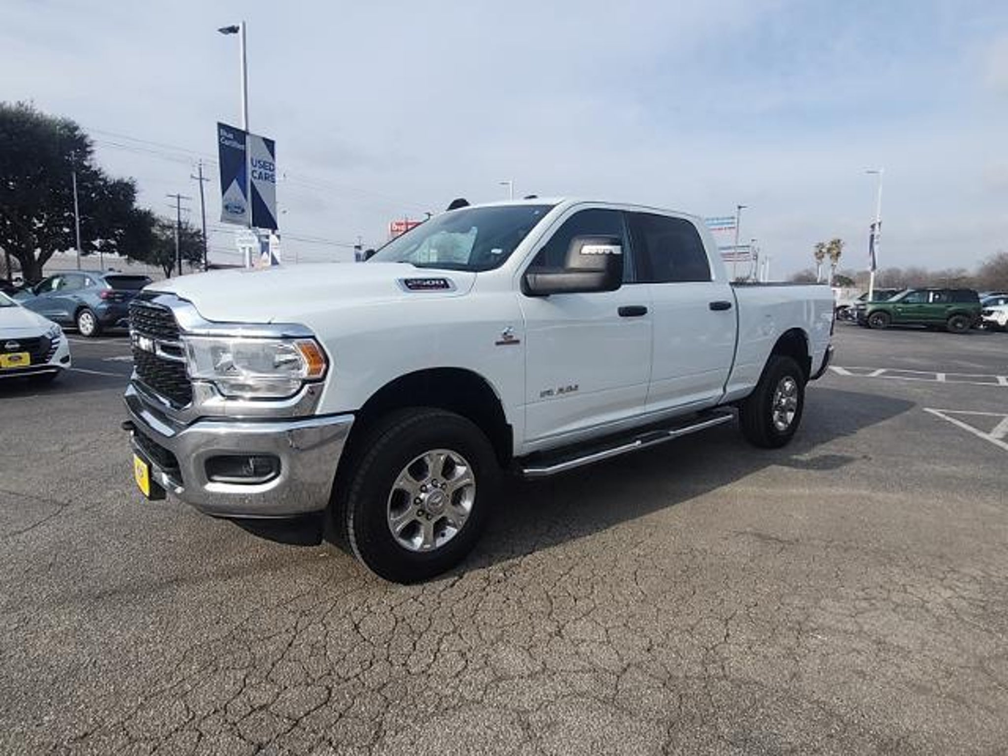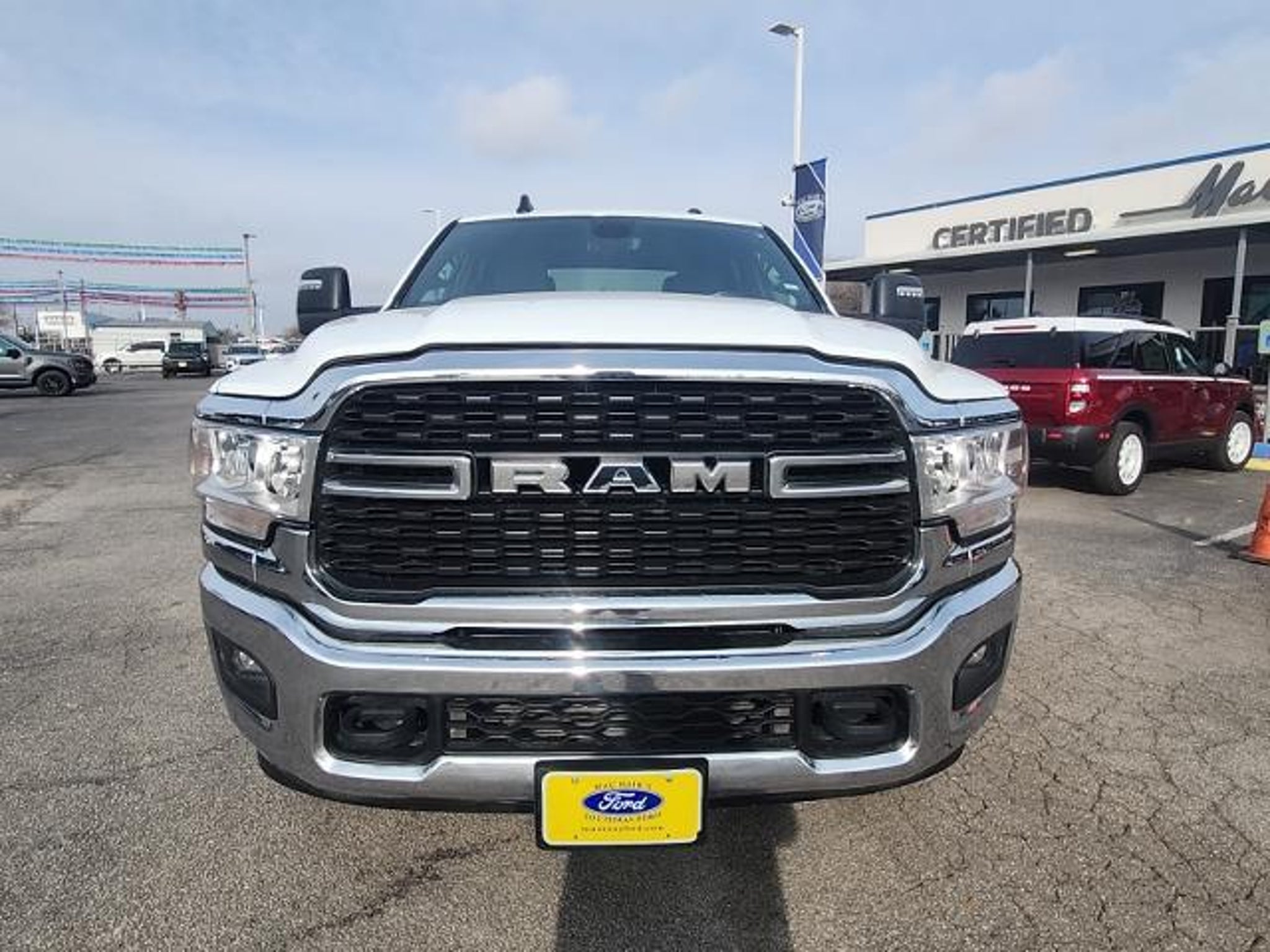 This 2024 Ram 2500 Big Horn in Bright White Clearcoat includes the following features: Cummins 6.7L I6 Turbodiesel 6-Speed Automatic 4WD Level 1 Equipment Group (2 Way Rear Headrest Seat, 2nd Row In Floor Storage Bins, 4 Way Front Headrests, 40/20/40 Split Bench Seat, 4G LTE Wi-Fi Hot Spot, 8.4 Touchscreen Display, Apple CarPlay, Auto Power-Folding Mirrors, Big Horn IP Badge, Black Exterior Mirrors, Bluetooth Handsfree Phone & Audio, Center Hub, Connectivity - US/Canada, Dual Glove Boxes, Exterior Mirrors Courtesy Lamps, Exterior Mirrors w/Heating Element, Exterior Mirrors w/Supplemental Signals, Foam Bottle Insert (Door Trim Panel), Footwell Courtesy Lamp, For Details, Visit DriveUconnect.com, For More Info, Call 800-643-2112, Forward & Reverse Utility Lights, Front Armrest w/Cupholders, Front Center Seat Cushion Storage, Front Fog Lamps, Front Seat Back Map Pockets, Global Telematics Box Module (TBM), Glove Box Lamp, Google Android Auto, GPS Antenna Input, Integrated Center Stack Radio, Integrated Voice Command w/Bluetooth, Leather Wrapped Steering Wheel, Locking Lower Glove Box, Manual Adjust 4-Way Front Passenger Seat, Mirror Running Lights, Power 2-Way Driver Lumbar Adjust, Power Adjust 8-Way Driver Seat, Power Adjust Mirrors, Power Adjustable Convex Aux Mirrors, Power Heated Fold Telescope Mirrors, Power Telescoping Mirrors, Rear 60/40 Folding Seat, Rear Dome w/On/Off Switch Lamp, Remote USB Port - Charge Only, Selectable Tire Fill Alert, SiriusXM Radio Service, SiriusXM Satellite Radio, Steering Wheel Mounted Audio Controls, Storage Tray, and Wheels: 18 x 8.0 Polished Aluminum), Quick Order Package 2HZ Big Horn, 3.73 Axle Ratio, 4-Wheel Disc Brakes, 6 Speakers, ABS brakes, Active Noise Control System, Air Conditioning, Brake assist, Bumpers: chrome, Center Stack Storage Drawer, Chrome Flat Cab-Length Side Steps, Cloth 40/20/40 Bench Seat, Compass, Delay-off headlights, Driver door bin, Dual front impact airbags, Dual front side impact airbags, Electronic Stability Control, Electronically Controlled Throttle, Emergency communication system: SiriusXM Guardian, Front anti-roll bar, Front Center Armrest w/Storage, Front License Plate Bracket, Front reading lights, Fully automatic headlights, Heated door mirrors, Illuminated entry, Low tire pressure warning, Manual Adjust 4-Way Driver Seat, Manufacturer's Statement of Origin, Occupant sensing airbag, Outside temperature display, Overhead airbag, Overhead console, Panic alarm, ParkView Rear Back-Up Camera, Passenger door bin, Passenger vanity mirror, Pow