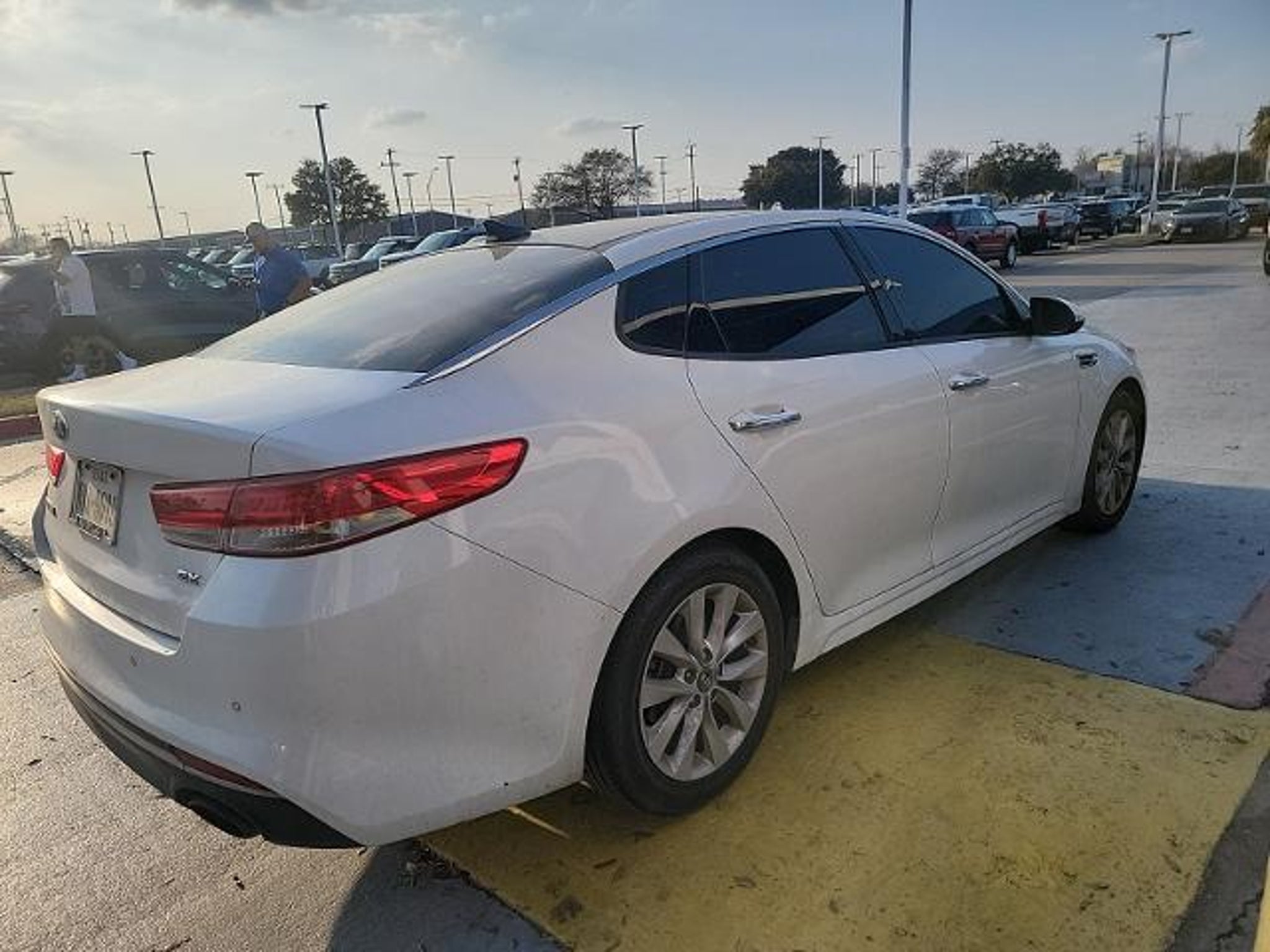 This 2018 Kia Optima EX in Snow White Pearl includes the following features: 2.4L I4 DGI DOHC 6-Speed Automatic with Sportmatic FWD Premium Package (10-Way Power Adjustable Passenger Seat, Auto-Dimming Rear-View Mirror, Heated & Ventilated Front Seats, LED Overhead Front & Rear Reading Lamps, and Panoramic Sunroof), Gray Leather, 4-Wheel Disc Brakes, 6 Speakers, 6.5J x 17 Alloy Wheels, ABS brakes, Air Conditioning, Alloy wheels, AM/FM radio: SiriusXM, Anti-whiplash front head restraints, Apple CarPlay & Android Auto, Automatic temperature control, Brake assist, Bumpers: body-color, Cargo Mat, Cargo Net, Cargo Tray, Delay-off headlights, Driver door bin, Driver vanity mirror, Dual front impact airbags, Dual front side impact airbags, Electronic Stability Control, Emergency communication system, Exterior Parking Camera Rear, Four wheel independent suspension, Front anti-roll bar, Front Bucket Seats, Front Center Armrest, Front dual zone A/C, Front reading lights, Fully automatic headlights, Heated door mirrors, Heated Front Bucket Seats, Heated front seats, Illuminated entry, Knee airbag, Leather Seat Trim, Leather Shift Knob, Leather steering wheel, Low tire pressure warning, Memory seat, Occupant sensing airbag, Outside temperature display, Overhead airbag, Overhead console, Panic alarm, Passenger door bin, Passenger vanity mirror, Power door mirrors, Power driver seat, Power steering, Power windows, Radio data system, Radio: AM/FM/MP3/SiriusXM Audio System, Rear anti-roll bar, Rear Parking Sensors, Rear reading lights, Rear seat center armrest, Rear window defroster, Remote keyless entry, Security system, Speed control, Speed-sensing steering, Split folding rear seat, Steering wheel mounted audio controls, Tachometer, Telescoping steering wheel, Tilt steering wheel, Traction control, Trip computer, Turn signal indicator mirrors, and Variably intermittent wipers. Snow White Pearl 2018 Kia Optima EX FWD 6-Speed Automatic with Sportmatic 2.4L I4 DGI DOHC Gray Leather. Mac Haik?s Southway Ford has been serving our Friends and Family in South Texas for over twenty years. Many of our employees have been with the company since the start. This means that chances are the staff member that helps you today will be here tomorrow now that is a refreshing change! Located at 7979 IH 35 South in San Antonio, TX. We are the low price leader finishing in the top twenty Ford dealers in the nation for volume of sales in 2008. We are Blue Oval Certified by Ford Motor Company for our commitment to customer satisfaction bef