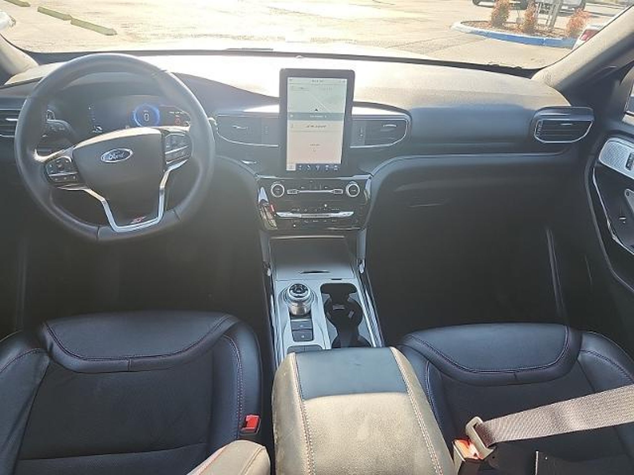 This 2023 Ford Explorer ST in Star White Metallic Tri-Coat includes the following features: 3.0L EcoBoost V6 10-Speed Automatic RWD Equipment Group 401A, Ford Co-Pilot360 Assist (Evasive Steering Assist, Intelligent Adaptive Cruise Control, Speed Sign Recognition, and Voice-Activated Touchscreen Navigation System), ST Appearance Package (Front & Rear Carpet Floor Mats and Leather Seating Surface Sprt Captain's Chairs), ST High Package (110V/150W AC Power Outlet, 360-Degree Camera w/Split View, Auto-Dimming Rearview Mirror (Interior), Front Parking Sensors, Front Rain-Sensing Wipers, Memory Driver's Seat, Power Tilt/Telescoping Steering Column, Radio: B&O Sound System by Bang & Olufsen, Reverse Brake Assist, Second Row Heated Seats, Sideview Mirrors w/Gloss Black Caps, Third Row PowerFold (Folds Flat), Universal Garage Door Opener (UGDO), and Wireless Charging Pad), ST Street Pack (Performance Front & Rear Brakes and Wheels: 21 Aluminum), Technology Package (10.1 LCD Capacitive Portrait Touchscreen and 2 Additional Speakers), 20 Machined Aluminum w/Painted Pockets Wheels, 3.58 Non-Limited-Slip Rear Axle Ratio, 3rd row seats: bench, 4-Wheel Disc Brakes, 4G LTE Wi-Fi Hotspot Credit, 6 Speakers, ABS brakes, Air Conditioning, Alloy wheels, AM/FM radio: SiriusXM, AM/FM Stereo, Auto High-beam Headlights, Automatic temperature control, Brake assist, Bumpers: body-color, Compass, Delay-off headlights, Driver door bin, Driver vanity mirror, Dual front impact airbags, Dual front side impact airbags, Electronic Stability Control, Emergency communication system: SYNC 3 911 Assist, Exterior Parking Camera Rear, FordPass Connect, Four wheel independent suspension, Front & Second Row Floor Liners (16B), Front anti-roll bar, Front Bucket Seats, Front Center Armrest, Front dual zone A/C, Front fog lights, Front reading lights, Fully automatic headlights, Heated door mirrors, Heated front seats, Heated steering wheel, Illuminated entry, Knee airbag, Leather Htd/Ventilated Sport Captain's Chairs, Leather steering wheel, Low tire pressure warning, Memory seat, Occupant sensing airbag, Outside temperature display, Overhead airbag, Overhead console, Panic alarm, Passenger door bin, Passenger vanity mirror, Power door mirrors, Power driver seat, Power Liftgate, Power passenger seat, Power steering, Power windows, Rear air conditioning, Rear anti-roll bar, Rear reading lights, Rear window defroster, Rear window wiper, Remote keyless entry, Security system, SelectShift Capability w/Paddle Shifters, Speed control, Speed-sensing st