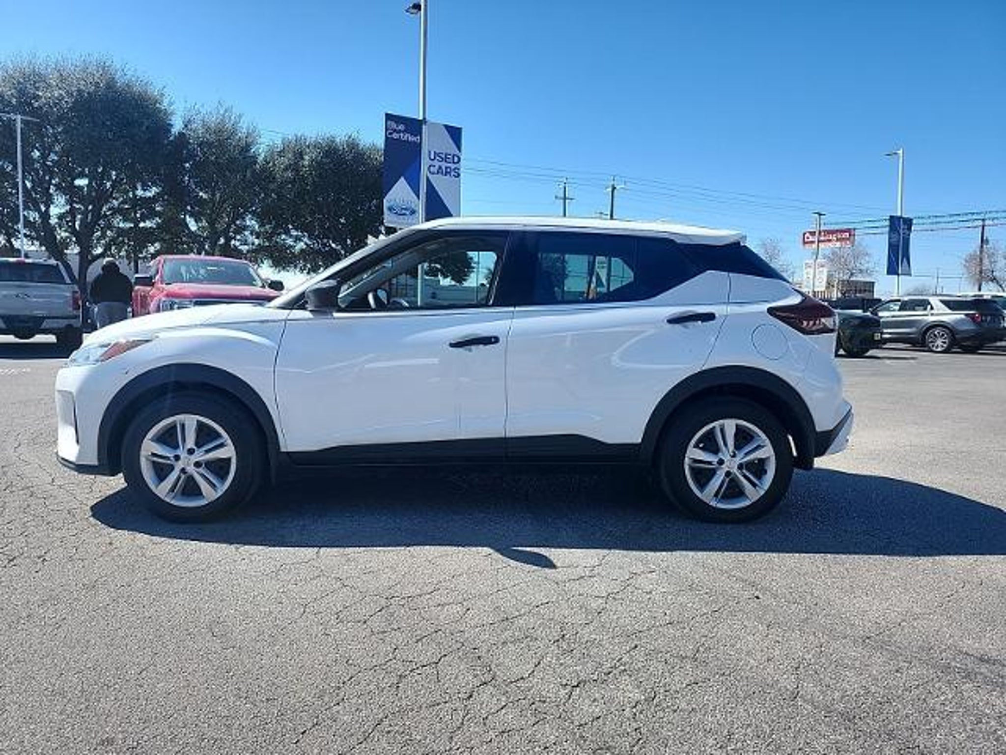This 2024 Nissan Kicks S in Fresh Powder includes the following features: 1.6L 4-Cylinder DOHC 16V CVT with Xtronic FWD 16 Steel Wheels w/Full Covers, 3.93 Axle Ratio, 6 Speakers, ABS brakes, Air Conditioning, AM/FM radio, Apple CarPlay/Android Auto, Auto High-beam Headlights, Blind Spot Warning, Brake assist, Bumpers: body-color, Carpeted Floor Mats w/Cargo Mat, Center Armrest w/Storage, Cloth Seat Trim, Driver door bin, Driver vanity mirror, Driver's Seat Mounted Armrest, Dual front impact airbags, Dual front side impact airbags, Electronic Stability Control, Front anti-roll bar, Front Bucket Seats, Front reading lights, Front wheel independent suspension, Fully automatic headlights, Illuminated entry, Knee airbag, Low tire pressure warning, Occupant sensing airbag, Outside temperature display, Overhead airbag, Panic alarm, Passenger door bin, Passenger vanity mirror, Power door mirrors, Power steering, Power windows, Radio data system, Radio: AM/FM Audio System, Rear Parking Sensors, Rear reading lights, Rear side impact airbag, Rear window defroster, Rear window wiper, Remote keyless entry, Speed control, Splash Guards Grain (4 Piece), Split folding rear seat, Sport steering wheel, Steering wheel mounted audio controls, Tachometer, Telescoping steering wheel, Tilt steering wheel, Traction control, Trip computer, and Variably intermittent wipers. Fresh Powder 2024 Nissan Kicks S FWD CVT with Xtronic 1.6L 4-Cylinder DOHC 16V Mac Haik?s Southway Ford has been serving our Friends and Family in South Texas for over twenty years. Many of our employees have been with the company since the start. This means that chances are the staff member that helps you today will be here tomorrow now that is a refreshing change! Located at 7979 IH 35 South in San Antonio, TX. We are the low price leader finishing in the top twenty Ford dealers in the nation for volume of sales in 2008. We are Blue Oval Certified by Ford Motor Company for our commitment to customer satisfaction before and after the sale of their new vehicle. Recent Arrival! 31/36 City/Highway MPG