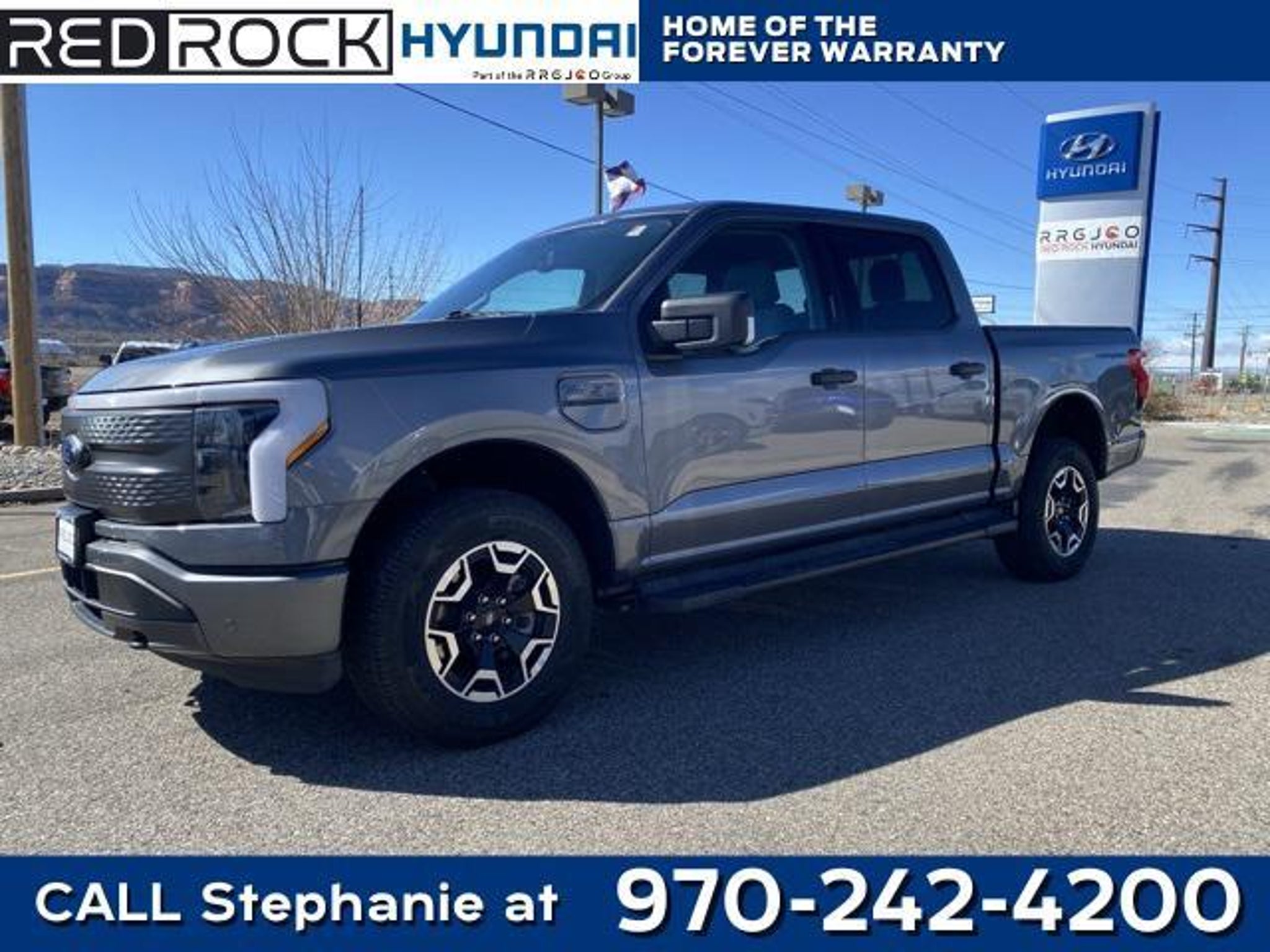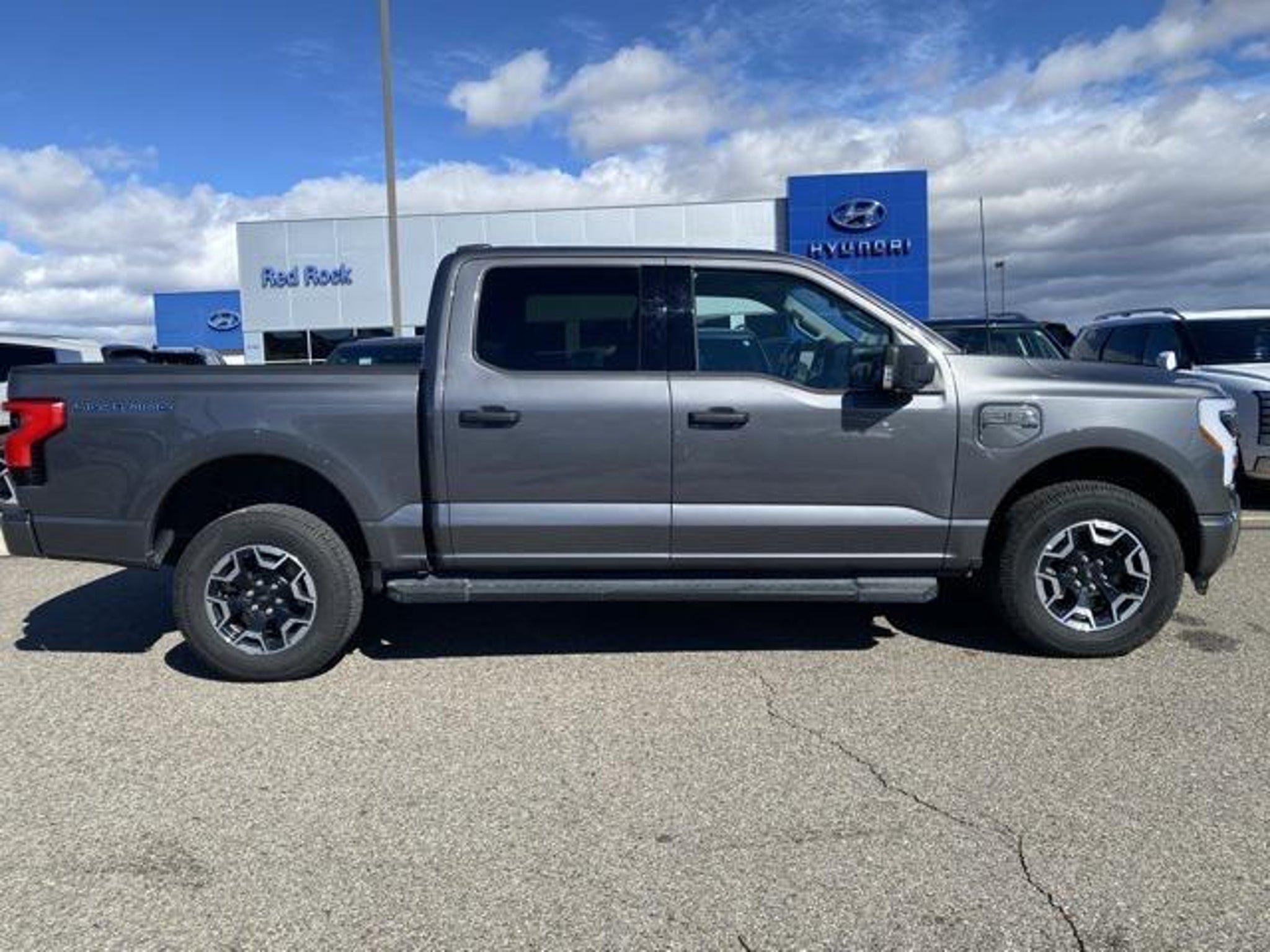 RED ROCK FOREVER WARRANTY. NO CHARGE 100% LIFETIME POWER TRAIN WARRANTY RED ROCK vehicles with less than 60,000 miles, 6 years and newer, non luxury or altered vehicles, come with a Lifetime Power train Warranty. This warranty is valid in all fifty states. ALL At No Charge just for doing business with RED ROCK Auto Group. While we make every effort to ensure the data listed here is correct, there may be instances where some of the options or vehicle features may be listed incorrectly as we get data from multiple data sources. PLEASE MAKE SURE to confirm the details of this vehicle with the dealer to ensure its accuracy. Dealer cannot be held liable for data that is listed incorrectly. See Dealer for details. CARFAX One-Owner. 76/61 City/Highway MPG Red Rock Hyundai proudly offers this 2023 Ford F-150 Lightning XLT AWD in Carbonized Gray Metallic it comes well equipped with these standard and optional features, Equipment Group 311A Standard, 4-Wheel Disc Brakes, 6 Speakers, ABS brakes, Adjustable pedals, Air Conditioning, Alloy wheels, Auto High-beam Headlights, Auto-dimming Rear-View mirror, Automatic temperature control, Brake assist, Bumpers: body-color, Cloth Heated Front Seats, Compass, Delay-off headlights, Driver door bin, Driver vanity mirror, Dual front impact airbags, Dual front side impact airbags, Electronic Stability Control, Emergency communication system: SYNC 4 911 Assist, Forward Sensing System, Four wheel independent suspension, Front anti-roll bar, Front Bucket Seats, Front Center Armrest, Front dual zone A/C, Front reading lights, Fully automatic headlights, Heated door mirrors, Heated front seats, Illuminated entry, Illuminated running boards, Knee airbag, Low tire pressure warning, Mobile Power Cord (120/240V), Navigation System, Occupant sensing airbag, Outside temperature display, Overhead airbag, Overhead console, Panic alarm, Passenger door bin, Passenger vanity mirror, Power door mirrors, Power driver seat, Power steering, Power windows, Radio data system, Radio: SiriusXM w/360L, Rear anti-roll bar, Rear reading lights, Rear step bumper, Rear window defroster, Remote keyless entry, Security system, Speed control, Speed-sensing steering, Split folding rear seat, Steering wheel mounted audio controls, SYNC 4 w/Enhanced Voice Recognition, Telescoping steering wheel, Tilt steering wheel, Traction control, Trip computer, Turn signal indicator mirrors, Variably intermittent wipers, Wheels: 18 Machined w/Black High Gloss Pockets, and Wheels: 20 Alloy Dark Carbonized Gray.