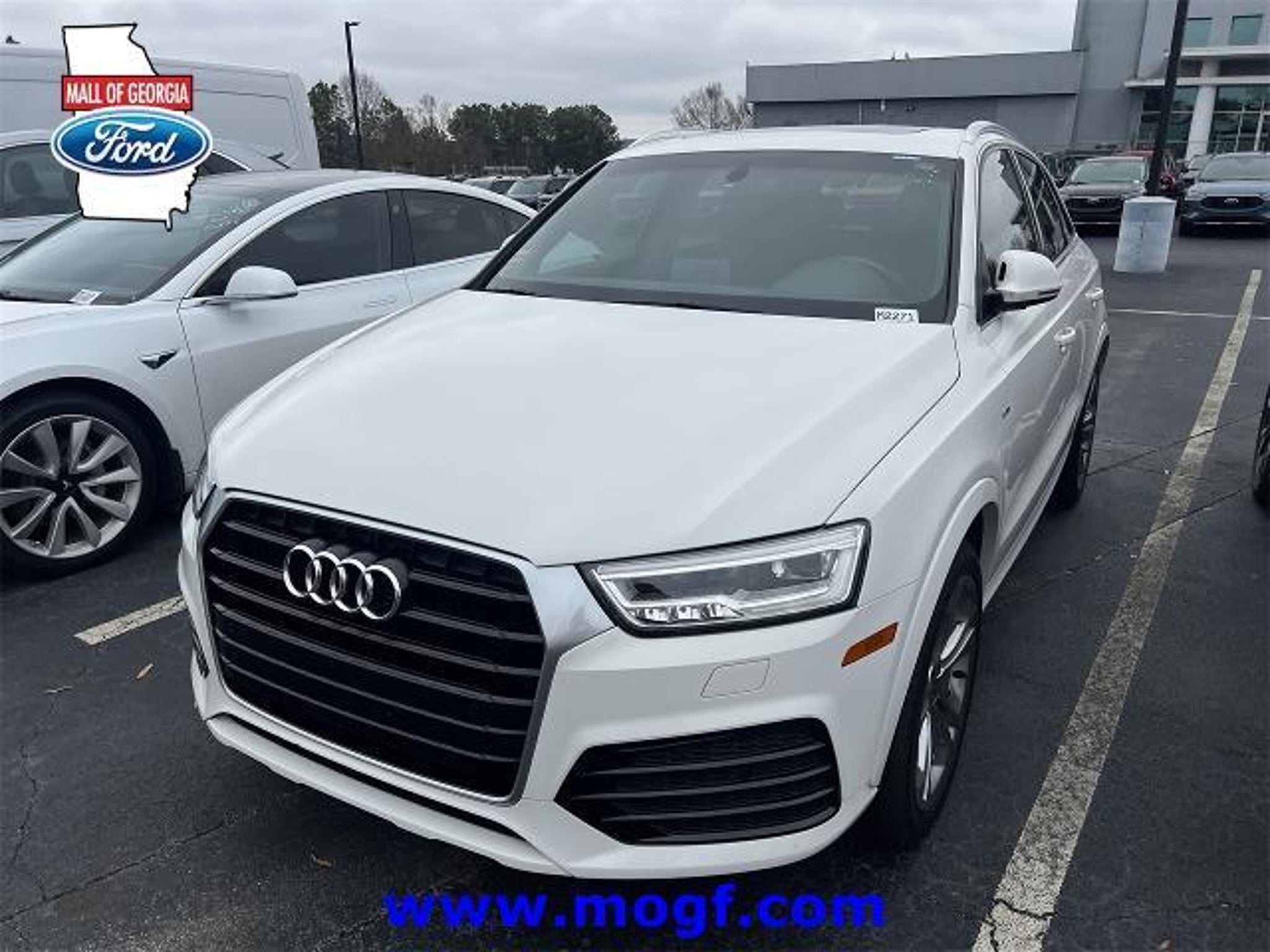 ** ALLOY WHEELS **, ** NAVIGATION / NAV / NAVI / GPS **, ** LOCAL TRADE **, ** SUNROOF / MOONROOF **, ** LOW MILES **, **LEATHER**, Q3 2.0T Prestige, 4D Sport Utility, 2.0L 4-Cylinder TFSI, 6-Speed Automatic with Tiptronic, FrontTrak, Cortina White, Chestnut Brown w/Leather Seating Surfaces, 10 Speakers, AM/FM radio, Audi Advanced Key, Audi Connect w/Online Services, Audi Side Assist, Auto-Dimming Interior Mirror w/Compass, Automatic temperature control, BOSE Surround Sound, Brake assist, CD player, Color Driver Information System w/Trip Computer, Electronic Stability Control, Exterior Parking Camera Rear, Front fog lights, Full LED Headlights & LED Taillights, Heated Front Seats, High intensity discharge headlights: Xenon plus, Leather Seating Surfaces, Leather steering wheel, Low tire pressure warning, Navigation System, Power Folding Heated Exterior Mirrors, Power moonroof, Power Tailgate, Prestige Package, Radio data system, Radio: Audi Concert, Radio: MMI Navigation Plus, Rain sensing wipers, Rear fog lights, Remote keyless entry, Security system, Spoiler, Steering wheel mounted audio controls, Technology Package, Traction control, Wheels: 8.5 x 19 5-Double-Spoke-Design. Recent Arrival! Odometer is 10643 miles below market average! 20/28 City/Highway MPG Awards: * 2017 KBB.com 10 Best Luxury Cars Under $35,000 Mall of Georgia Ford...... Call Today