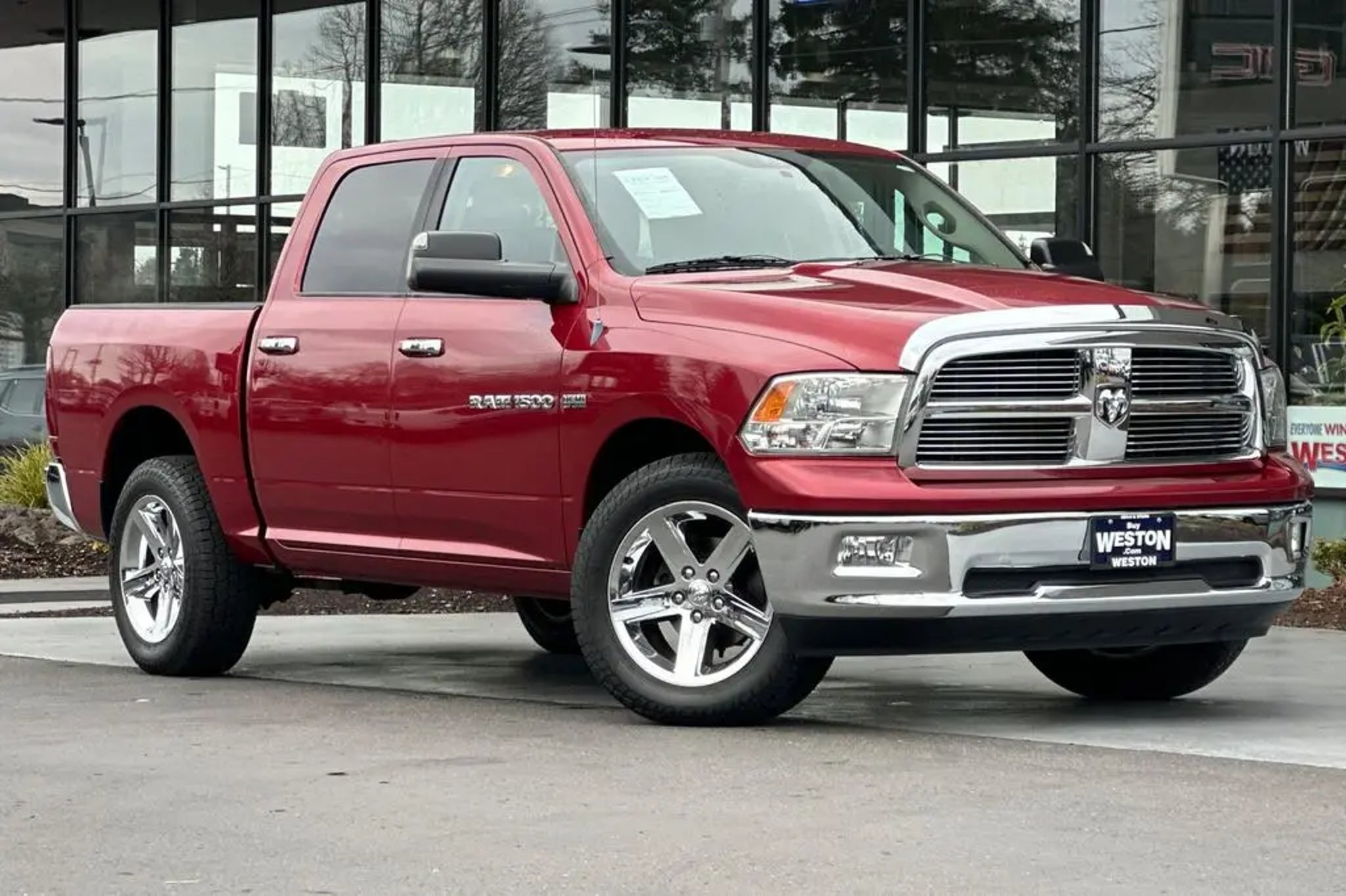 CARFAX One-Owner. 2012 Ram 1500 Big Horn Deep Cherry Red Crystal Pearlcoat One Owner, Fresh Oil Change, No Accident on Carfax, 4-Wheel Disc Brakes, 6 Speakers, 9 Amplified Speakers w/Subwoofer, ABS brakes, Air Conditioning, Ash Tray Lamp, Auto-Dimming Exterior Mirrors, Auto-Dimming Rear-View Mirror, Brake assist, CD player, Compass, Dual front impact airbags, Dual front side impact airbags, Electronic Stability Control, Exterior Mirrors Courtesy Lamps, Exterior Mirrors w/Supplemental Signals, Fog Lamps, Glove Box Lamp, Low tire pressure warning, Luxury Group, Occupant sensing airbag, Overhead Console w/UGDO, ParkSense Rear Park Assist System, Power door mirrors, Power Heated Fold-Away Mirrors, Power steering, Power windows, Rear Dome w/On/Off Switch Lamp, Speed control, Sun Visors w/Illuminated Vanity Mirrors, Tachometer, Technology Group, Tilt steering wheel, Traction control, Trip computer, Underhood Lamp, Universal Garage Door Opener.