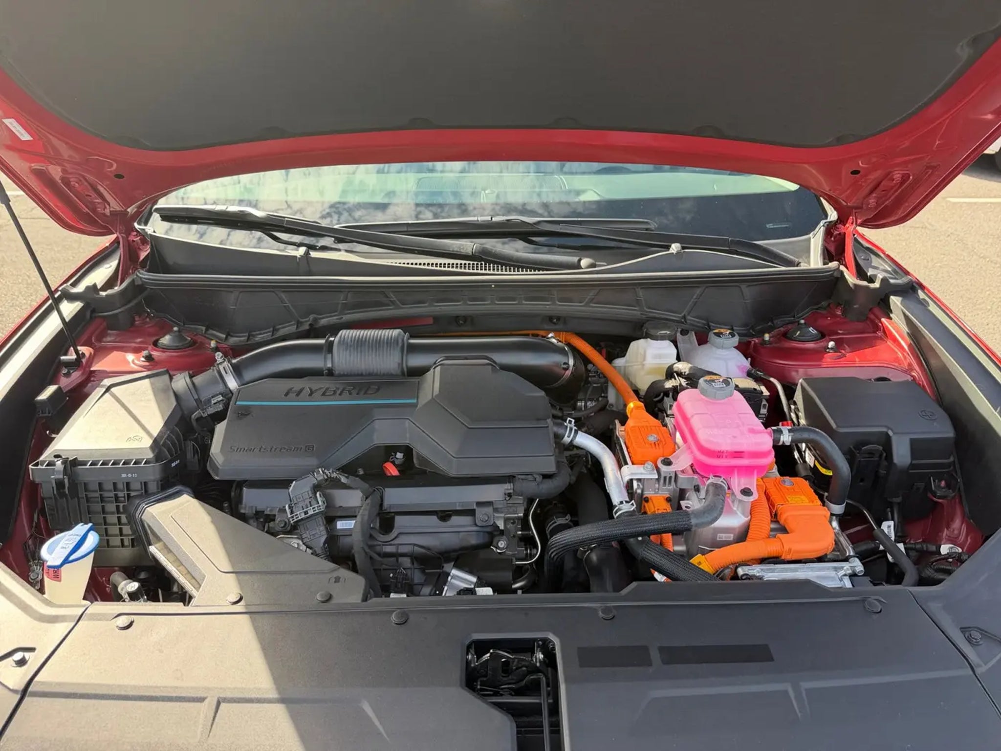 This 2025 Ultimate Red Hyundai Tucson Hybrid Blue AWD is well equipped and includes these features and benefits: Option Group 01, 1.6L I4 DGI Hybrid Turbocharged DOHC 16V LEV3-SULEV30, 17 Alloy Wheels, 4-Wheel Disc Brakes, 6 Speakers, ABS brakes, Air Conditioning, All Season Fitted Liners, Alloy wheels, AM/FM radio: SiriusXM, Apple CarPlay & Android Auto, Auto High-beam Headlights, Automatic temperature control, Brake assist, Bumpers: body-color, Cargo Cover, Cargo Net, Cargo Tray, Carpeted Floor Mats, Delay-off headlights, Driver door bin, Driver vanity mirror, Dual front impact airbags, Dual front side impact airbags, Electronic Stability Control, Emergency communication system: Bluelink, First Aid Kit, Four wheel independent suspension, Front anti-roll bar, Front Bucket Seats, Front Center Armrest, Front dual zone A/C, Front reading lights, Fully automatic headlights, Heated door mirrors, Heated Front Bucket Seats, Heated front seats, Illuminated entry, Low tire pressure warning, Mud Guards, Occupant sensing airbag, Outside temperature display, Overhead airbag, Overhead console, Panic alarm, Passenger door bin, Passenger vanity mirror, Power door mirrors, Power driver seat, Power Liftgate, Power steering, Power windows, Radio data system, Radio: AM/FM/HD Audio System, Rear anti-roll bar, Rear reading lights, Rear seat center armrest, Rear side impact airbag, Rear window defroster, Rear window wiper, Remote keyless entry, Security system, Speed control, Split folding rear seat, Spoiler, Stain & Odor Resistant Cloth Seat Trim, Steering wheel mounted audio controls, Tachometer, Telescoping steering wheel, Tilt steering wheel, Traction control, Trip computer, and Variably intermittent wipers. 1.6L I4 DGI Hybrid Turbocharged DOHC 16V LEV3-SULEV30, 17 Alloy Wheels, 4-Wheel Disc Brakes, 6 Speakers, ABS brakes, Air Conditioning, All Season Fitted Liners, Alloy wheels, AM/FM radio: SiriusXM, Apple CarPlay & Android Auto, Auto High-beam Headlights, Automatic temperature control, Brake assist, Bumpers: body-color, Cargo Cover, Cargo Net, Cargo Tray, Carpeted Floor Mats, Delay-off headlights, Driver door bin, Driver vanity mirror, Dual front impact airbags, Dual front side impact airbags, Electronic Stability Control, Emergency communication system: Bluelink, First Aid Kit, Four wheel independent suspension, Front anti-roll bar, Front Bucket Seats, Front Center Armrest, Front dual zone A/C, Front reading lights, Fully automatic headlights, Heated door mirrors, Heated Front Bucket Seats, Heated front seats, Illuminated entry, Low tire pressure warning, Mud Guards, Occupant sensing airbag, Option Group 01, Outside temperature display, Overhead airbag, Overhead console, Panic alarm, Passenger door bin, Passenger vanity mirror, Power door mirrors, Power driver seat, Power Liftgate, Power steering, Power windows, Radio data system, Radio: AM/FM/HD Audio System, Rear anti-roll bar, Rear reading lights, Rear seat center armrest, Rear side impact airbag, Rear window defroster, Rear window wiper, Remote keyless entry, Security system, Speed control, Split folding rear seat, Spoiler, Stain & Odor Resistant Cloth Seat Trim, Steering wheel mounted audio controls, Tachometer, Telescoping steering wheel, Tilt steering wheel, Traction control, Trip computer, Variably intermittent wipers, 1.6L I4 DGI Hybrid Turbocharged DOHC 16V LEV3-SULEV30.Recent Arrival! Odometer is 17415 miles below market average! 38/38 City/Highway MPG