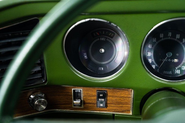 Finished in green with a black vinyl top and a factory hood-mounted tach, this '72 Pontiac Grand Prix makes a bold first impression. The green interior features bucket seats, a center console, and Pontiac's signature wraparound dashboard. Additional features include power front disc brakes, power steering, air conditioning, and Pontiac Rally wheels wrapped in Firestone tires.