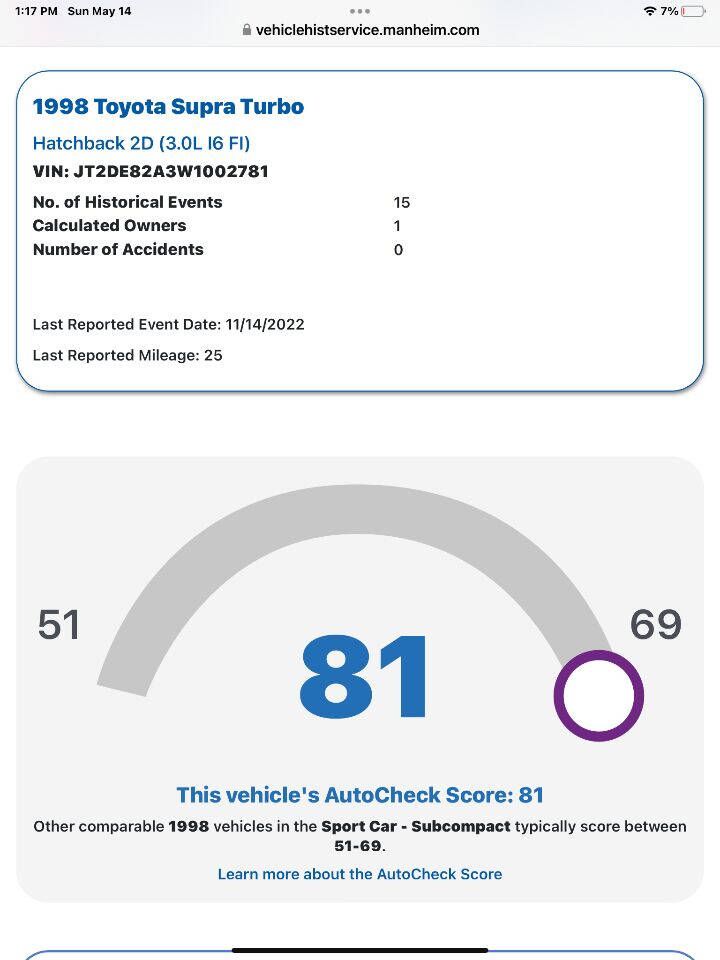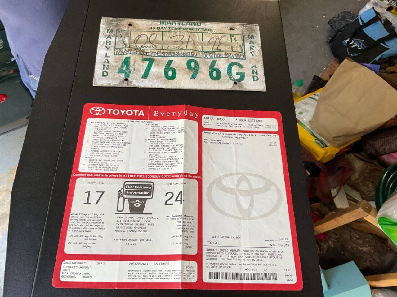 Erics Muscle Cars is proud to offer this dealer ordered one owner 1998 Toyota Supra ! 1 of just 14 in Imperial Jade Mica this unmolested Supra has been fully serviced since new by a Toyota dealer with OEM parts only and always garaged by its only owner. Comes with original window sticker. Radio was changed by owner original radio included.