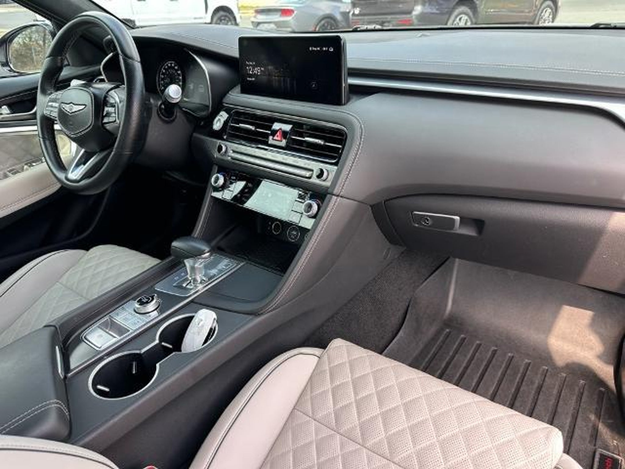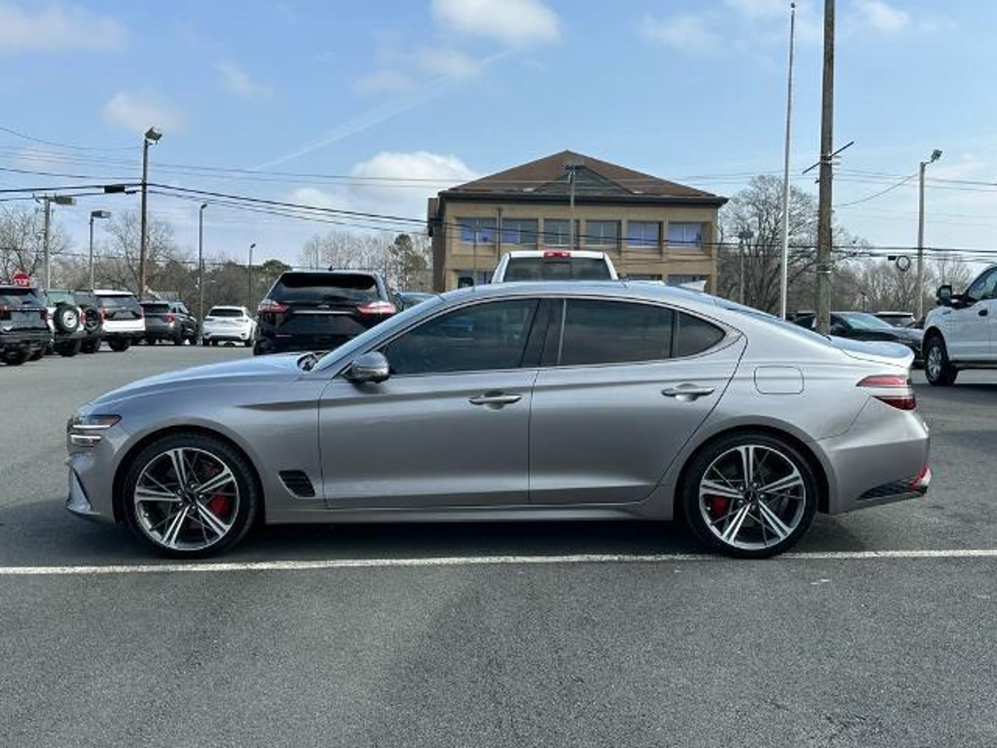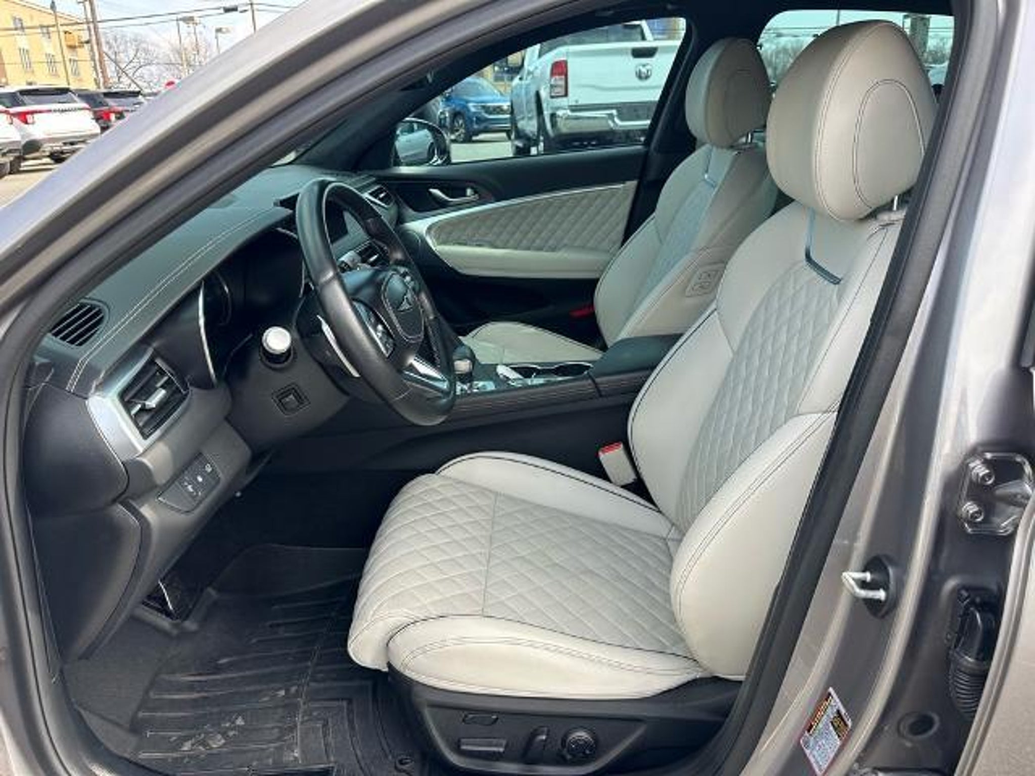 Savile Silver 2024 Genesis G70 3.3T Sport Advanced RWD CARFAX One-Owner. 15 Speakers, 4-Wheel Disc Brakes, ABS brakes, Air Conditioning, Alloy wheels, AM/FM radio: SiriusXM, Android Auto & Apple CarPlay, Anti-whiplash front head restraints, Auto High-beam Headlights, Auto-dimming door mirrors, Auto-dimming Rear-View mirror, Automatic temperature control, Brake assist, Bumpers: body-color, Delay-off headlights, Driver door bin, Driver vanity mirror, Dual front impact airbags, Dual front side impact airbags, Electronic Stability Control, Emergency communication system: Genesis Connected Services, Exterior Parking Camera Rear, Four wheel independent suspension, Front anti-roll bar, Front Bucket Seats, Front Center Armrest, Front dual zone A/C, Front reading lights, Fully automatic headlights, Garage door transmitter: HomeLink, Heated door mirrors, Heated front seats, Htd & Ventilated Multi-Adjustable Fr Bucket Seats, Illuminated entry, Knee airbag, Leather Seating Surfaces, Low tire pressure warning, Memory seat, Navigation System, Occupant sensing airbag, Outside temperature display, Overhead airbag, Overhead console, Panic alarm, Passenger door bin, Passenger vanity mirror, Power door mirrors, Power driver seat, Power moonroof, Power passenger seat, Power steering, Power windows, Radio: AM/FM/SiriusXM/HD Lexicon Prem Audio System, Rain sensing wipers, Rear anti-roll bar, Rear reading lights, Rear seat center armrest, Rear side impact airbag, Rear window defroster, Remote keyless entry, Security system, Speed control, Speed-sensing steering, Speed-Sensitive Wipers, Split folding rear seat, Steering wheel memory, Steering wheel mounted audio controls, Tachometer, Telescoping steering wheel, Traction control, Trip computer, Turn signal indicator mirrors, Variably intermittent wipers, Ventilated front seats, and Wheels: 19 x 8.0J Fr & 19 x 8.5J Rr Sport Alloy.