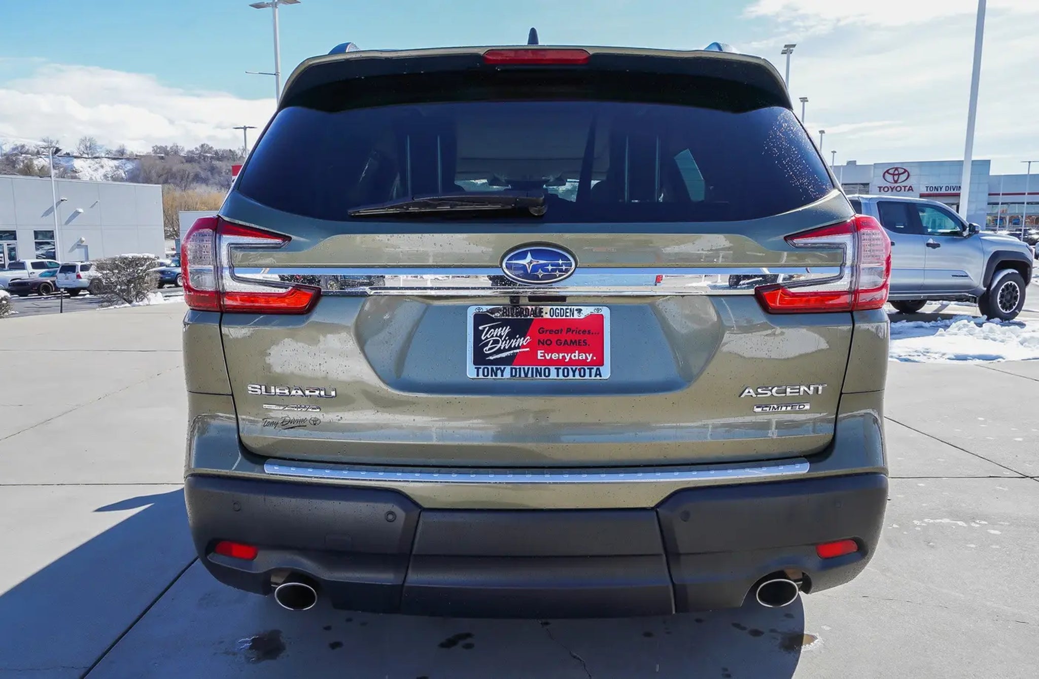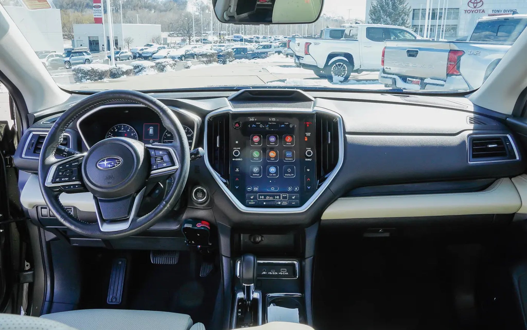 Only 35,552 Miles! Scores 25 Highway MPG and 19 City MPG! This Subaru Ascent delivers a Intercooled Turbo Regular Unleaded H-4 2.4 L/146 engine powering this Variable transmission. WARM IVORY, PERFORATED LEATHER-TRIMMED UPHOLSTERY -inc: silver or ivory stitching, TECHNOLOGY PACKAGE -inc: Retractable Cargo Area Cover, Satin Chrome Power-Folding Exterior Power Mirrors, integrated turn signals, Panoramic Power Moonroof w/UV/Drk Tint Dual Glass, front tilt up and external retracting w/auto-open/close, power sunshade and rear fixed glass, Cabin Connect, Enables communication from the front seats throughout the cabin without the need to speak loudly, Once the button on the Center Information Display (CID) is pressed, voices from the driver and front passenger are picked up by the overhead console microphone and outputted through the rear audio speakers, This feature combined w/the cabin view mirror, enables eye contact and provides a conversation to occur w/the rear seat passengers, helping to reduce distractions on the driver, Surround View Monitor System, Images from the 4 vehicle cameras are combined to create a single image that allows the area around the entire vehicle to be observed, Images from the front-vision camera, exterior power mirrors, AUTUMN GREEN METALLIC. This Subaru Ascent Comes Equipped with These Options Window Grid Antenna, Wheels: 20 x 7.5 J Dk Gray Alloy w/Machine Finish -inc: wheel center cap w/Subaru 6 star logo, Voice Activated Dual Zone Front Automatic Air Conditioning, Variable Intermittent Wipers w/Heated Wiper Park, Valet Function, Trunk/Hatch Auto-Latch, Trip Computer, Transmission: Lineartronic CVT -inc: high torque, steering wheel paddle-shift control switches, 8-speed manual shift mode and X-MODE dual-mode system w/Hill Descent Control (HDC), Transmission w/Driver Selectable Mode and Oil Cooler, Trailer Wiring Harness. Stop By Today Come in for a quick visit at Tony Divino Toyota|777 West Riverdale Rd, Riverdale, UT 84405 to claim your Subaru Ascent! * Estimated Monthly Payment will depend on vehicle make and model and will be determined upon actual vehicle inspection. All payments are estimates. Tax, title, registration and documentation fee ($349) are extra.* While every reasonable effort is made to ensure the accuracy of this information, we are not responsible for any errors or omissions contained on these pages. Please verify any information in question with Tony Divino Toyota.