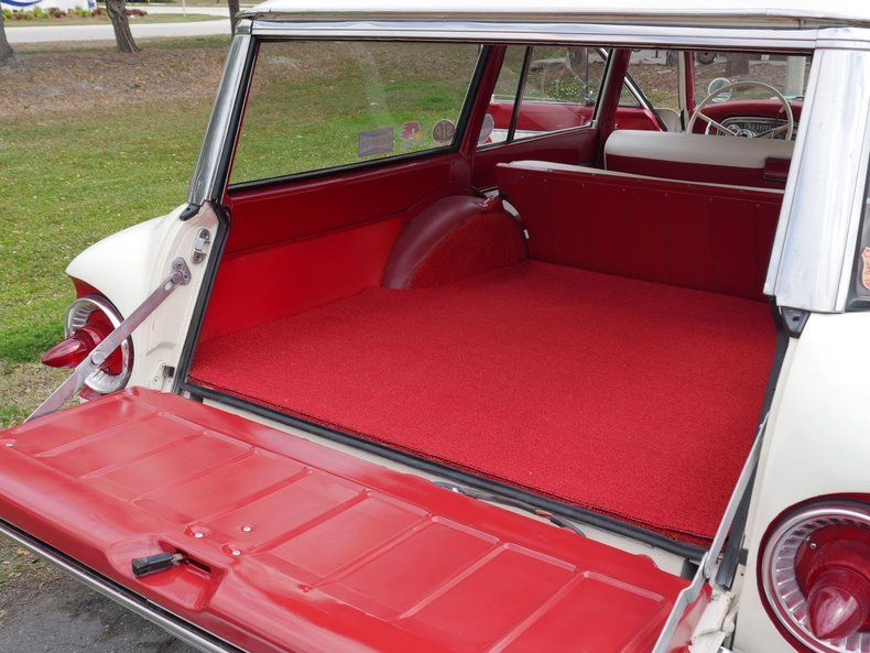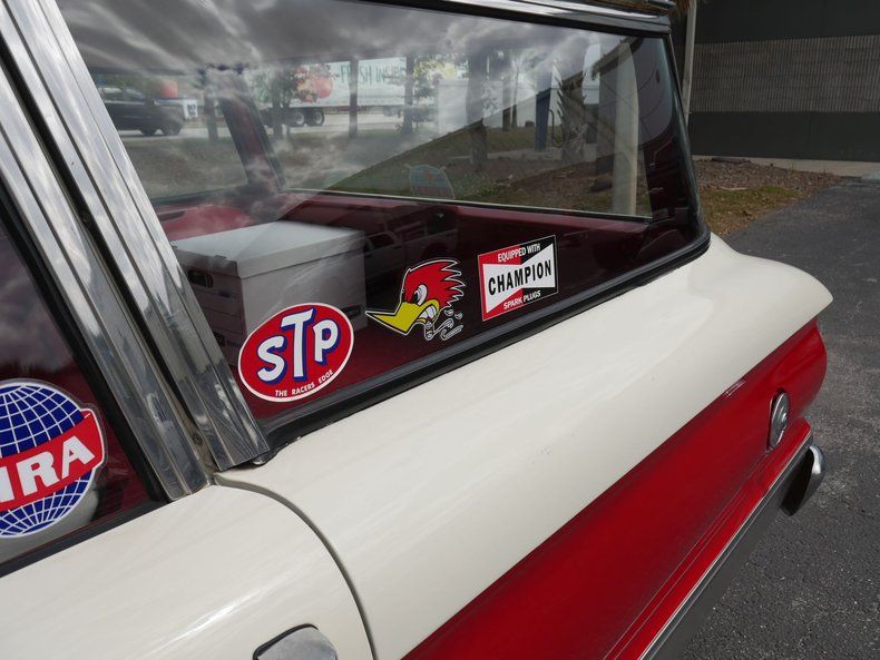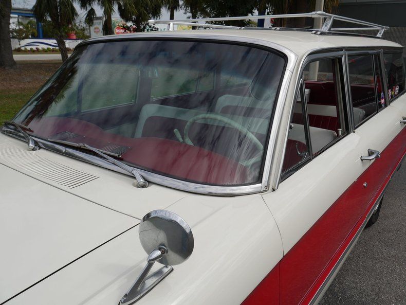 What a great color combo, red and white give this all american wagon a great classic look and feel. Original wheel covers and radial tires with an awesome roof rack and surf board gives this wagon a ready to cruise look. Recent upgrades include new gas tank, new radiator and fan shroud, new alternator, new carburetor, new Pertronix ignition, new wiring harness front to rear, refurbished engine compartment, new tires, new shocks, new alignment, new padded dash, new interior door hardware, new upholstered seats, reconditioned door panels, new Retrosound stereo, new washer reservoir, floor mats, seat belts, lights and lens gaskets.