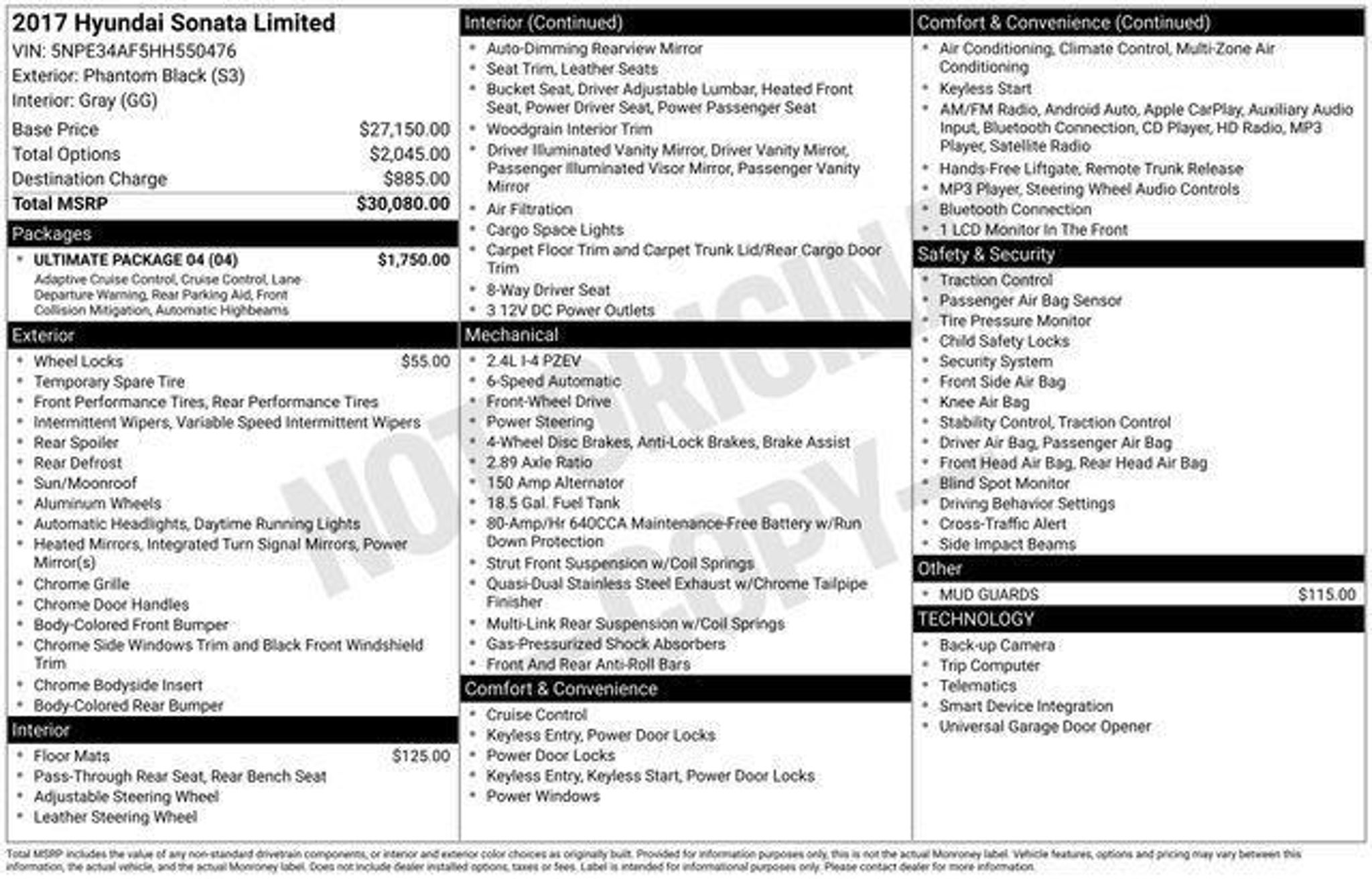 VIN 5NPE34AF5HH550476