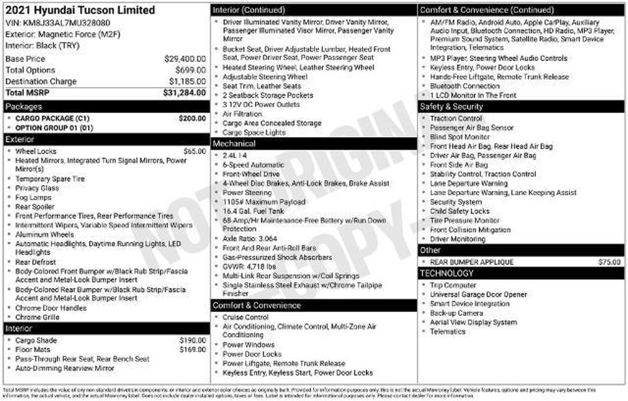 Details > 2021 Hyundai Tucson Limited 4DR SUV For Sale in Lansdale, PA Private Party Sellers Click here to place your ad now! You auta tell them you saw the ad in AutaBuy when you call or email. 1/38 2/38 3/38 4/38 5/38 6/38 7/38 8/38 9/38 10/38 11/38 12/38 13/38 14/38 15/38 16/38 17/38 18/38 19/38 20/38 21/38 22/38 23/38 24/38 25/38 26/38 27/38 28/38 29/38 30/38 31/38 32/38 33/38 34/38 35/38 36/38 37/38 38/38 View 38 Photos View All Add to My Garage Parked in Your Garage! Bergey's Lincoln Contact Seller: I would like to: Make Offer Check Availability Ask A Question Request More Photos Check Financing Options Send a copy of this message to me Add this listing to my garage Send to Mobile Mileage 119,852 Exterior Color Magnetic Force Interior Color Black Doors 4 Engine 2.4L I4 Transmission 6 Speed Auto Stock # LLU3662 VIN KM8J33AL7MU328080 Estimated Monthly Payment $242 mo Apply Now J.J. Best Banc & Co. 2021 Hyundai Tucson Limited 4DR SUV Description: Magnetic Force 2021 Hyundai Tucson Limited FWD 6-Speed Automatic with Shiftronic 2.4L I4 DGI DOHC 16V 22/28 City/Highway MPG · Mileage: 119,852 · Color: Magnetic Force Price: $13,890. Mileage 119,852 Exterior Color Magnetic Force Interior Color Black Doors 4 Engine 2.4L I4 Transmission 6 Speed Auto Stock # LLU3662 VIN KM8J33AL7MU328080 Estimated Monthly Payment $242 mo Apply Now J.J. Best Banc & Co. Add to My Garage Parked in Your Garage! Message Seller Bergey's Lincoln Contact Seller: I would like to: Make Offer Check Availability Ask A Question Request More Photos Check Financing Options Send a copy of this message to me Add this listing to my garage Offered for sale by Bergey's Lincoln LANSDALE, PA Price: $13,890. Offered for sale by Bergey's Lincoln LANSDALE, PA [entire inventory] Ask Auta Intelligence Where is this located? What transmission options did these offer? How many passengers can this seat comfortably? What safety features does this model offer? What does this VIN number tell me? What kind of mileage do these get? What colors did these come in? Can you show me more suvs for a similar price? What engine options did these come with? What factory options were available on this model? How many Tucsons were produced in Magnetic Force? What trim levels were available for this model? How far is this from me? Tell me the history on this model When was this model first introduced? How many of these were produced? How easy are parts to find for this model? Do you have a similar car to sell? List It Now! Questions about this car? Ask Auta Intelligence for production numbers, available options, etc. · Subscribe to AutaBuy! · Send a Gift Subscription Notice to a Friend