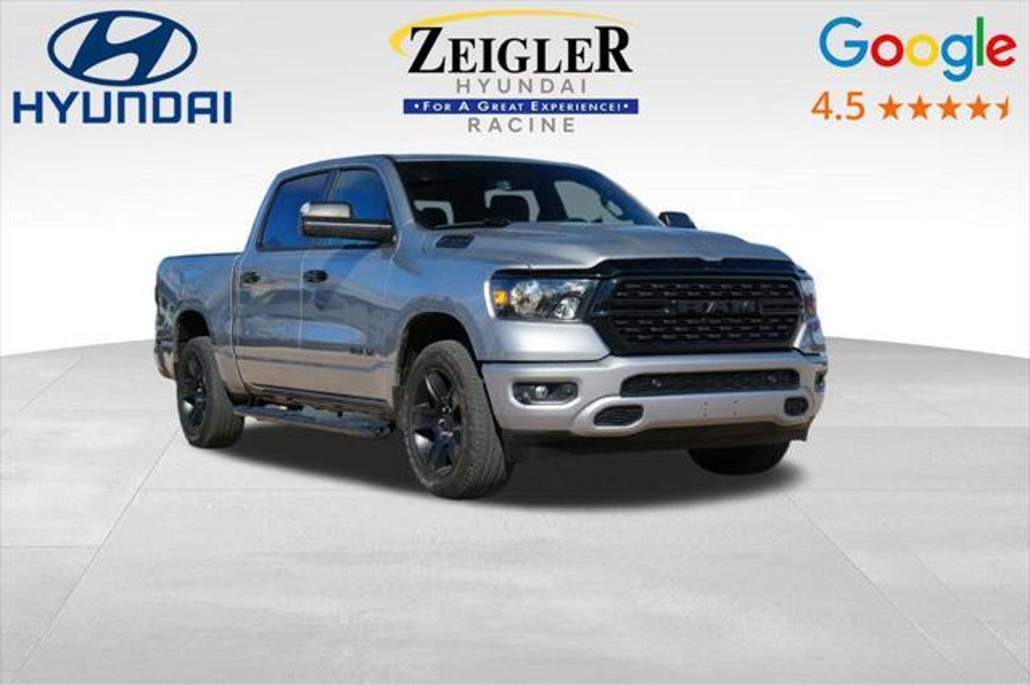 CARFAX One-Owner. Recent Arrival! Odometer is 11159 miles below market average! 2023 Ram 1500 Big Horn/Lone Star 4WD HEMI 5.7L V8 Multi Displacement VVT eTorque 8-Speed Automatic Billet Silver Metallic Clearcoat Zeigler Hyundai Genesis of Racine is excited to offer this 2023 Ram 1500 in Billet Silver Metallic Clearcoat with Black Cloth. This 1500 is well equipped with|along with Big Horn Level B Equipment Group (115V Auxiliary Power Outlet, 12 Touchscreen Display, 2nd Row In Floor Storage Bins, 400W Inverter, 4G LTE Wi-Fi Hot Spot, 9 Amplified Speakers w/Subwoofer, Air Conditioning ATC w/Dual Zone Control, All R1 High Radios, All Radio Equipped Vehicles, Apple CarPlay, Auto-Dimming Exterior Driver Mirror, Auto-Dimming Rear-View Mirror, Black Exterior Mirrors, Black Premium Power Mirrors, Class IV Receiver Hitch, Cluster 7.0 TFT Color Display, Connected Travel & Traffic Services, Connectivity - US/Canada, Convex Wide-Angle Exterior Mirror Insert, Disassociated Touchscreen Display, Exterior Mirrors Courtesy Lamps, Exterior Mirrors w/Heating Element, Exterior Mirrors w/Supplemental Signals, For Details, Visit DriveUconnect.com, For More Info, Call|Front Fog Lamps, Global Telematics Box Module (TBM), Glove Box Lamp, Google Android Auto, GPS Antenna Input, GPS Navigation, HD Radio, Heated Front Seats, Heated Steering Wheel, Integrated Center Stack Radio, Integrated Voice Command w/Bluetooth, LED Footwell Lighting, Media Hub w/2 Charge Only USBs, ParkSense Front/Rear Park Assist w/Stop, Power 2-Way Driver Lumbar Adjust, Power 8-Way Driver Seat, Power Adjustable Pedals, Power-Folding Mirrors, Radio: Uconnect 5 Nav w/12.0 Display, Rear Dome w/On/Off Switch Lamp, Rear Power Sliding Window, Rear Window Defroster, Remote Start System, Security Alarm, SiriusXM Radio Service, SiriusXM Satellite Radio, SiriusXM w/360L, Sun Visors w/Illuminated Vanity Mirrors, Universal Garage Door Opener, and USB Host Flip), Night Edition (3 Rear Seat Head Restraints, 4 Way Front Headrests, Accent Color Door Handles, Accent Color Premium Power Mirrors, Anti-Spin Differential Rear Axle, Black Exterior Truck Badging, Black Headlamp Bezels, Black Interior Accents, Black Painted Exterior Mirrors Caps, Body Color Front Bumper, Body Color Rear Bumper w/Step Pads, Bucket Seats, Center Console Parts Module, Deluxe Cloth Bucket Seats, Dual Exhaust w/Black Tips, Front Seat Back Map Pockets, Full Length Floor Console, Manual Adjust 4-Way Front Passenger Seat, RAM Grille Badge - Black, Rear 60/40 Folding Seat, Rear Center Armrest, and Wheels: 20 x 9.0 Premium Paint/Polished), Quick Order Package 27Z Big Horn (Big Horn Badge), Trailer Tow Group (Trailer Brake Control, Trailer Light Check, Trailer Reverse Steering Control, Trailer Tire Pressure Monitoring System, and Trailer Tow Mirrors), 3.21 Rear Axle Ratio, 4-Wheel Disc Brakes, 48V Belt Starter Generator, 6 Speakers, ABS brakes, Air Conditioning, Alloy wheels, AM/FM radio, Black Trailer Tow Power Mirrors (DISC), Blind Spot & Cross Path Detection, Brake assist, Bumpers: chrome, Cloth Bench Seat, Compass, Delay-off headlights, Driver door bin, Dual front impact airbags, Dual front side impact airbags, Electronic Stability Control, Emergency communication system: SiriusXM Guardian, Front anti-roll bar, Front Center Armrest w/Storage, Front reading lights, Front wheel independent suspension, Fully automatic headlights, Heated door mirrors, Illuminated entry, Leather steering wheel, LED Taillamps, Low tire pressure warning, Manufacturer's Statement of Origin, MOPAR Front & Rear Rubber Floor Mats, Occupant sensing airbag, Outside temperature display, Overhead airbag, Overhead console, Panic alarm, ParkView Rear Back-Up Camera, Passenger door bin, Passenger vanity mirror, Power door mirrors, Power steering, Power windows, Radio data system, Radio: Uconnect 3 w/5 Display, RAM Grille Badge - Chrome, Rear anti-roll bar, Rear seat center armrest, Rear step bumper, Remote keyless entry, Speed control, Split