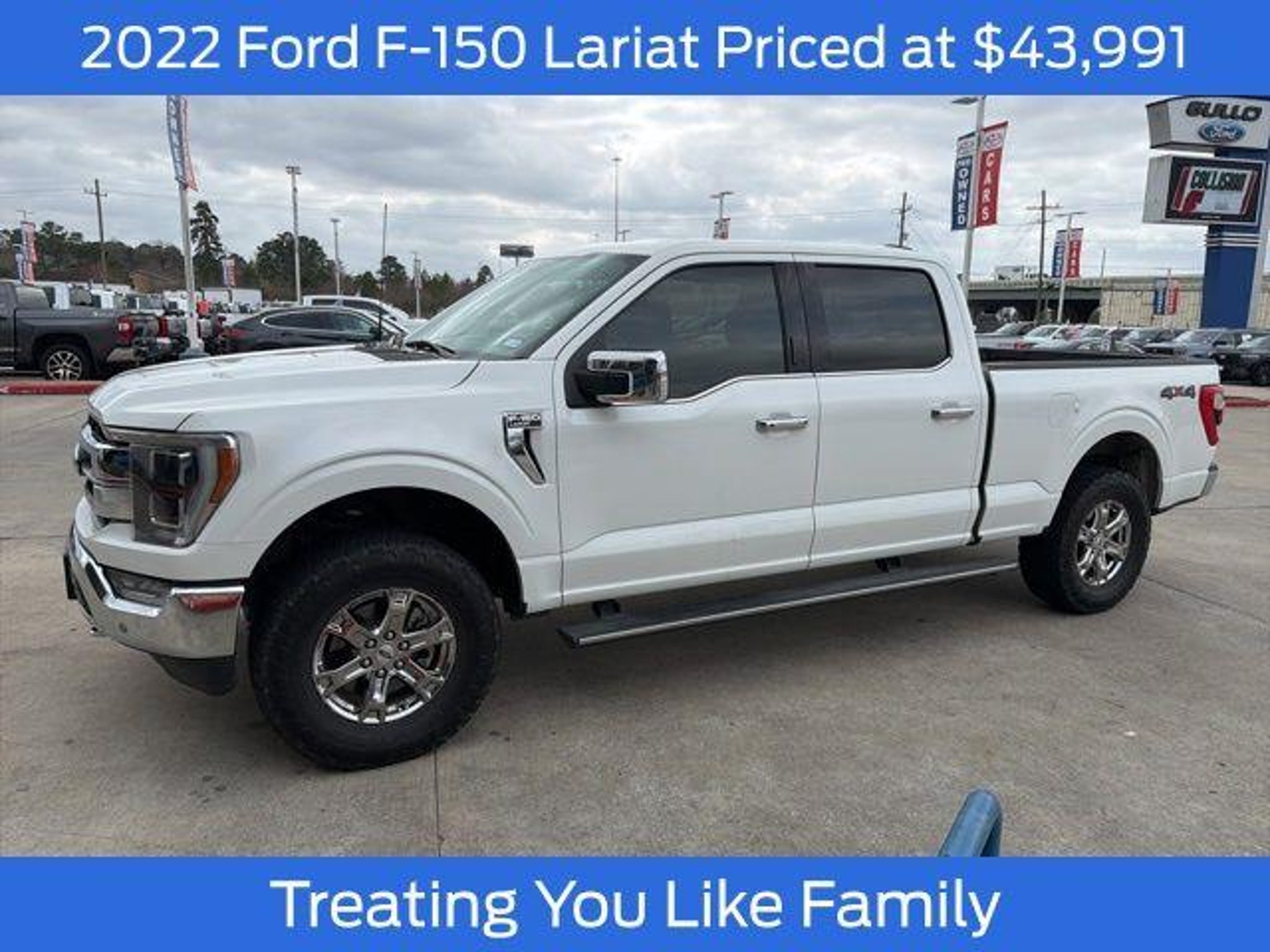 CARFAX One-Owner. Star White Metallic Tri-Coat 2022 Ford F-150 Lariat 4WD 10-Speed Automatic 5.0L V8 Disclaimer: Although every reasonable effort has been made to ensure the accuracy of the informatio, 4WD. Recent Arrival! Although every reasonable effort has been made to ensure the accuracy of the information contained on this site, absolute accuracy cannot be guaranteed. This site, and all information and materials appearing on it, are presented to the user as is without warranty of any kind, either express or implied. All vehicles are subject to prior sale. Price does not include applicable taxes, title, license, processing and/or documentation fees ($225.00). Some vehicles may have added dealer installed equipment that may affect final negotiated price. See dealer for complete details.