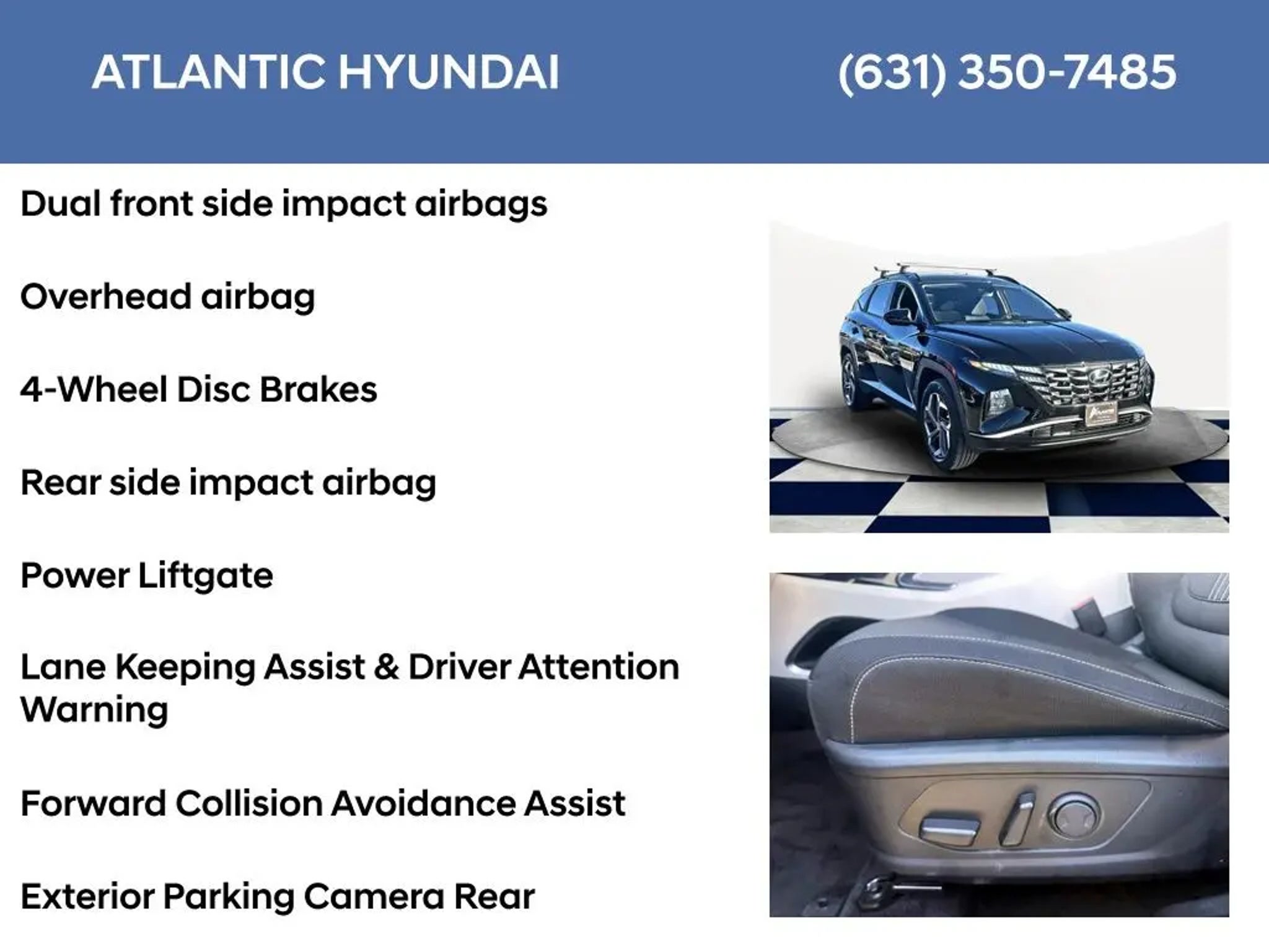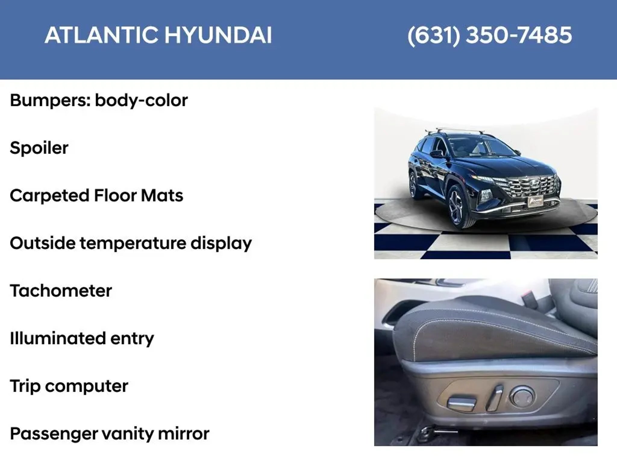 I4. Certified. AWD 6-Speed Automatic I4 Ash Black 2024 Hyundai Tucson Plug-In Hybrid SEL Hyundai Certified Used Vehicles Details: * Roadside Assistance * Includes 10-year/Unlimited Mileage Roadside Assistance with Rental Car and Trip Interruption Reimbursement; Please See Dealers for Specific Vehicle Eligibility Requirements. 10-Year/100,000 Mile Hybrid/EV Battery Warranty. 3-Months SiriusXM Trial Subscription. Complimentary 1 Year (Connected Care & Remote Pkgs). * Limited Warranty: 60 Month/60,000 Mile (whichever comes first) from original in-service date * Powertrain Limited Warranty: 120 Month/100,000 Mile (whichever comes first) from original in-service date * Warranty Deductible: $50 * Vehicle History * 173 Point Inspection Subject to the primary lender's approval. All prices exclude tax, title, dealer fee of $695, tags, license & DMV. Vehicles are sold cosmetically as is. Not all cars are certified where as many do pass the certification process, the customer does have the right to add an optional extended service agreement.