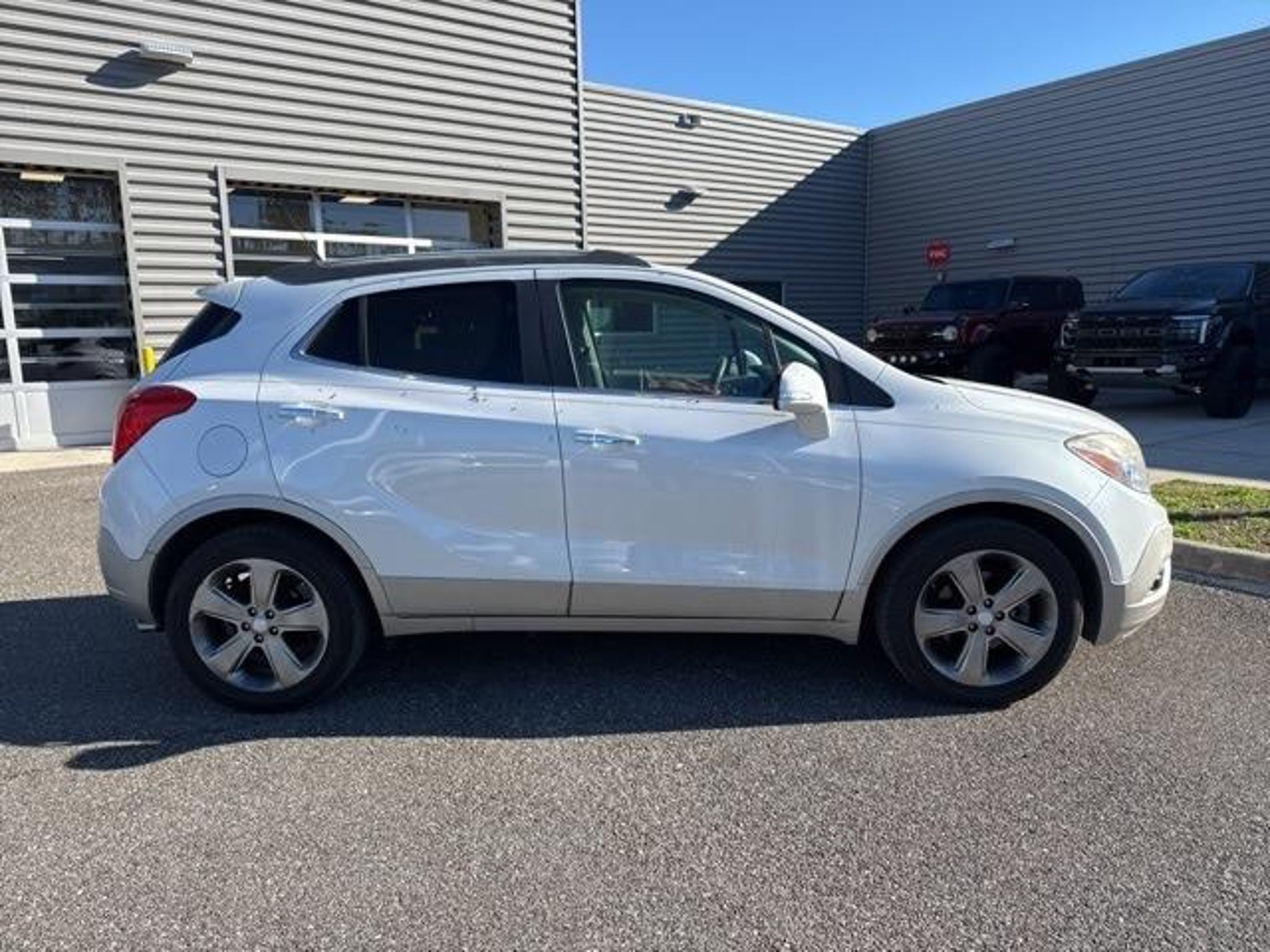 Recent Arrival! White Pearl Tricoat 2014 Buick Encore Premium ECOTEC 1.4L I4 SMPI DOHC Turbocharged VVT FWD 6-Speed Automatic Clean Carfax, 7 Speakers, Air Conditioning, AM/FM radio: SiriusXM, Automatic temperature control, CD player, Driver's Seat Mounted Armrest, Front Bucket Seats, Front dual zone A/C, Heated Driver & Front Passenger Seats, Heated front seats, Leather-Appointed Seat Trim, Memory seat, Panic alarm, Power driver seat, Power passenger seat, Power steering, Power windows, Premium audio system: IntelliLink, Radio data system, Radio: AM/FM Audio System w/MP3 CD Player, Radio: AM/FM Audio System w/Nav/Single CD Player, Rear window defroster, Remote keyless entry, Ride & Handling Suspension, Security system, SiriusXM Satellite Radio, Speed control, Speed-sensing steering, Split folding rear seat, Steering wheel mounted audio controls, Traction control. When you buy from us, you get 2 years or 30,000 miles of maintenance included. Odometer is 57845 miles below market average! 25/33 City/Highway MPG Awards: * JD Power Initial Quality Study * 2014 KBB.com 5-Year Cost to Own Awards * 2014 KBB.com Brand Image Awards Final Price Includes $1,000 Trade Assist and $1,000 Finance Assist. Customer Must Trade In a Vehicle and Finance With a Preferred Dealer Lender In Order To Qualify.