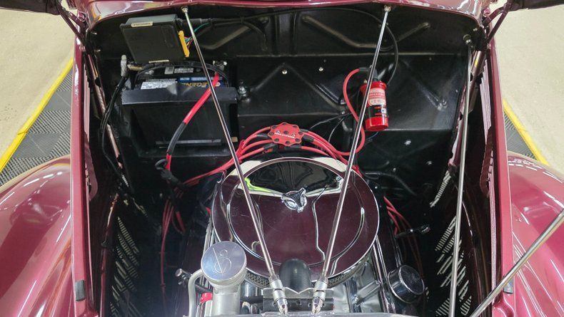 1937 Ford two-door sedan streetrod. This all-steel vehicle features a 350 small block V8 engine paired with a Turbo Hydramatic 350 automatic transmission. The exterior has a medium plum metallic paint with chrome American Racing torque thrust wheels and tasteful powder-coated grille details. Equipped with power steering, Mustang II front suspension, HEI ignition, a Ford 8-inch rear end, new battery, an Edelbrock 4 bbl carb and intake manifold, and an aluminum radiator with electric fan. Original venting style door windows are intact, as well as tilting windshield vent. Inside a very nice gray cloth interior with later model buckets seats including integrated seatbelts. The hood opens with the hood ornament by turning it to the left. The interior is restored with quality cloth upholstery, aftermarket steering wheel and Dolphin gauges, working wipers, and under the dash is a tachometer that also functions. Equipped with cruise control, and a radio that works as well as maintains its vintage stylings. On the road a very comfortable responsive ride, with great power steering and drivability.