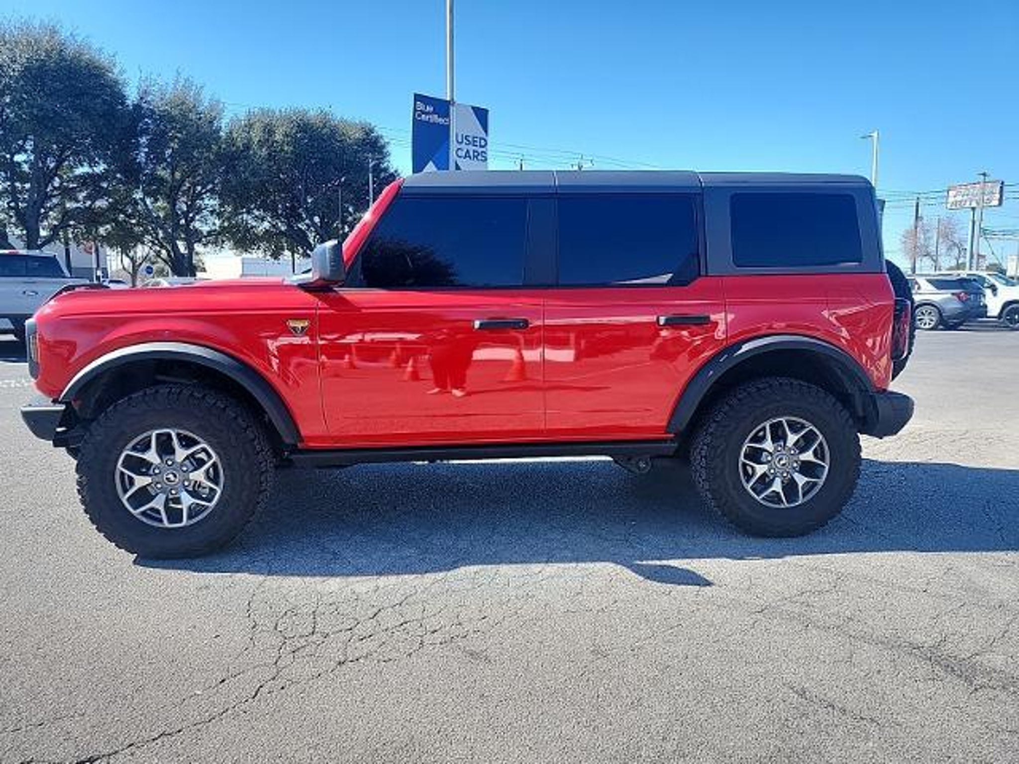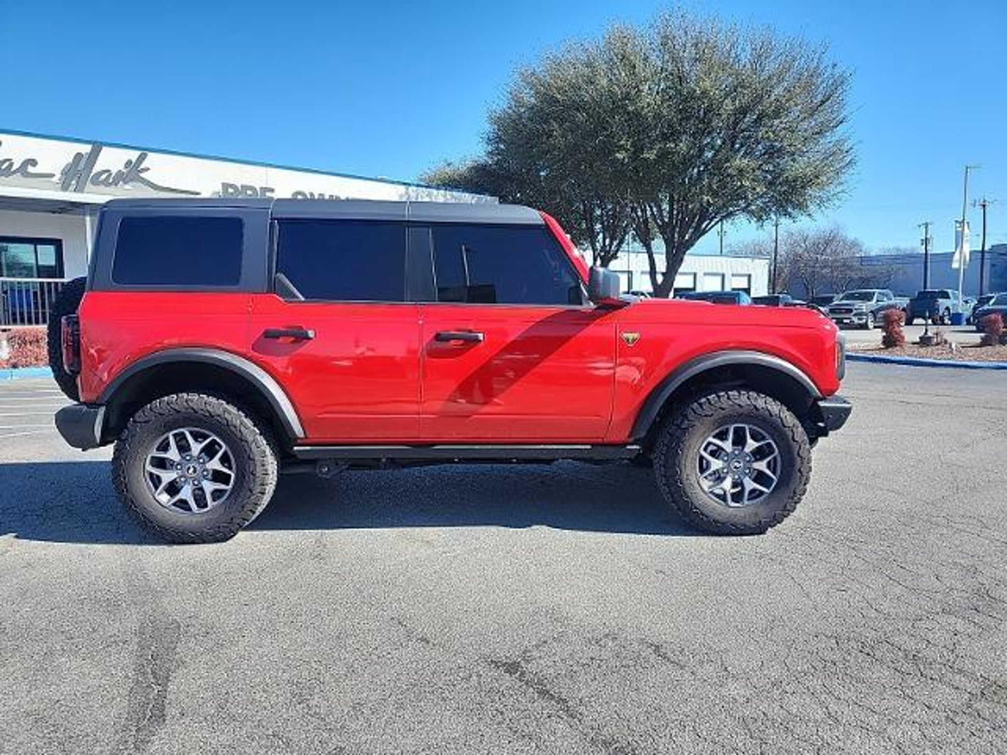 This 2024 Ford Bronco Badlands in Race Red includes the following features: 2.7L EcoBoost V6 10-Speed Automatic 4WD Equipment Group 331A Standard Package, 4-Wheel Disc Brakes, 4.7 Axle Ratio, 7 Speakers, ABS brakes, Air Conditioning, Alloy wheels, AM/FM radio: SiriusXM with 360L, AM/FM Stereo, Auto High-beam Headlights, Brake assist, Carbonized Gray Molded-In-Color Hard Top, Compass, Delay-off headlights, Driver door bin, Driver vanity mirror, Dual front impact airbags, Dual front side impact airbags, Electronic Stability Control, Emergency communication system: 911 Assist, Exterior Parking Camera Rear, Front anti-roll bar, Front Bucket Seats, Front Center Armrest, Front License Plate Bracket, Front reading lights, Front Row Top Panels Storage Bag, Front wheel independent suspension, Fully automatic headlights, Hard Top Sound Deadening Headliner, Heated door mirrors, Illuminated entry, Integrated roll-over protection, Leather Shift Knob, Low tire pressure warning, Marine Grade Vinyl Bucket Seats, Occupant sensing airbag, Outside temperature display, Overhead airbag, Overhead console, Panic alarm, Passenger door bin, Passenger vanity mirror, Power door mirrors, Power steering, Power windows, Radio data system, Rear-Window Defroster & Washer, Remote keyless entry, Security system, SiriusXM Radio w/360L, Speed control, Split folding rear seat, Steering wheel mounted audio controls, SYNC 4, Tachometer, Telescoping steering wheel, Tilt steering wheel, Traction control, Trip computer, Variably intermittent wipers, Voltmeter, and Wheels: 17 Machined Carbonized Aluminum. Race Red 2024 Ford Bronco Badlands 4WD 10-Speed Automatic 2.7L EcoBoost V6 Mac Haik?s Southway Ford has been serving our Friends and Family in South Texas for over twenty years. Many of our employees have been with the company since the start. This means that chances are the staff member that helps you today will be here tomorrow now that is a refreshing change! Located at 7979 IH 35 South in San Antonio, TX. We are the low price leader finishing in the top twenty Ford dealers in the nation for volume of sales in 2008. We are Blue Oval Certified by Ford Motor Company for our commitment to customer satisfaction before and after the sale of their new vehicle. Recent Arrival! Odometer is 1123 miles below market average!