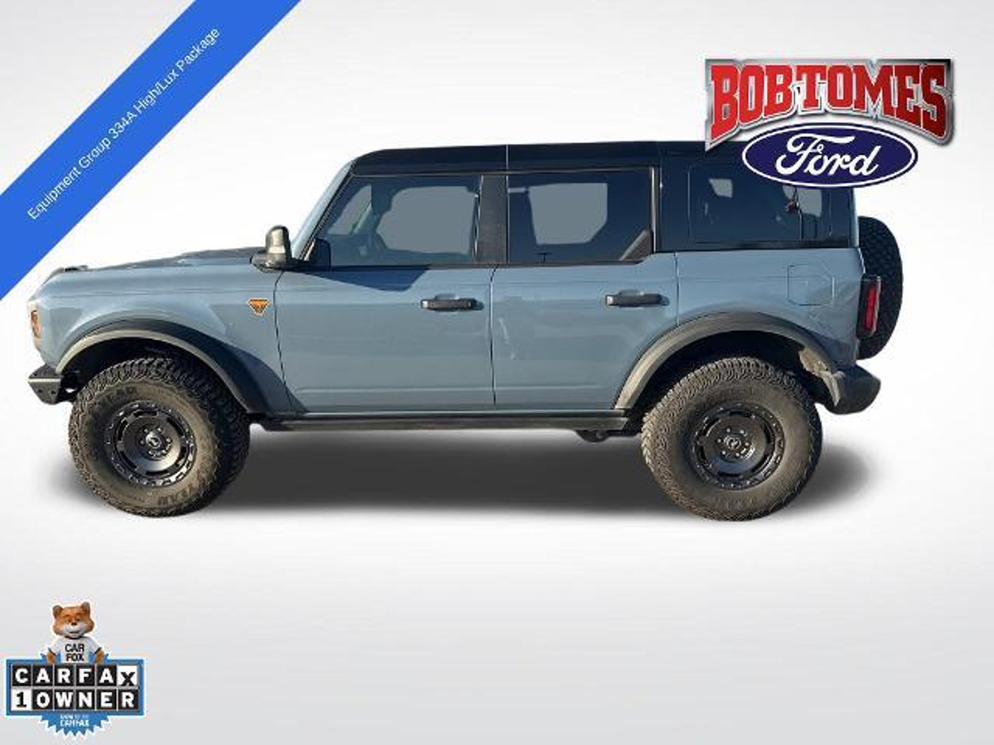 Recent Arrival! CARFAX One-Owner. Clean CARFAX. 2024 Ford Bronco 4D Sport Utility Badlands Azure Gray Metallic 4WD 2.7L EcoBoost V6 10-Speed Automatic 10 Speakers w/Subwoofer, 2-Door Intelligent Access w/Lock/Unlock, 360-Degree Camera, 4.7 Final Drive Ratio, Adaptive Cruise Control, Additional Sound Deadening, Ambient Footwell Lighting, Auto-Dimming Interior Rear-View Mirror, Dr & Pass Illuminated Sliding Visor Vanity Mirrors, Dual Smart Charging USB Ports, Dual-Zone Electronic Automatic Temperature Control, Equipment Group 334A High/Lux Package, Evasive Steering Assist, Front Parking Sensors, Front Row Heated Seats, Heated Steering Wheel, High Clearance Fender Flares, High Clearance Suspension, Information on Demand Panel, Position-Sensitive Bilstein Shock Absorbers, Power Outlet - Back Side of Center Floor Console, Radio: B&O Sound System by Bang & Olufsen, Rear Parking Sensors, Sasquatch Package w/Non Beadlock Capable Wheels, Sideview Mirrors, Universal Garage Door Opener, Wheels: 17 Carbonized Gray-Painted Alloy, Wireless Charging Pad. Equipment Group 334A High/Lux Package (10 Speakers w/Subwoofer, 2-Door Intelligent Access w/Lock/Unlock, 360-Degree Camera, Adaptive Cruise Control, Additional Sound Deadening, Ambient Footwell Lighting, Auto-Dimming Interior Rear-View Mirror, Dr & Pass Illuminated Sliding Visor Vanity Mirrors, Dual Smart Charging USB Ports, Dual-Zone Electronic Automatic Temperature Control, Evasive Steering Assist, Front Parking Sensors, Front Row Heated Seats, Heated Steering Wheel, Information on Demand Panel, Power Outlet - Back Side of Center Floor Console, Radio: B&O Sound System by Bang & Olufsen, Rear Parking Sensors, Sideview Mirrors, Universal Garage Door Opener, and Wireless Charging Pad), Sasquatch Package w/Non Beadlock Capable Wheels (4.7 Final Drive Ratio, High Clearance Fender Flares, High Clearance Suspension, Position-Sensitive Bilstein Shock Absorbers, and Wheels: 17 Carbonized Gray-Painted Alloy), 4-Wheel Disc Brakes, 7 Speakers, ABS brakes, Air Conditioning, Alloy wheels, AM/FM radio: SiriusXM with 360L, AM/FM Stereo, Auto High-Beam Headlamps, Auto High-beam Headlights, BLIS Blind Spot Information System, Brake assist, Compass, Delay-off headlights, Driver door bin, Driver vanity mirror, Dual fro'nt side impact airbags, Dual front impact airbags, Electronic Stability Control, Emergency communication system: 911 Assist, Exterior Parking Camera Rear, Front anti-roll bar, Front Bucket Seats, Front Center Armrest, Front License Plate Bracket, Front reading lights, Fro