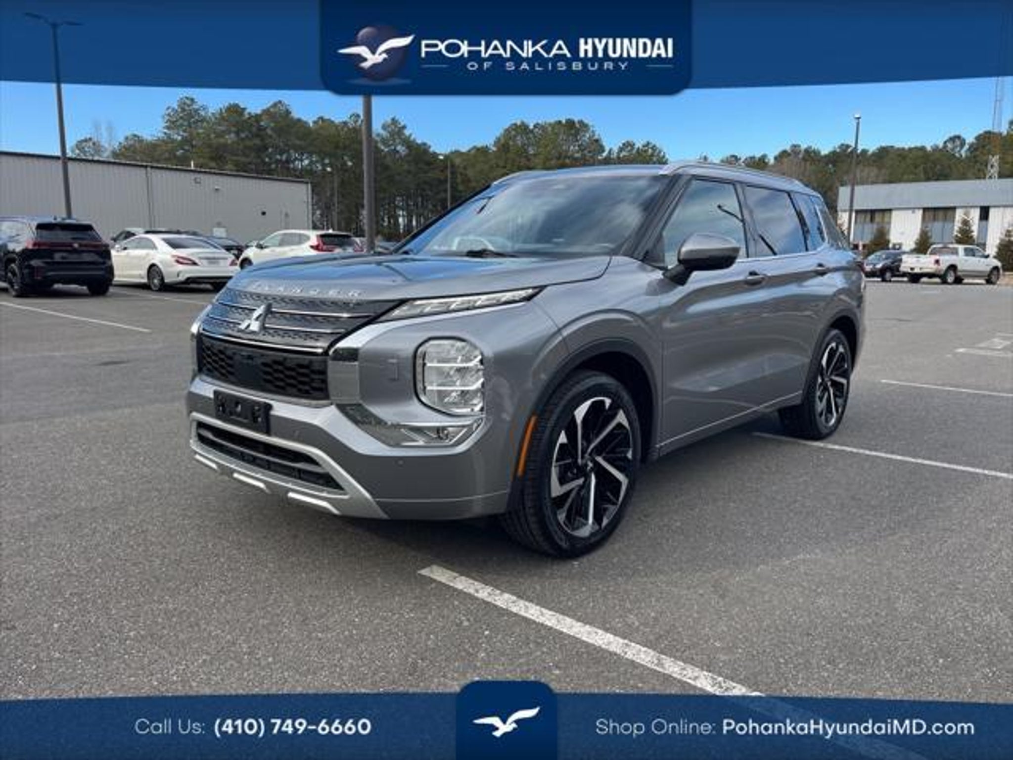 This 2022 Mercury Gray Metallic Mitsubishi Outlander SEL 4WD *** ONE OWNER ** 3 ROW SUV *** is well equipped and includes these features and benefits: Pohanka Certified 6 Months / 6,000 Miles Certified, 4WD, 3rd row seats: split-bench, 4-Wheel Disc Brakes, ABS brakes, Air Conditioning, Alloy wheels, AM/FM radio: SiriusXM, Android Auto & Apple CarPlay, Auto High-beam Headlights, Auto-dimming Rear-View mirror, Automatic temperature control, Brake assist, Bumpers: body-color, Driver door bin, Driver vanity mirror, Dual front impact airbags, Dual front side impact airbags, Electronic Stability Control, Emergency communication system: Mitsubishi Connect w/ 24-month trial, Four wheel independent suspension, Front anti-roll bar, Front Bucket Seats, Front Center Armrest w/Storage, Front dual zone A/C, Front fog lights, Front reading lights, Fully automatic headlights, Headlight cleaning, Heated door mirrors, Heated Front Bucket Seats, Heated front seats, Illuminated entry, Knee airbag, Leather Shift Knob, Leather steering wheel, Low tire pressure warning, Memory seat, Navigation system: Powered by TOMTOM, Occupant sensing airbag, Outside temperature display, Overhead airbag, Overhead console, Panic alarm, Passenger door bin, Passenger vanity mirror, Power door mirrors, Power driver seat, Power Liftgate, Power passenger seat, Power steering, Power windows, Radio data system, Radio: AM/FM 9.0 Navigation w/Smartphone Link, Rain sensing wipers, Rear air conditioning, Rear anti-roll bar, Rear seat center armrest, Rear side impact airbag, Rear window defroster, Rear window wiper, Reclining 3rd row seat, Remote keyless entry, Roof rack: rails only, Security system, Speed control, Speed-Sensitive Wipers, Split folding rear seat, Spoiler, Steering wheel mounted audio controls, Tachometer, Telescoping steering wheel, Tilt steering wheel, Traction control, Trip computer, Turn signal indicator mirrors, Variably intermittent wipers, and Wheels: 20 x 8J Two-Tone Alloy. CARFAX One-Owner. Certified. 2.5L 4-Cylinder DOHC CVT 24/30 City/Highway MPG Certification Program Details: Pohanka Certified 6 Months / 6,000 Miles Call us at or stop by today at Pohanka Hyundai of Salisbury at 2015 North Salisbury Blvd. Prices exclude taxes, tags, and dealer processing fee of $800, not required by law. Remember your tax is always determined by where you live and not by where you buy at Pohanka of Salisbury.