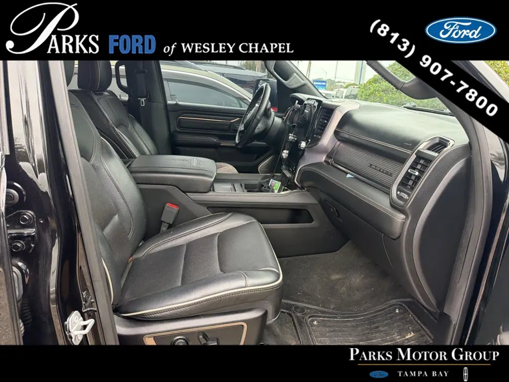 This 2021 Ram 1500 Limited Crew Cab 4x4 delivers flagship-level luxury, proven 5.7L HEMI V8 performance, and advanced suspension technology in one of the most refined full-size pickups on the market. With just 18,898 miles and Blue Certified status, this Limited represents a high-content configuration designed for buyers who want premium comfort without stepping into new-truck pricing. Under the hood is the 5.7L HEMI V8 with eTorque mild hybrid system paired with the 8-speed automatic transmission. The 48-volt belt starter generator enhances low-speed torque response and smooths start/stop transitions while maintaining strong towing capability. The 3.92 rear axle ratio and anti-spin differential maximize performance and traction, while the Class IV receiver hitch supports serious trailering demands. The 4-Corner Air Suspension system is a defining feature, allowing adjustable ride height for improved aerodynamics on the highway, easier entry and exit, or increased ground clearance when needed. This system significantly enhances ride quality compared to conventional coil or leaf spring setups. Finished in Diamond Black Crystal Pearl-Coat over Black premium leather-trimmed bucket seats, this Limited stands apart visually. 20-inch polished wheels with inserts, power running boards, LED lighting front and rear, rain-sensing wipers, power tailgate release, and the multi-function tailgate deliver both style and everyday convenience. The RamBox Cargo Management System adds lockable, illuminated bedside storage rarely found on competing trucks. Inside, the Limited trim reflects true luxury-truck status. Heated and ventilated front seats, heated and ventilated rear seats, heated leather-wrapped steering wheel, wood and leather interior accents, power adjustable pedals with memory, wireless charging pad, 115-volt outlet, and dual-zone automatic climate control create an upscale cabin experience. The Limited Level 1 Equipment Group adds Harman Kardon 19-speaker premium audio, adaptive cruise control with stop and go, lane keep assist, pedestrian emergency braking, surround-view camera system, and parallel/perpendicular park assist. The Uconnect 12-inch touchscreen with navigation, SiriusXM 360L capability, Apple CarPlay, Android Auto, and connected services provides modern connectivity and intuitive control. Safety features include blind-spot and cross-path detection, front and rear park assist with stop, forward collision warning plus, advanced multistage airbags, and electronic stability systems designed to enhance driver confidence. As a Blue Certified vehicle, this Ram has passed a comprehensive multi-point inspection and includes manufacturer-backed limited warranty coverage and roadside assistance, providing added peace of mind. Through the Parks Plus program, this vehicle also includes exterior and interior surface protection, VIN etching anti-theft security, roadside assistance enhancements, ID theft protection services, and additional long-term ownership benefits designed to help safeguard your investment. If you are searching in the Tampa Bay area for a low-mileage luxury 4x4 with HEMI V8 power, air suspension ride quality, RamBox storage, and top-tier interior refinement, this Ram 1500 Limited stands at the top of the segment. High-content Limited models with this mileage continue to attract strong demand. Contact Parks Ford today to schedule your test drive.