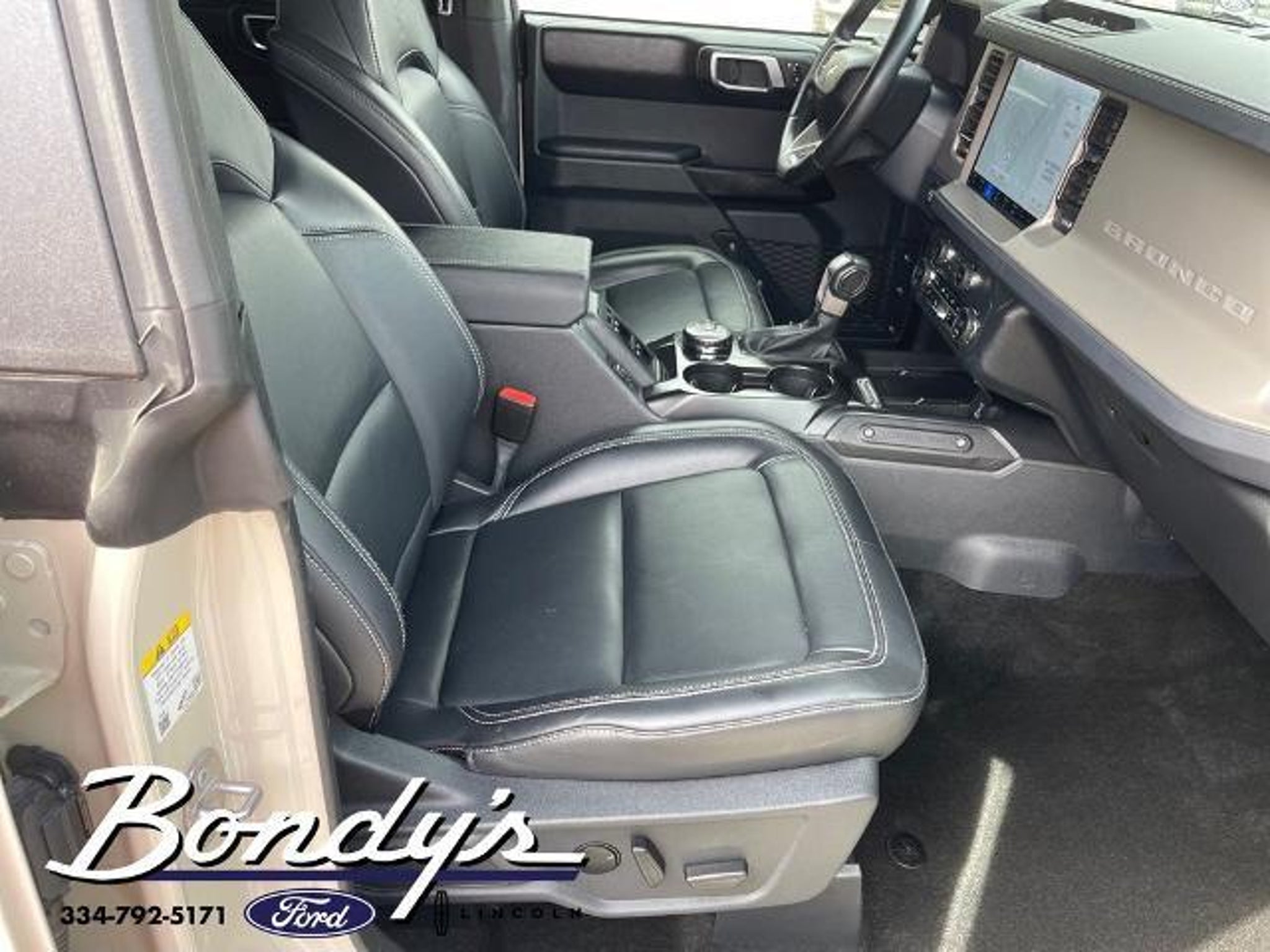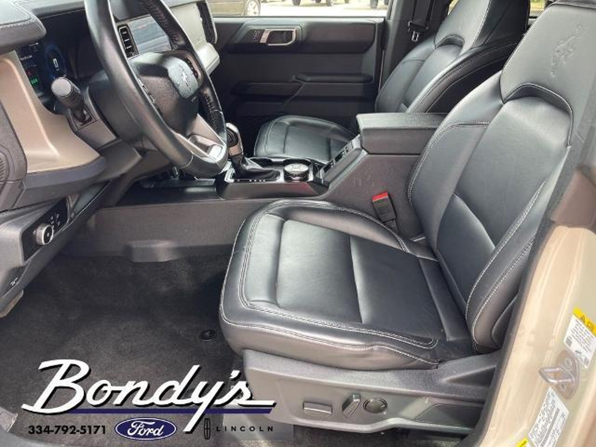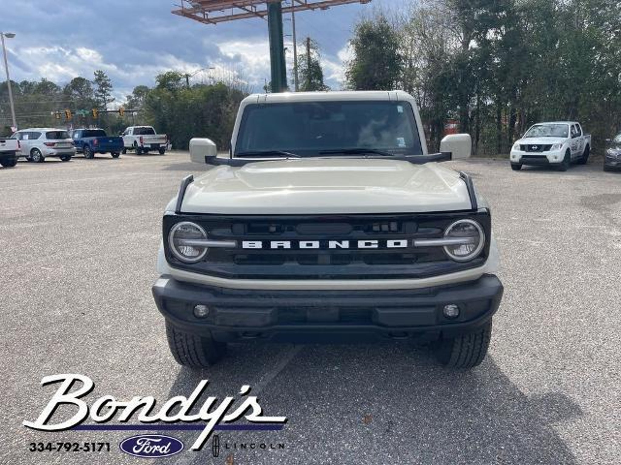 CARFAX One-Owner. Clean CARFAX. 2025 Ford Bronco Outer Banks 18 Bright Machined Aluminum Wheels, 3.73 Axle Ratio, 4-Wheel Disc Brakes, 7 Speakers, ABS brakes, Air Conditioning, Alloy wheels, AM/FM radio: SiriusXM with 360L, AM/FM Stereo, Auto High-beam Headlights, Auto-dimming Rear-View mirror, Automatic temperature control, Brake assist, Compass, Connected Navigation, Delay-off headlights, Driver door bin, Driver vanity mirror, Dual front impact airbags, Dual front side impact airbags, Electronic Stability Control, Emergency communication system: 911 Assist, Equipment Group 312A Mid Package, Exterior Parking Camera Rear, Front anti-roll bar, Front Bucket Seats, Front Center Armrest, Front dual zone A/C, Front fog lights, Front License Plate Bracket, Front reading lights, Front wheel independent suspension, Fully automatic headlights, Hard Top Sound Deadening Headliner, Heated door mirrors, Heated front seats, Heated Leather-Trimmed/Vinyl Bucket Seats, Heated steering wheel, Illuminated entry, Integrated roll-over protection, Internet access capable: FordPass Connect, Leather Shift Knob, Low tire pressure warning, Navigation system: Connected Navigation, Occupant sensing airbag, Outside temperature display, Overhead airbag, Overhead console, Painted Hard Top, Panic alarm, Passenger door bin, Passenger vanity mirror, Power door mirrors, Power driver seat, Power passenger seat, Power steering, Power windows, Radio data system, Rear seat center armrest, Rear-Window Defroster & Washer, Remote keyless entry, Security system, SiriusXM w/360L, Speed control, Split folding rear seat, Steering wheel mounted audio controls, SYNC 4, Tachometer, Telescoping steering wheel, Tilt steering wheel, Traction control, Trip computer, Variably intermittent wipers, Voltmeter. Desert Sand 4WD 2.3L EcoBoost I-4 10-Speed Automatic THIS VEHICLE IS LOCATED AT BONDY'S FORD LINCOLN AT 3615 ROSS CLARK CIRCLE DOTHAN, AL 36303. PLEASE CALL US AT 800-239-5171 TO ASK US ANY QUESTIONS! MON-FRI SALES IS HERE FROM 8:30 TO 7:00 AND SAT 8:30 TO 6:00. WE ARE CLOSED ON SUNDAYS. Call Toll Free 800-239-5171 or 334-792-5171.