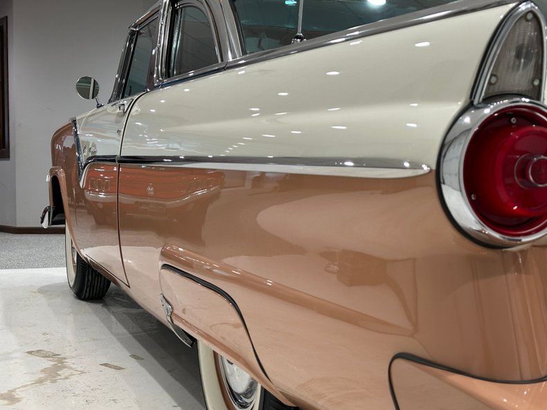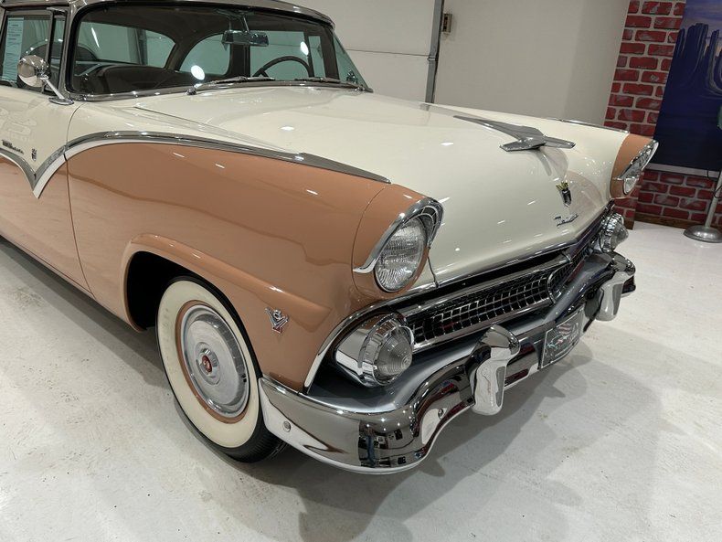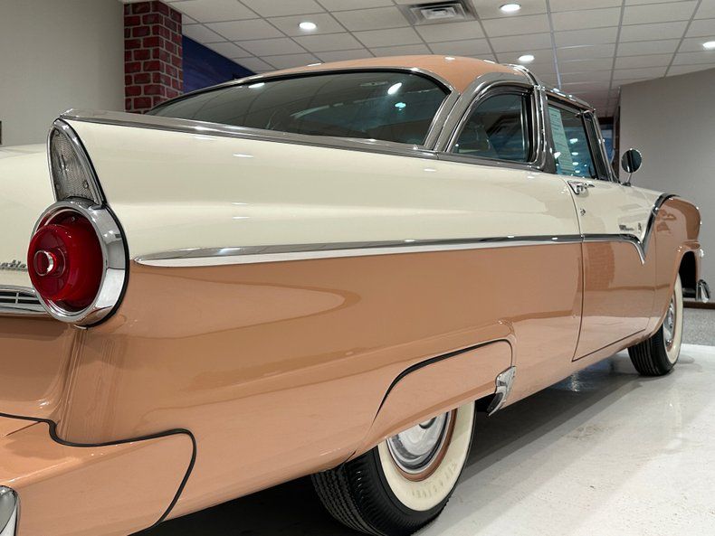 This 1955 Crown Victoria Skyliner is powered by its original 292ci V8 engine mated to a recent 3-speed Ford transmission power steering Continental kit spare tire carrier AM radio Dual Exhaust Fender Skirts Dimming Rearview mirror Dual exterior mirrors Kleenex box holder Stunning Interior Correct Markings and stickers on the highly detailed concourse restoration done a number of years ago but still looks great Nice Rechroming on its original chrome Its Paint is laid out beautifully over a very straight and solid body The color combination of Snowshoe White and Buckskin is uncommon for 1955.Details This 1955 Ford Crown Victoria Runs and drives very nice down the road and is ready to take your next classic car show