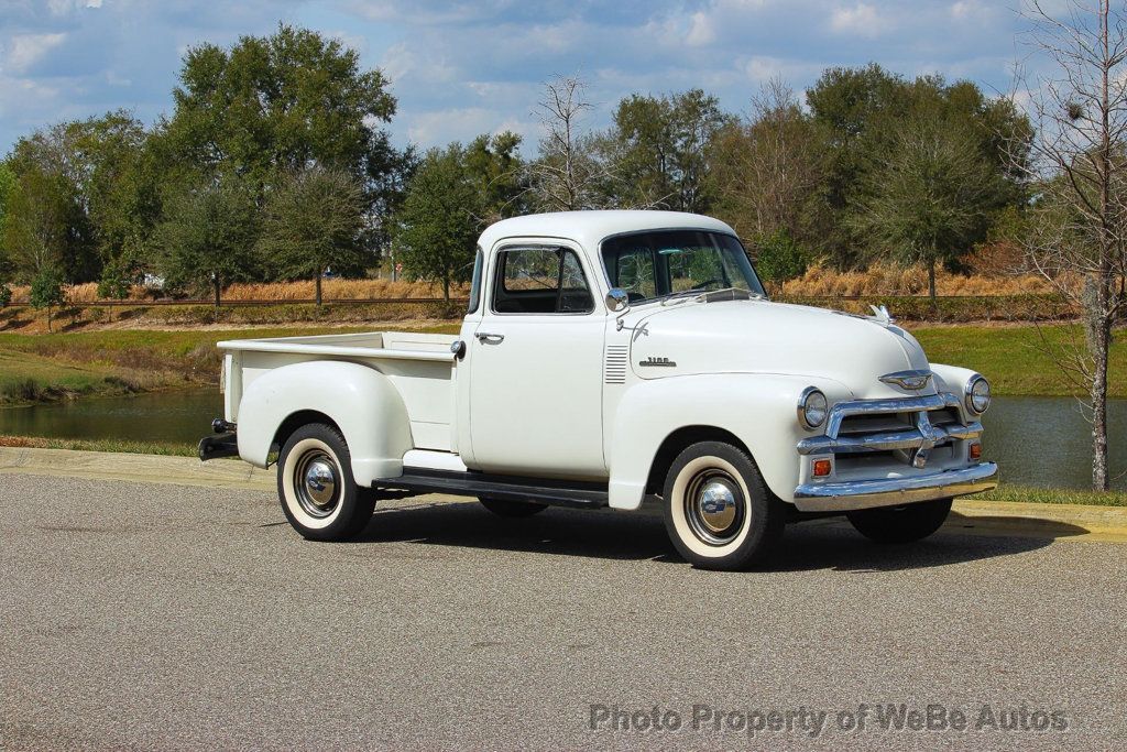 1954 Chevrolet 5-Window Pickup, Florida Truck, Classic Style with Documentation If you appreciate American trucks from a time when steel was thick, craftsmanship mattered, and design had character, this 1954 Chevrolet 5-Window Pickup delivers exactly that. This is a true 5-window cab, the most desirable configuration of the Advance-Design series, featuring the additional corner rear windows that dramatically improve visibility and give the truck its unmistakable profile. Collectors know these are the ones to own. Finished in clean white paint, this Florida truck presents beautifully. The body is straight, the stance is right, and it carries itself with the kind of honest charm you simply cannot replicate. It sits proudly on wide white wall tires, giving it that timeless 1950s Americana look that turns heads at shows and cruise-ins alike. Exterior Highlights: Rare and desirable 5-Window cab Clean white paint Classic wide white wall tires Solid Florida truck Excellent vintage presence Under the hood is Chevrolets dependable Inline 6-cylinder engine, known for reliability and smooth operation. Paired with an automatic transmission, this truck offers an easy, enjoyable driving experience compared to many period-correct manual examples. It is also equipped with air conditioning (operation may need verification; blows but temperature may vary), adding comfort for cruising in warmer climates. Interior: Clean and well-kept cab Black bench seat Classic dash and gauges Straightforward, honest presentation The inside is clean and comfortable, maintaining that vintage truck feel while being usable and enjoyable. No over-restoration just a well-presented classic that respects its roots. One of the strongest features of this truck is the documentation. It comes with lots of paperwork and receipts, showing care, maintenance, and investment over the years. That kind of history matters it speaks to ownership pride and long-term stewardship. The 1954 model year represents the final year of the first-generation Advance-Design trucks, making it historically significant. The 5-window version stands above the standard cab models in both desirability and long-term collectability. This is the kind of classic that: Looks great at shows Drives comfortably Turns heads everywhere Continues to appreciate in value If youve been searching for a clean, well-documented, Florida-based 5-window Chevrolet pickup with the right look and the right features, this truck checks the boxes. Serious inquiries only. Classic trucks like this especially documented 5-windows do not stay available for long. While we do our best to provide the highest quality muscle cars with an honest and reliable description and realize the importance of transparency when selling vehicles. That being said, we have not built, modified, changed or personally owned this vehicle. Whether this vehicle is consigned or owned by Past & Present Motor Cars we do not know the vehicles complete history since new. We want to be clear and try to answer any questions our customers might have prior to purchasing. Additionally, we not only welcome but we encourage 3rd party independent inspections. Please inquire prior to purchase to make sure the advertised vehicle has not already been sold. We list our vehicles on multiple websites and a vehicle can sell at any time. If a customer chooses to purchase sight unseen (many of our customers choose this option) the customer accepts the vehicle AS IS and WHERE IS and understands we cannot address concerns after purchase. For this reason, it's important all concerns are addressed prior to purchase. We make every effort to present accurate and reliable information, but use of this information is voluntary, and should only be deemed reliable after an independent review of its accuracy, completeness, and timeliness. It is the sole responsibility of the customer to verify the existence of options, accessories and the vehicle condition before time of sale. Financing is Available with low rates and Vehicle Shipping is available from our Showroom to your Garage. A Classic Car Warranty is Available for Purchase from a 3rd Party. Please speak to our Sales Associate or Company Representative for more information. Our team is working and available anytime by Phone or Text for your convenience at 407-559-7759. Thank you for your interest! WeBe Autos Specializes in Marketing and Advertising Muscle, Classic, Vintage and Specialty Cars. We offer Professional Photography, HD Movies, and Staging that Sells Cars. Let us showcase and sell your specialty car. Please visit our website for more details. Keep in Touch, Michael Runnalls Specialty Car Marketing & Media WeBe Autos Ltd. Long Island, NY 11780 Michael@WeBeAutos.com www.WeBeAutos.com (O)631-339-0399 (C)516-729-2003 Skype: webeautos (F)631-389-2605 - - Factory Premium Sound System - Contact Michael Runnalls at 631-339-0399 or Michael@WeBeAutos.com for more information. -