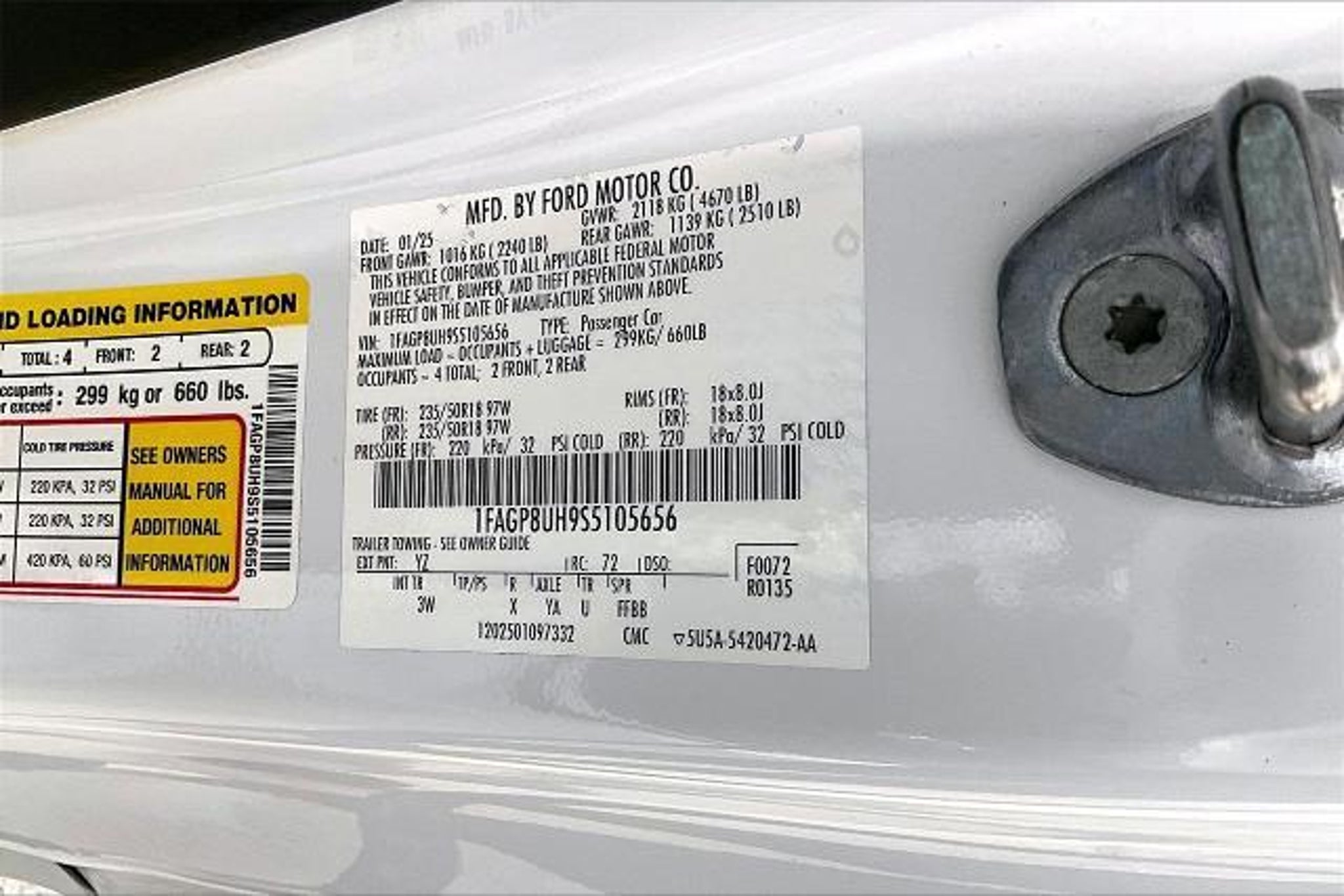 Clean Carfax, Non-Smoker, Local Trade, LEATHER, ONE OWNER, CERTIFIED, Rear View Camera, ALUMINUM WHEELS, Active Anti-Theft System, Equipment Group 200A Standard Package, Locking Center Console, Security Package, Wheel Locking Kit. CARFAX One-Owner. Certified. Ford Gold Certified Details: * Roadside Assistance * Powertrain Limited Warranty: 84 Month/100,000 Mile (whichever comes first) from original in-service date * Warranty Deductible: $100 * Limited Warranty: 12 Month/12,000 Mile (whichever comes first) after new car warranty expires or from certified purchase date * Vehicle History * 172 Point Inspection * and 22,000 FordPass Rewards Points to use toward first two maintenance visits * Transferable Warranty Clean CARFAX. Recent Arrival! 20/28 City/Highway MPG Oxford White 2025 Ford Mustang EcoBoost Premium RWD 10-Speed Automatic EcoBoost 2.3L I4 GTDi DOHC Turbocharged VCT