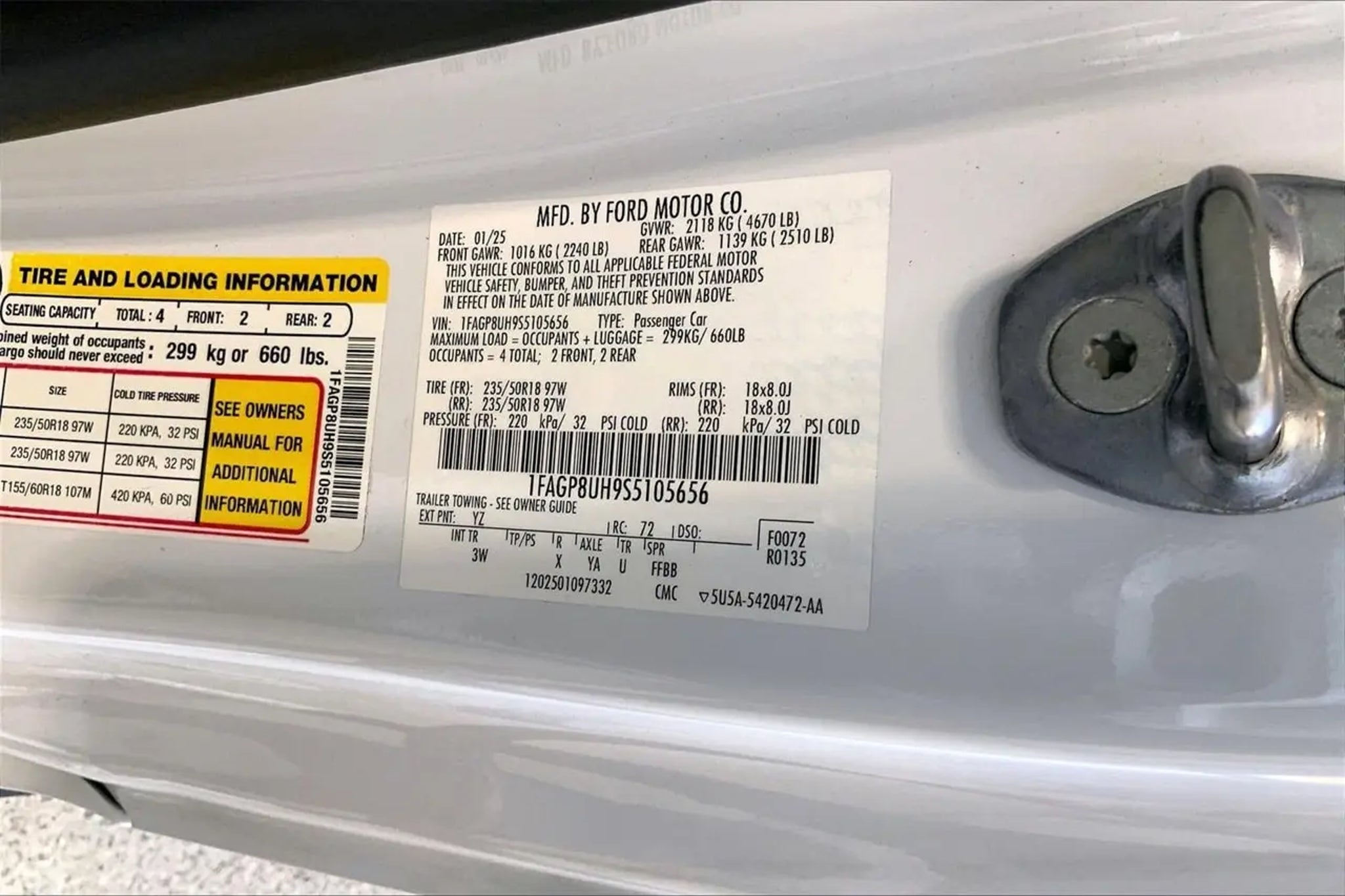 Clean Carfax, Non-Smoker, Local Trade, LEATHER, ONE OWNER, CERTIFIED, Rear View Camera, ALUMINUM WHEELS, Active Anti-Theft System, Equipment Group 200A Standard Package, Locking Center Console, Security Package, Wheel Locking Kit. CARFAX One-Owner. Certified. Ford Gold Certified Details: * Roadside Assistance * Powertrain Limited Warranty: 84 Month/100,000 Mile (whichever comes first) from original in-service date * Warranty Deductible: $100 * Limited Warranty: 12 Month/12,000 Mile (whichever comes first) after new car warranty expires or from certified purchase date * Vehicle History * 172 Point Inspection * and 22,000 FordPass Rewards Points to use toward first two maintenance visits * Transferable Warranty Clean CARFAX. Recent Arrival! 20/28 City/Highway MPG Oxford White 2025 Ford Mustang EcoBoost Premium RWD 10-Speed Automatic EcoBoost 2.3L I4 GTDi DOHC Turbocharged VCT