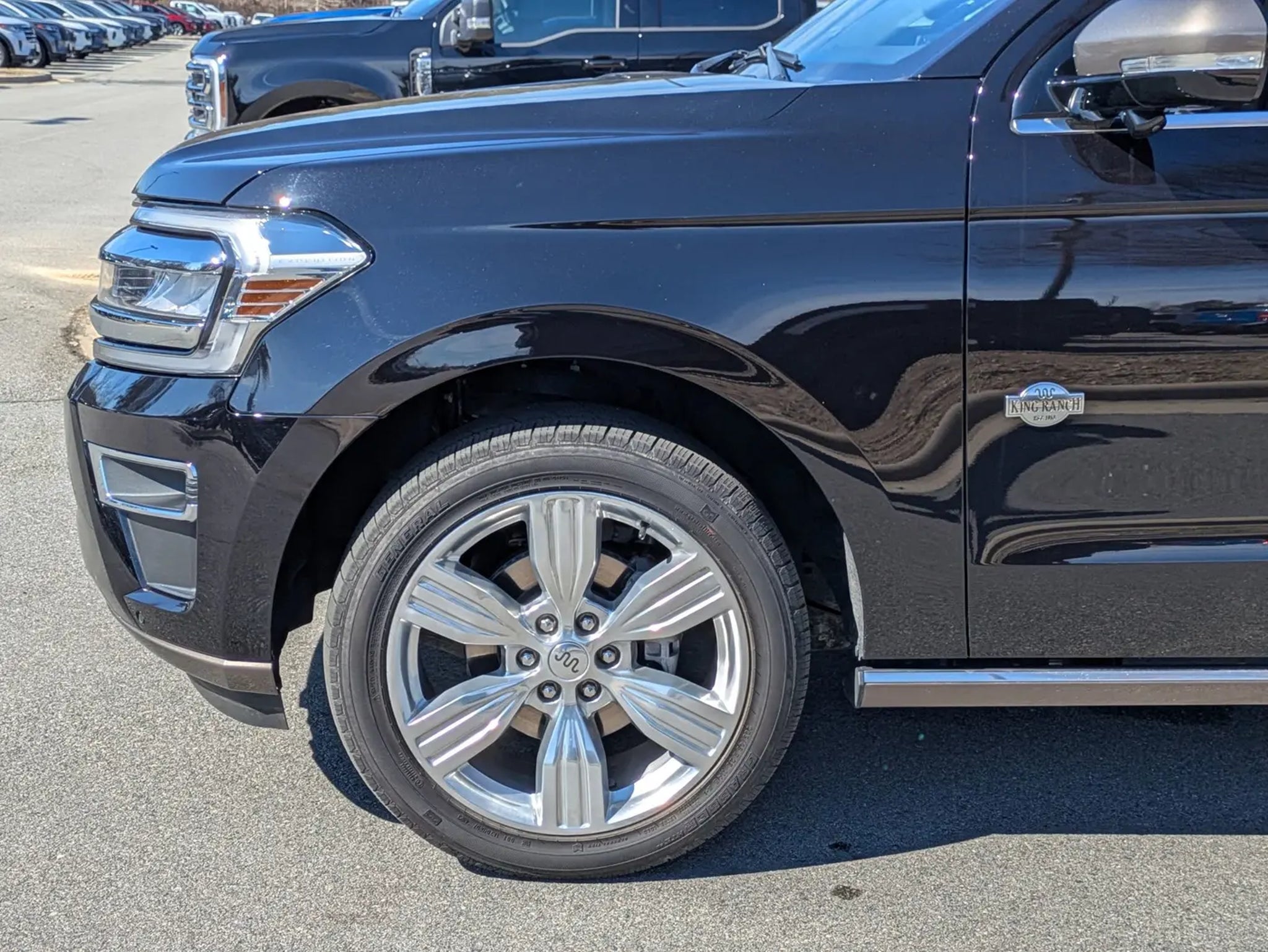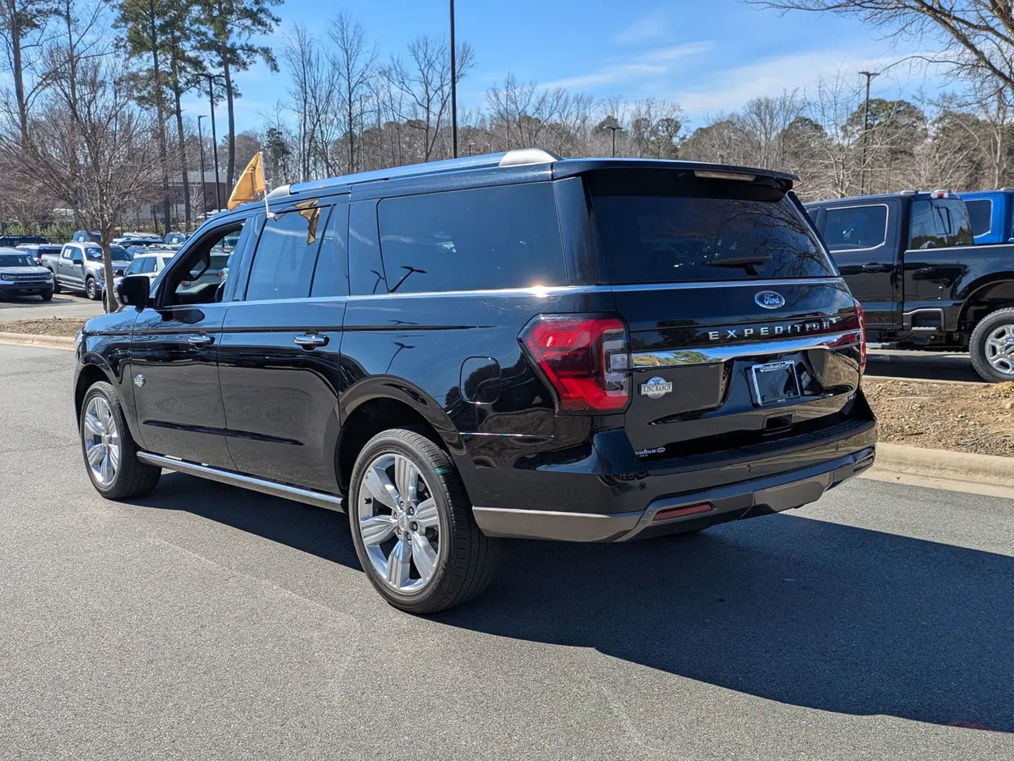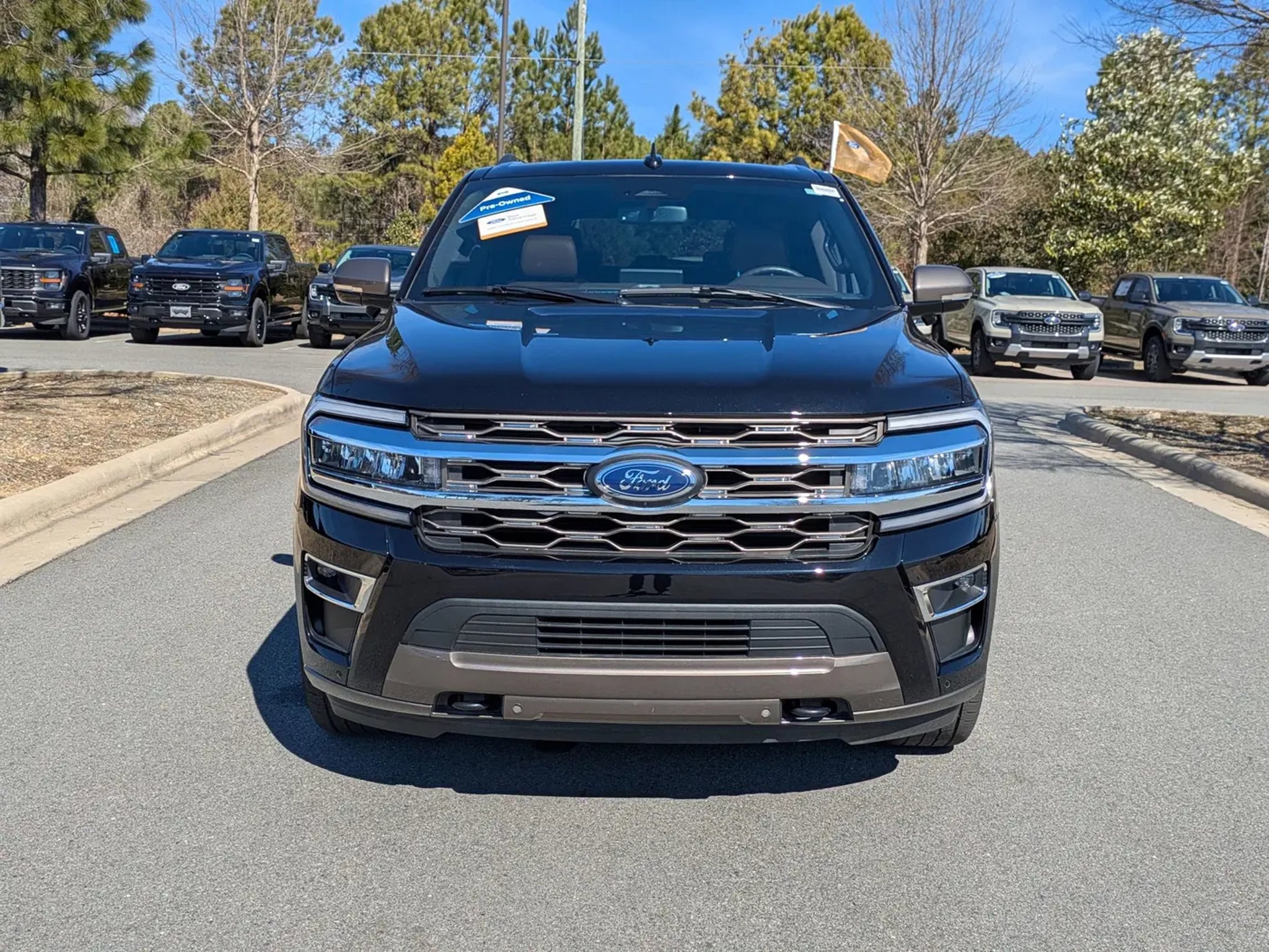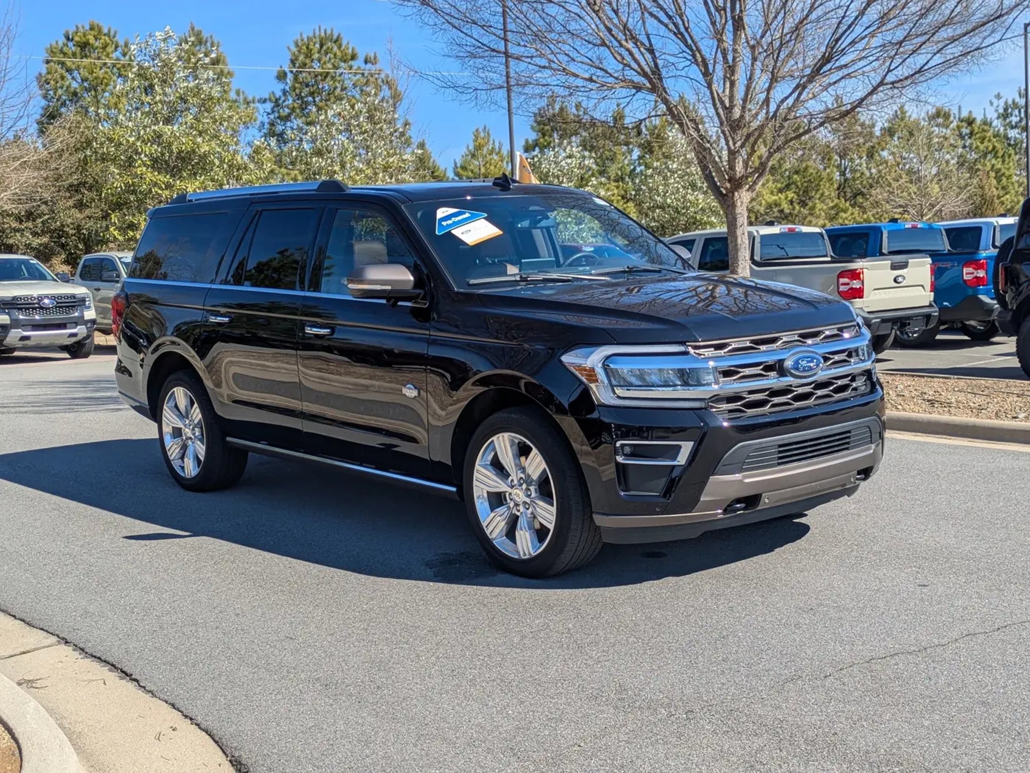 2024 Ford Expedition MAX King Ranch 4x4 GOLD CERTIFIEDAgate Black Metallic Java Del Rio Leather InteriorThis Ford Blue Advantage Gold Certified 2024 Expedition MAX King Ranch is a premier 7-passenger SUV that combines rugged capability with high-end luxury. Powered by a 3.5L EcoBoost V6 engine and a 10-speed automatic transmission, it features an intelligent 4WD system and a Heavy-Duty Trailer Tow Package for superior hauling performance. The exterior is finished in sophisticated Agate Black Metallic, accented by a chrome twin-spar grille, 22-inch 6-spoke polished aluminum wheels, and a Panoramic Vista Roof.The cabin is a distinctive sanctuary featuring Java Del Rio leather trim on the seats, door panels, and center console. Front passengers enjoy heated and ventilated captain's chairs with memory settings, while the second row features heated, power-folding tip-and-slide seats. Technology is anchored by a massive 15.5-inch SYNC 4A touchscreen, a 12.4-inch digital instrument cluster, and an immersive 22-speaker B&O Unleashed Sound System. Additional features include Continuously Controlled Damping (CCD) with Road Preview, power-deployable running boards, and a wireless charging pad.Safety is comprehensive with Ford Co-Pilot360 Assist 2.0, featuring a 360-degree camera, Reverse Brake Assist, and a suite of advanced driver-assist technologies.Ford Blue Advantage Gold Certified benefits include:Comprehensive Limited Warranty: 12-month/12,000-mile (whichever comes first) coverage.Powertrain Limited Warranty: 7-year/100,000-mile (whichever comes first) coverage.Rigorous Inspection: Passed a detailed 172-point multi-point inspection performed by factory-trained technicians.Roadside Assistance: Complimentary 24/7 Roadside Assistance for 7 years or 100,000 miles.FordPass Rewards: 22,000 Points to use toward your first two maintenance visits.Transparency: Includes a free CARFAX Vehicle History Report.Visit Crossroads Ford of Apex at 1501 North Salem Street to experience this exceptionally refined, Gold Certified 2024 Expedition MAX King Ranch in person. You can also call our team at 919-460-5600 to schedule your test drive today.