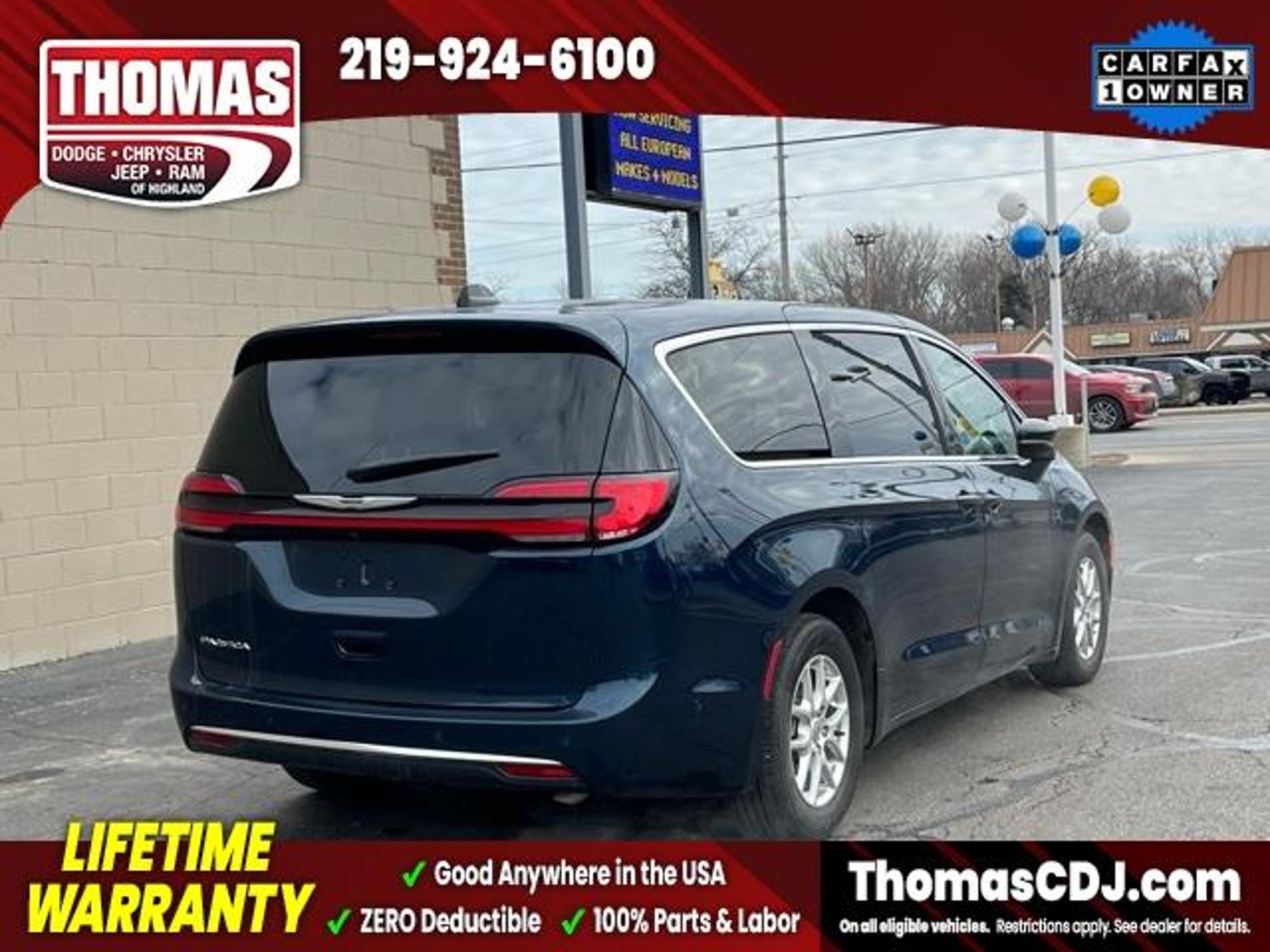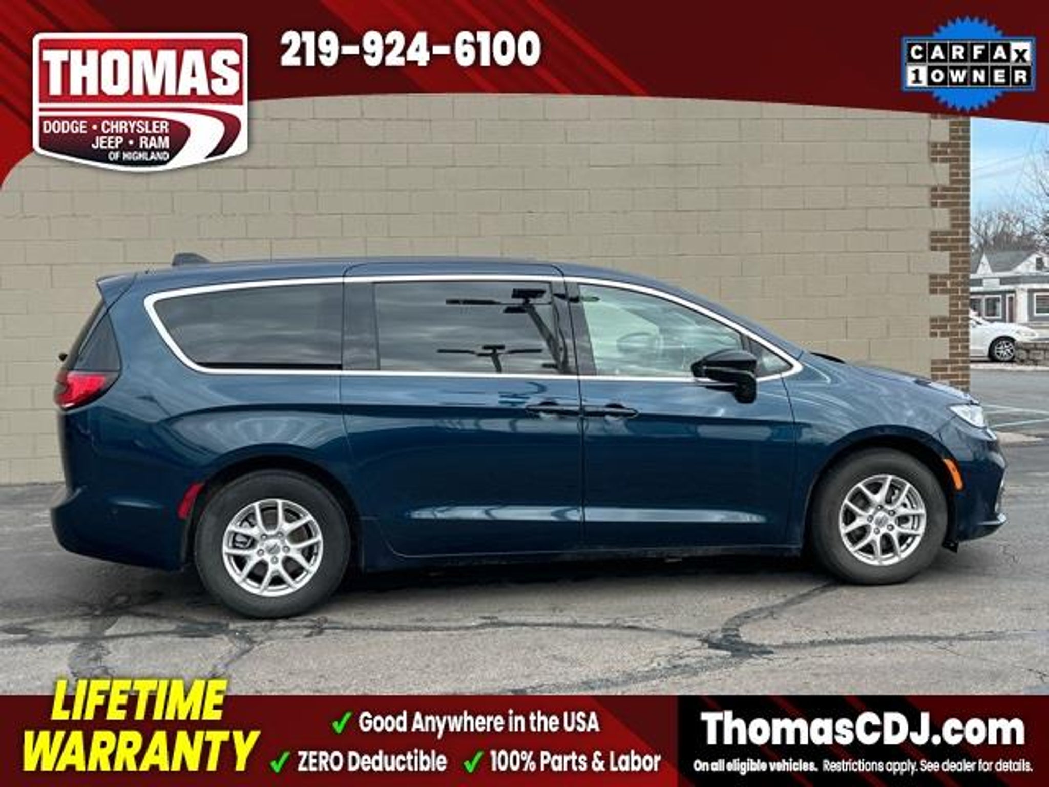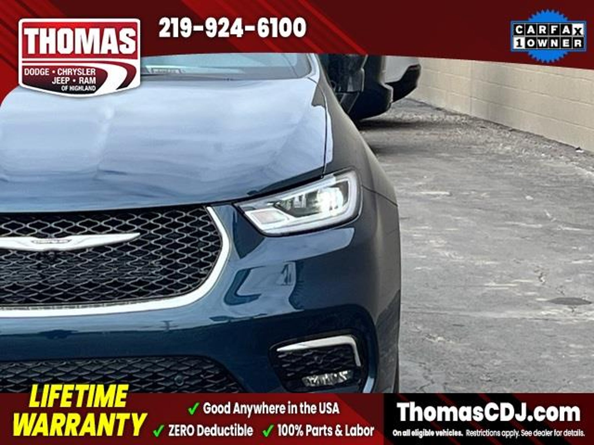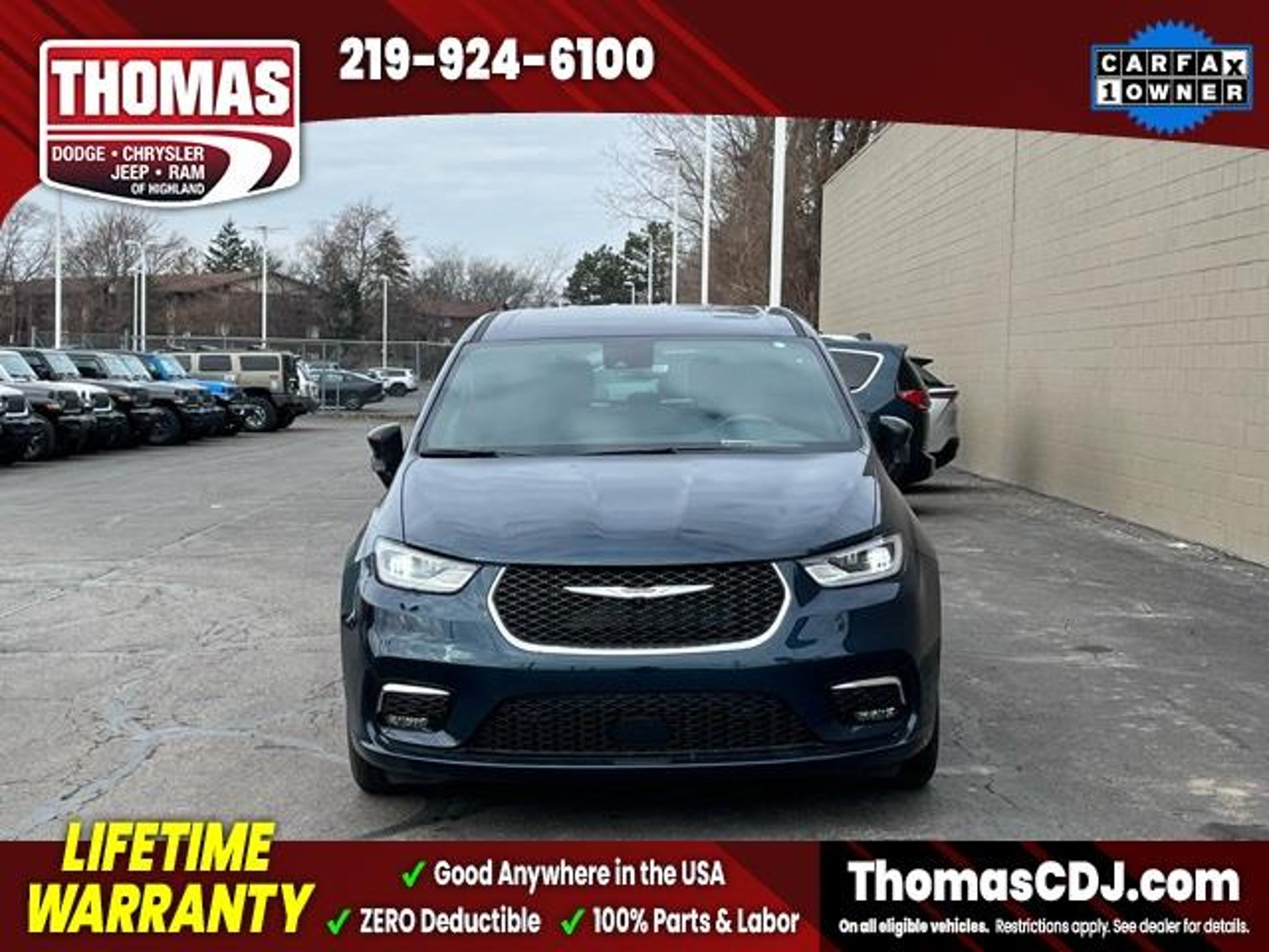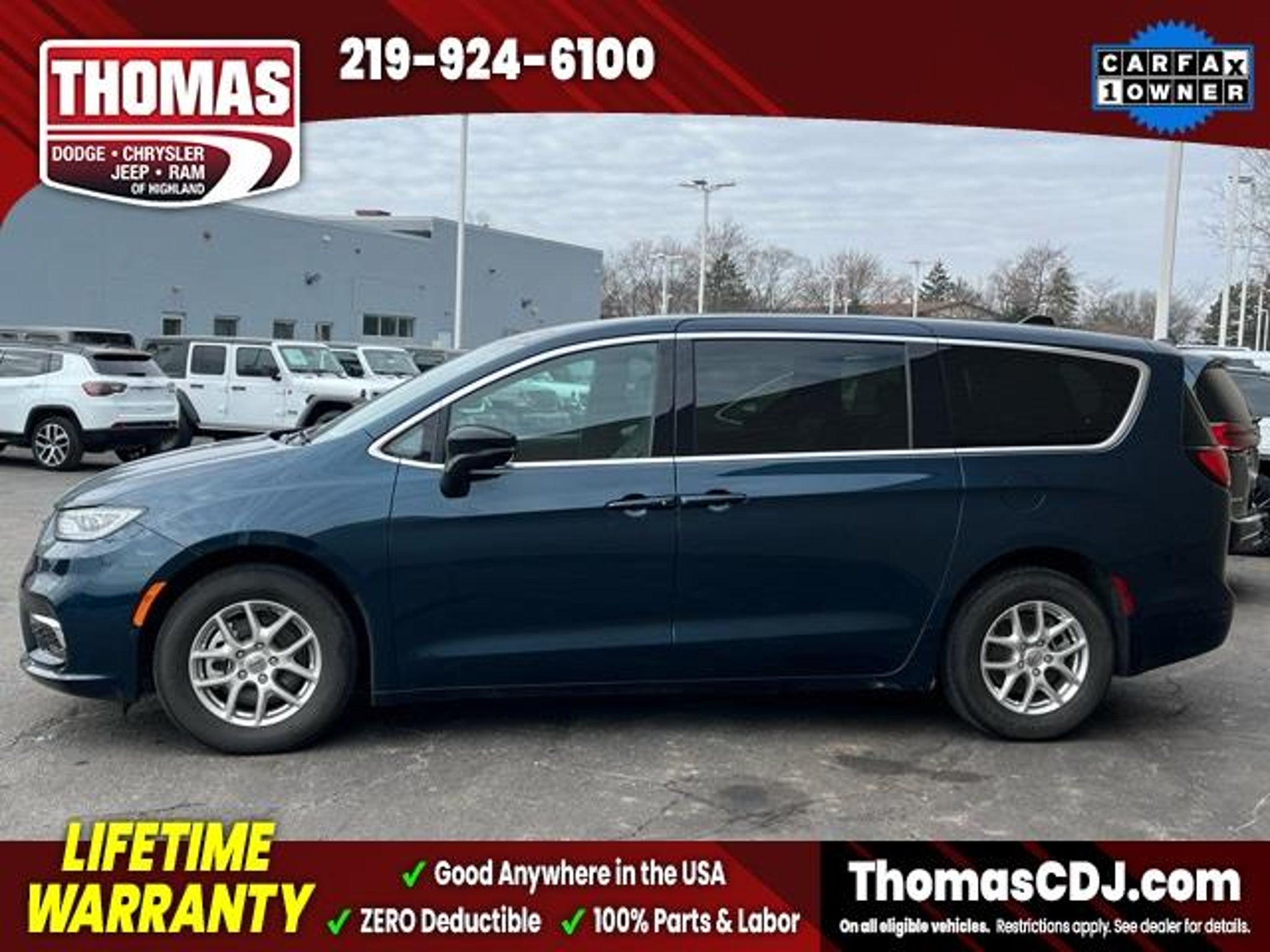 2025 Fathom Blue Pearlcoat Chrysler Pacifica 19/28 City/Highway MPG One Owner, 10.1 Touchscreen Display, 17 x 7.0 Aluminum Wheels, 360 Surround View Camera System, 3rd row seats: split-bench, 4G LTE Wi-Fi Hot Spot, 6 Speakers, Alloy wheels, Apple CarPlay/Android Auto, Auto-dimming Rear-View mirror, Automatic temperature control, Caprice Leatherette Bucket Seats, Front dual zone A/C, Front fog lights, Fully automatic headlights, Google Android Auto, Heated door mirrors, Heated front seats, Heated steering wheel, Memory seat, Parallel and Perpendicular Park Assist with Stop, ParkSense Front/Rear Park Assist with Stop, ParkView Rear Back-Up Camera, Power door mirrors, Power driver seat, Power Liftgate, Radio: Uconnect 5 with 10.1 Display, Reclining 3rd row seat, Safety Sphere, Security system, Speed control, Spoiler, Touring Suspension. LIFETIME WARRANTY FOREVER! On ALL eligible new & used vehicles - $0 Deductible Parts and Labor! - Valid Anywhere in the USA! - Can be Serviced at any Licensed Facility in the USA! - No Expiration Full Powertrain Coverage for Your Entire Ownership! * NO CATCH & NO COST TO YOU! * On All Eligible New and Used Vehicles * Only at ThomasDCJ.com.