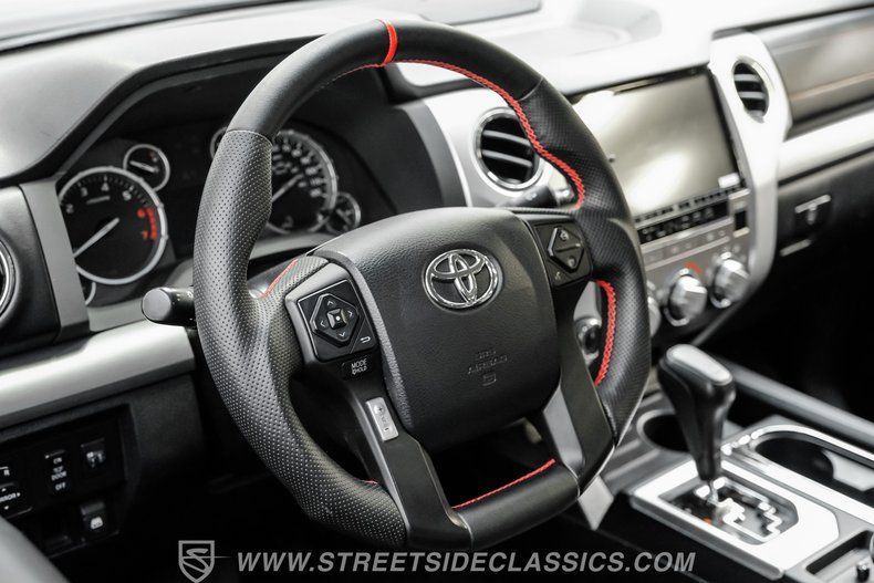 HIGHLIGHTS: Rutledge Wood Designed and Owned 3M Matte Black Wrap 5 Piece Honey D Widebody Kit, Nfab Side Steps, Wrapped UnderCover Bed Cover, Spray In Bedliner LED Headlights, Fog Lights and Tail Lights Supercharged 5.7 Liter DOHC V8 w/ Magnuson Installed Blower and Custom ECU Tune Doug Thorley Long Tubes w/ Custom MagnaFlow Exhaust Six Speed Automatic Limited Slip Differential Tundra Racing Lowering Kit w/ Bilstein Shocks 20in Rotiform Wheels w/ 32in Nitto Tires Custom Leather Wrapped Steering Wheel Power Driver's Seat, Locks, Windows, Mirrors Air Conditioning Navigation w/ Back Up Camera Custom AM/FM/AUX Stereo w/ Android Auto, Apple CarPlay, Bluetooth Truly One of a Kind