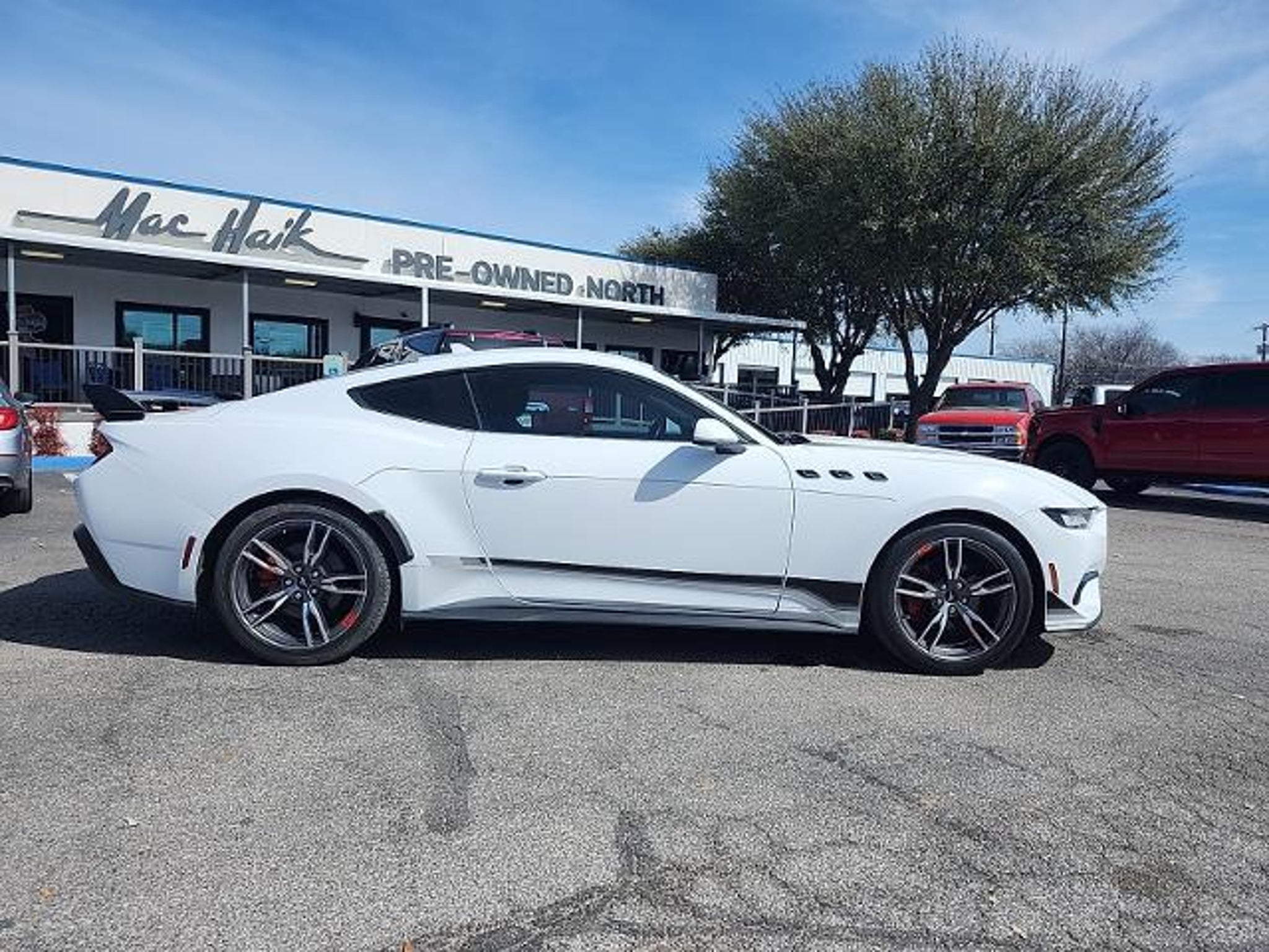 This 2024 Ford Mustang EcoBoost in Oxford White includes the following features: EcoBoost 2.3L I4 GTDi DOHC Turbocharged VCT 10-Speed Automatic RWD Wheel & Stripe Package, 4-Wheel Disc Brakes, ABS brakes, Air Conditioning, Alloy wheels, AM/FM Stereo, Auto High-beam Headlights, Automatic temperature control, Brake assist, Bumpers: body-color, Compass, Delay-off headlights, Driver door bin, Driver vanity mirror, Dual front impact airbags, Dual front side impact airbags, Electronic Stability Control, Emergency communication system: 911 Assist, Exterior Parking Camera Rear, Four wheel independent suspension, Front anti-roll bar, Front Bucket Seats, Front Center Armrest, Front reading lights, Fully automatic headlights, Illuminated entry, Knee airbag, Leather Shift Knob, Low tire pressure warning, Occupant sensing airbag, Outside temperature display, Overhead airbag, Overhead console, Panic alarm, Passenger door bin, Passenger vanity mirror, Power door mirrors, Power steering, Power windows, Radio data system, Rain sensing wipers, Rear anti-roll bar, Rear Parking Sensors, Rear window defroster, Remote keyless entry, Speed control, Speed-sensing steering, Speed-Sensitive Wipers, Split folding rear seat, Sport steering wheel, Steering wheel mounted audio controls, SYNC 4.0 QNX, Tachometer, Telescoping steering wheel, Tilt steering wheel, Traction control, Trip computer, Variably intermittent wipers, Voltmeter, and Wheels: 18 x 8 Machined-Face Aluminum. Oxford White 2024 Ford Mustang EcoBoost RWD 10-Speed Automatic EcoBoost 2.3L I4 GTDi DOHC Turbocharged VCT Mac Haik?s Southway Ford has been serving our Friends and Family in South Texas for over twenty years. Many of our employees have been with the company since the start. This means that chances are the staff member that helps you today will be here tomorrow now that is a refreshing change! Located at 7979 IH 35 South in San Antonio, TX. We are the low price leader finishing in the top twenty Ford dealers in the nation for volume of sales in 2008. We are Blue Oval Certified by Ford Motor Company for our commitment to customer satisfaction before and after the sale of their new vehicle. Recent Arrival! Odometer is 570 miles below market average! 22/33 City/Highway MPG