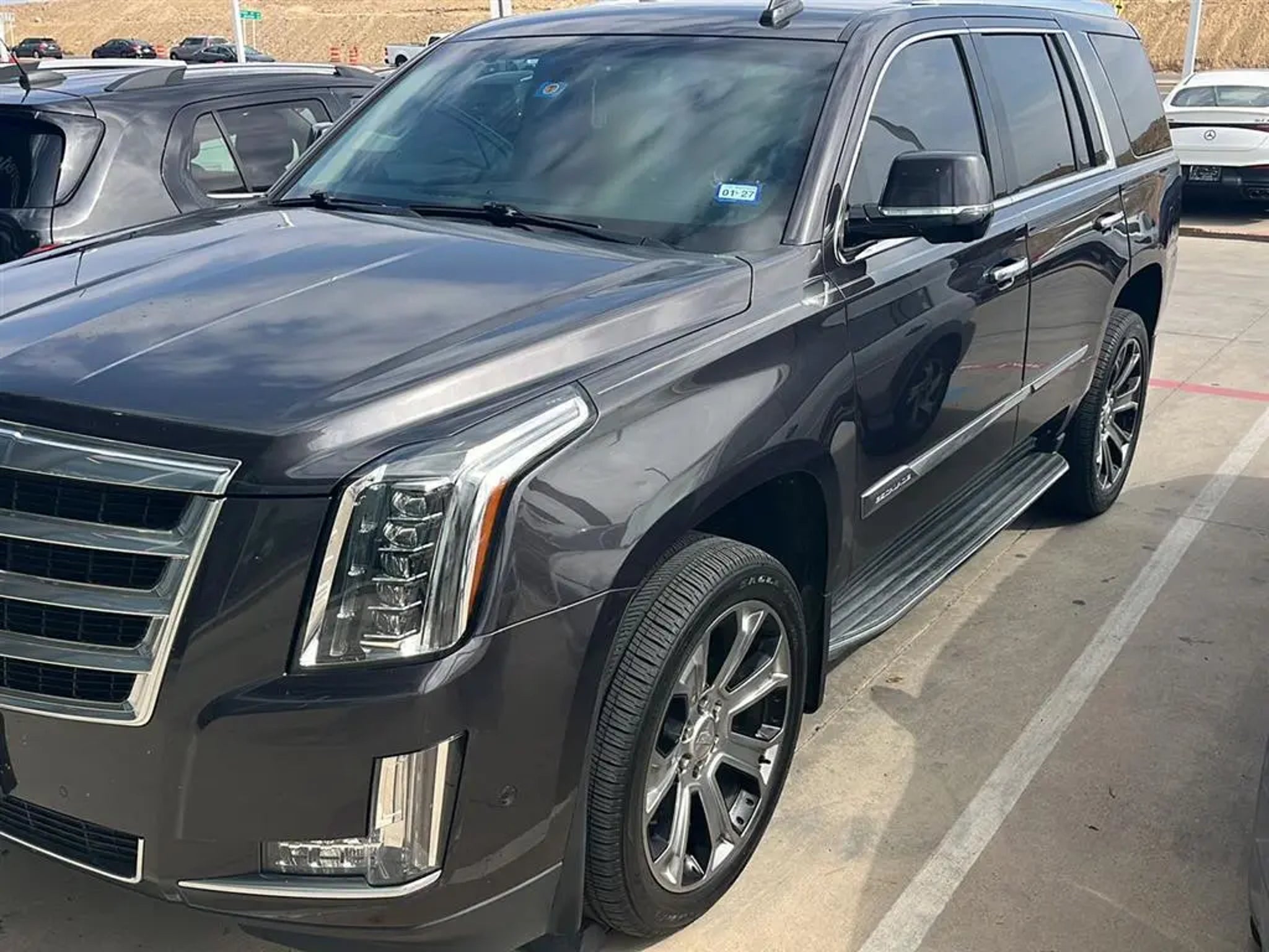 This 2017 Cadillac Escalade 2WD 4DR|has a Dark Granite Metallic exterior and Jet Black interior color with only 85506 miles. Stock Number M26034B. You can connect with us by calling .\n \n\n\n \n\n\n OTHER NOTABLE FEATURES AND OPTIONS YOU SHOULD KNOW ABOUT: \n\n Preferred Equipment Group 1SA \n\n\n\n Safety and Security Rear camera - Watching your back! The rear camera helps you see obstacles and hazards you otherwise couldn't by showing enhanced images of what is behind you. The rear camera is an extra set of eyes that's both convenient and safe. Technology and Telematics Smart device mirroring - Smartphone, meet smart car. You can control your device through your vehicle's infotainment system. Smart device mirroring brings together safety and convenience by making it easier to find what you're looking for while keeping your eyes on the road. Smart device mirroring - Smartphone, meet smart car. You can control your device through your vehicle's infotainment system. Smart device mirroring brings together safety and convenience by making it easier to find what you're looking for while keeping your eyes on the road. Mobile hotspot - WiFi on the fly. Connect your devices to the Internet through your vehicle's private mobile hotspot and take the internet wherever your journey takes you, without eating up your data allowance. Find the hotspot with mobile hotspot. Mobile hotspot - WiFi on the fly. Connect your devices to the Internet through your vehicle's private mobile hotspot and take the internet wherever your journey takes you, without eating up your data allowance. Find the hotspot with mobile hotspot. \n\nEMISSIONS, FEDERAL REQUIREMENTS, ENGINE, 6.2L V8 WITH ACTIVE FUEL MANAGEMENT, TRANSMISSION, 8-SPEED AUTOMATIC, 8L90, REAR AXLE, 3.23 RATIO, WHEELS, 20 X 9 (50.8 CM X 22.9 CM) DUAL 7-SPOKE CHROME PLATED ALUMINUM, TIRES, P275/55R20 ALL-SEASON, BLACKWALL, DARK GRANITE METALLIC, SEATS, FRONT BUCKET, SEATS, SECOND ROW BUCKET, MANUAL, JET BLACK, LEATHER SEATING SURFACES, CADILLAC CUE INFORMATION AND MEDIA CONTROL SYSTEM WITH EMBEDDED NAVIGATION, LICENSE PLATE BRACKET, FRONT, BLACK \n\n\nAt Mercedes-Benz of Laredo, we're here to Serve you! Our staff is 100% dedicated to customer satisfaction and we understand that you need clear, transparent information throughout the car buying process. With our live market pricing philosophy, we offer the right cars at the right price, and the transparency to back it up!\n