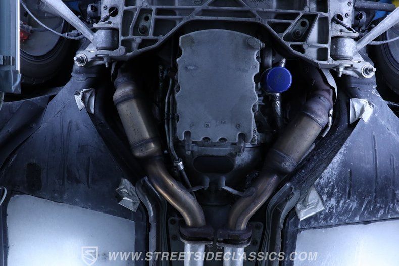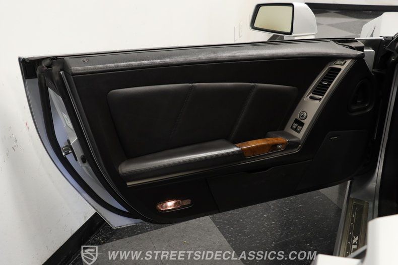 Although a sports car on the outside, this XLR is still a luxury car on the inside. A black leather interior with woodgrain accents is equipped with heated and vented power seats, locks, windows, and mirrors, while a heads-up display keeps your eyes safely on the road. A Kenwood touchscreen infotainment screen offers AM/FM/CD/AUX as well as satellite and Bluetooth connectivity. Dual-zone climate control, along with the etched wind deflector come in especially handy with the retractable top lowered, while individual roll hoops add a level of safety to complement the multitude of airbags throughout the cabin.