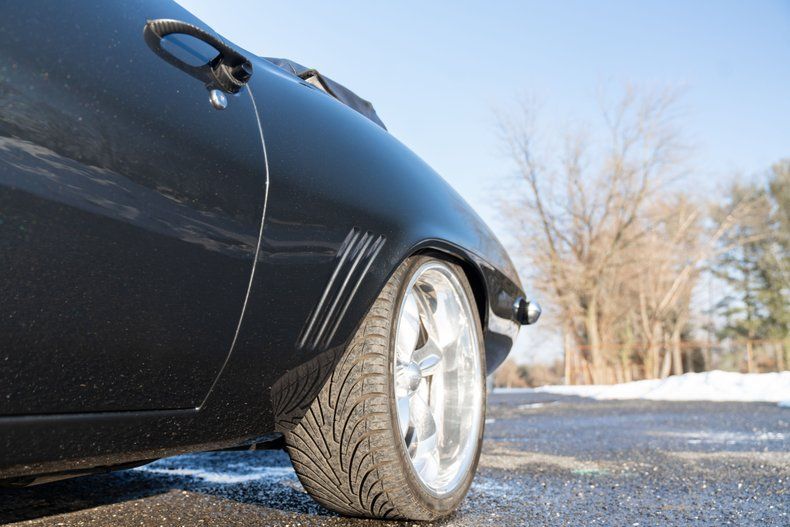 This RS/SS Convertible maintains its iconic 1969 presence while incorporating modern enhancements. The RS/SS front grille pairs with a custom Stingray hood to create an aggressive yet refined profile. LS3 badging subtly hints at the performance within. Carbon fiber mirrors and door handles add contemporary contrast, while LED billet taillights modernize the rear appearance. The electric-powered convertible top provides effortless open-air cruising. Riding on American Racing wheels and equipped with Wilwood 6-piston disc brakes, this Camaro balances classic muscle aesthetics with serious stopping power. A Ridetech fuel cap and convertible cover complete the detailed exterior package.