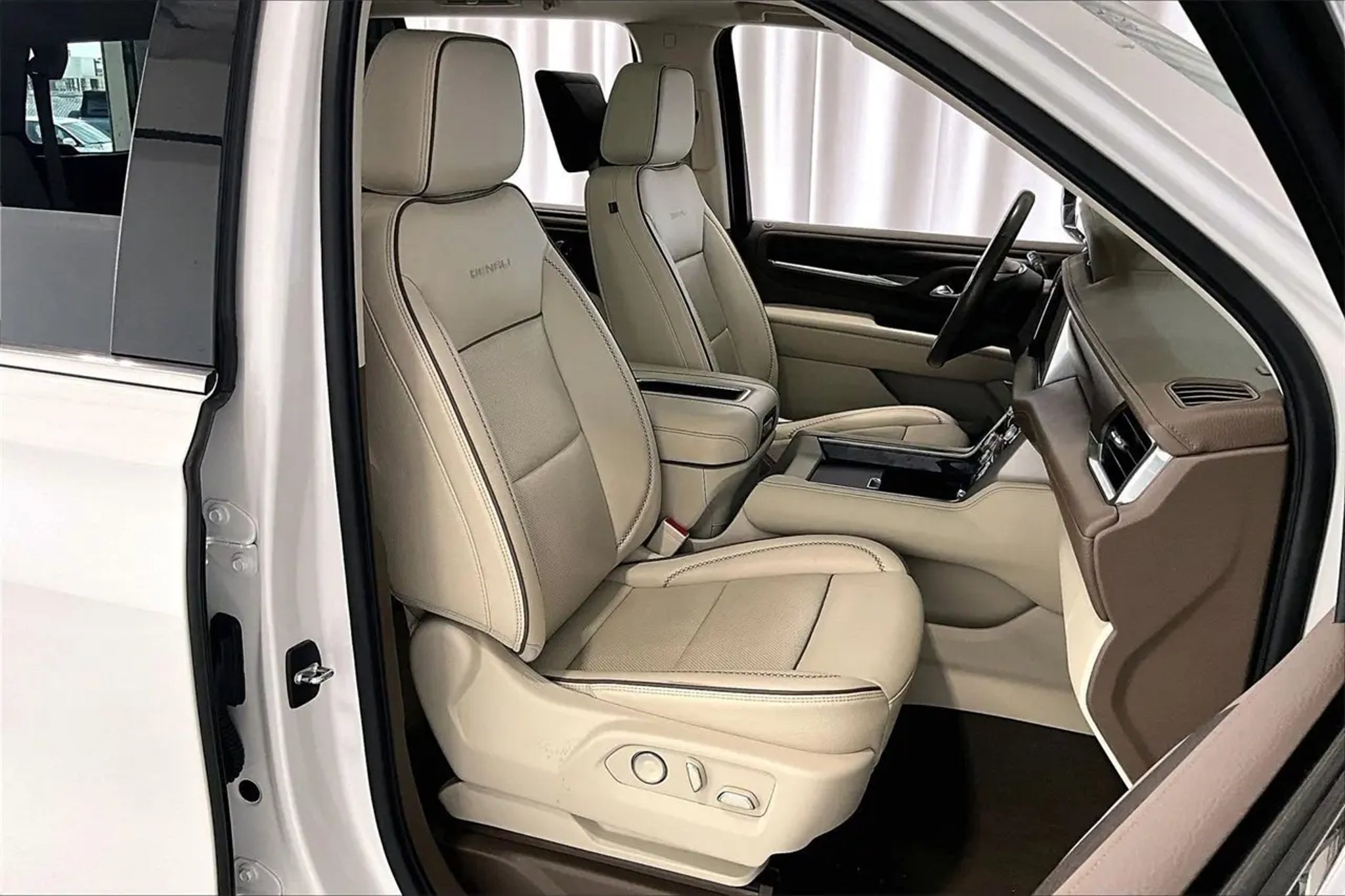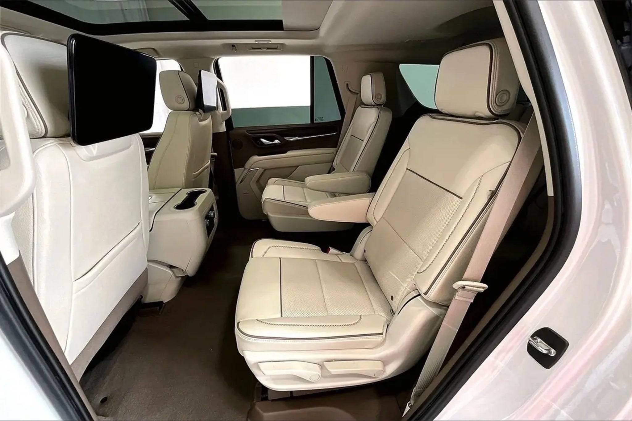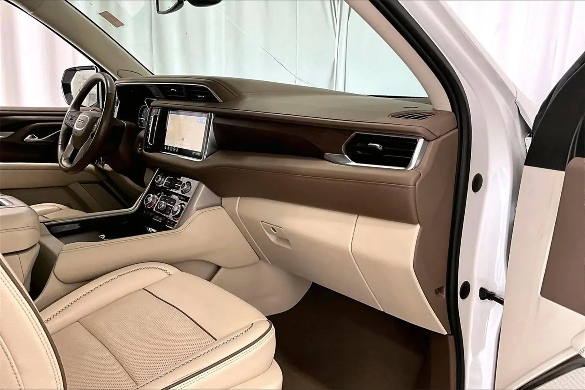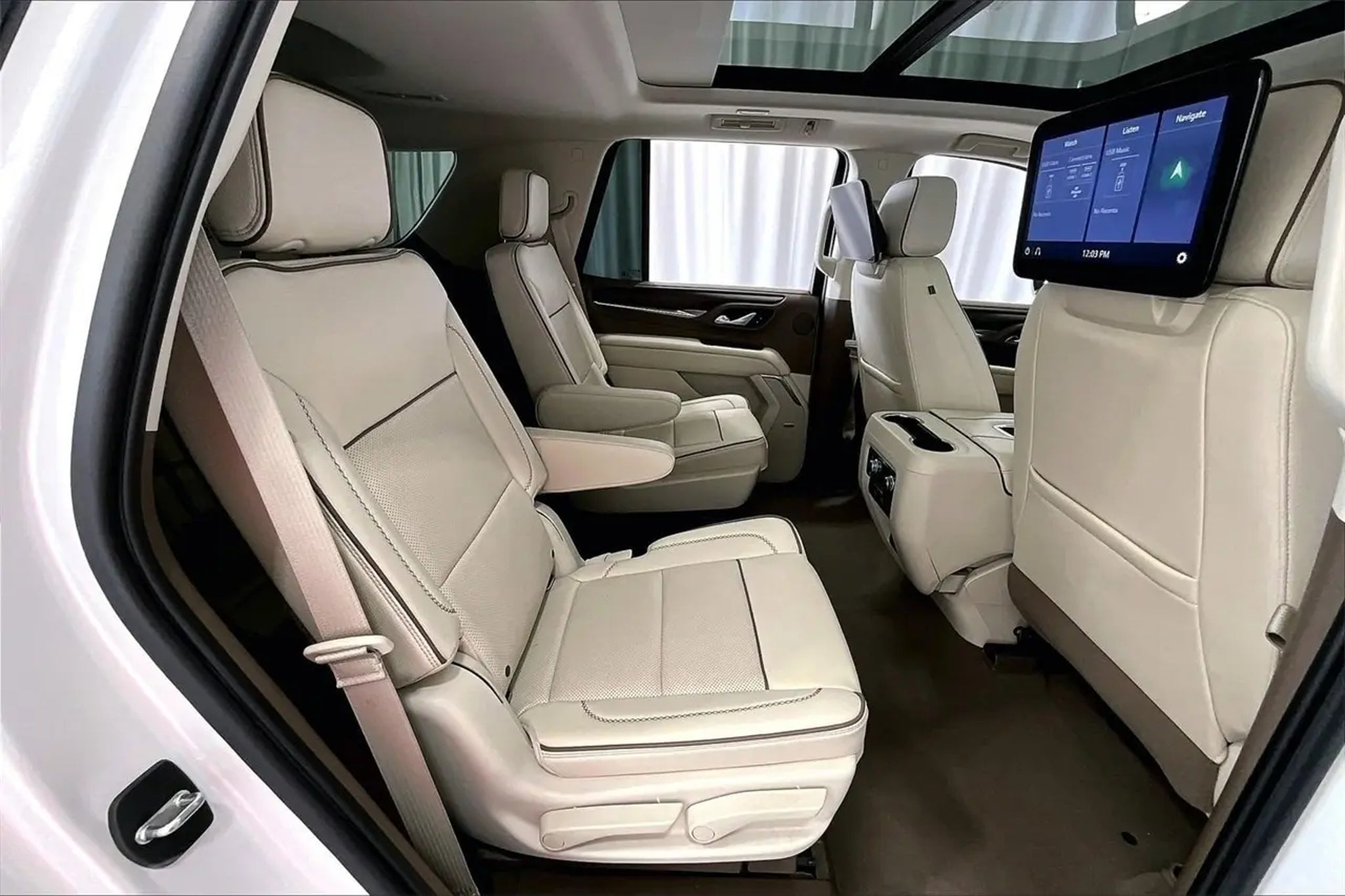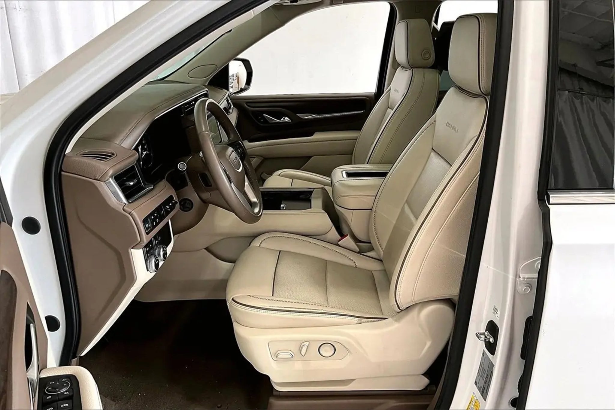 Non-Smoker, Local Trade, LEATHER, ONE OWNER, Heated/Cooled Seats, **SUNROOF / MOONROOF **, ** NAVIGATION / NAVI / GPS **, ** REAR ENTERTAINMENT / DVD **, Rear View Camera, ALUMINUM WHEELS, SECOND ROW BUCKETS, THIRD ROW SEAT, BLUETOOTH, 12-Way Power Seat Adjusters, 15 Diagonal Multi-Color Head-Up Display, 2 Presets For Outside Rearview Mirrors, 3rd Row 60/40 Power-Folding Split-Bench Seat, Bright Front & Rear Door Sill Plates, Chrome Door Handles w/Body-Color Strip, Dual Exhaust System, Galvano Bodyside Moldings, Hands-Free Power Programmable Rear Liftgate, HD Surround Vision, Heated & Ventilated Driver & Front Passenger Seats, Heated 2nd Row Outboard Position Seats, Heated Automatic Steering Wheel, Heated Driver & Front Passenger Seats, Hill Descent Control, Illuminated Front GMC Emblem (LPO), Illuminated Mirror GMC Emblem (LPO), Illumination Package (LPO), Inside Rear-View Auto-Dimming Mirror, License Plate Front Mounting Package, Navigation System, Outside Heated Power-Adjustable Mirrors, Power Release 2nd Row Bucket Seats, Power Tilt & Telescopic Steering Column, Preferred Equipment Group 5SA, Rear Pedestrian Alert, Safety Alert Seat, Universal Home Remote. CARFAX One-Owner. Odometer is 15862 miles below market average! Recent Arrival! White Frost Tricoat 2021 GMC Yukon Denali 4WD 10-Speed Automatic with Overdrive EcoTec3 6.2L V8