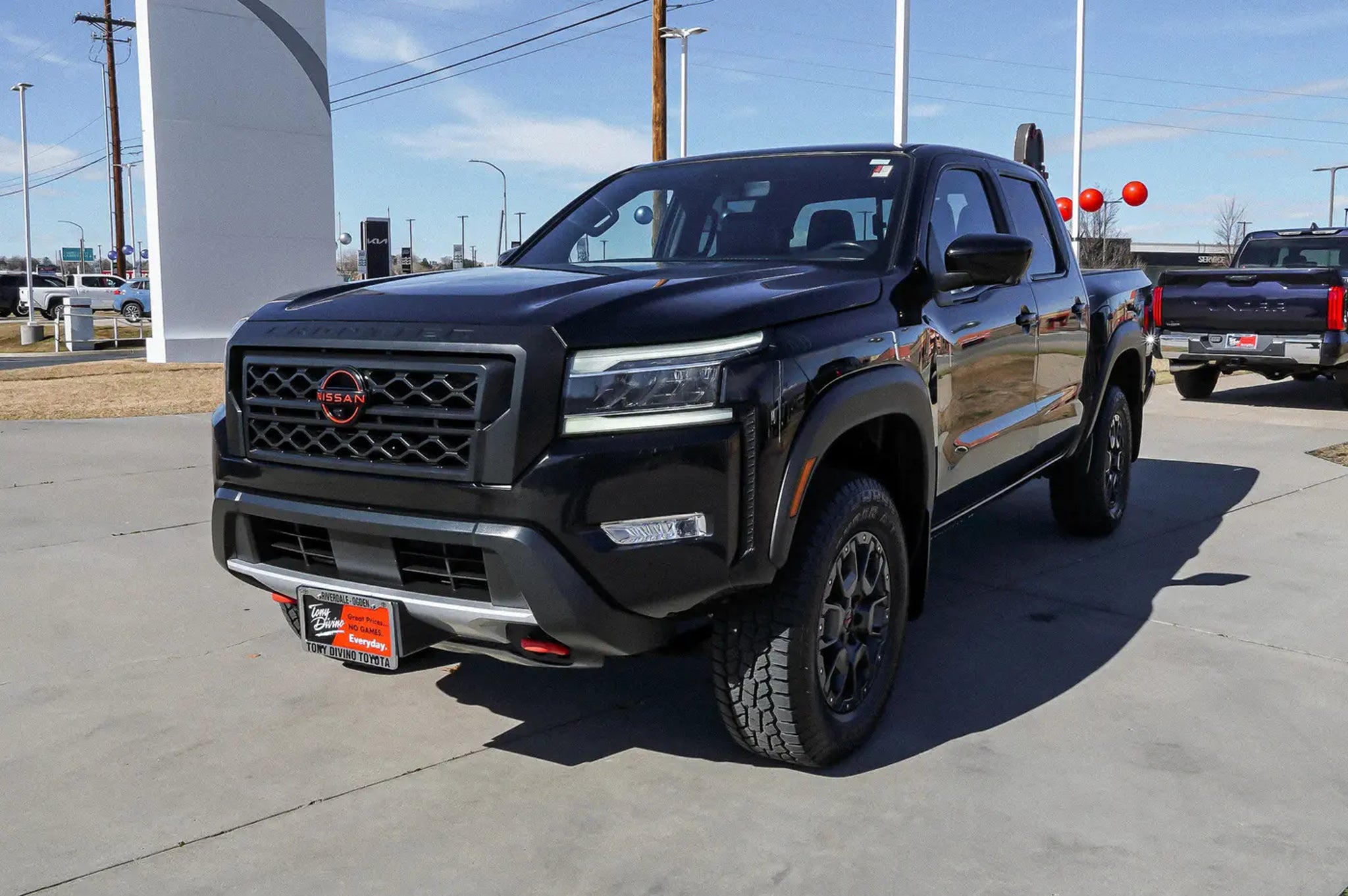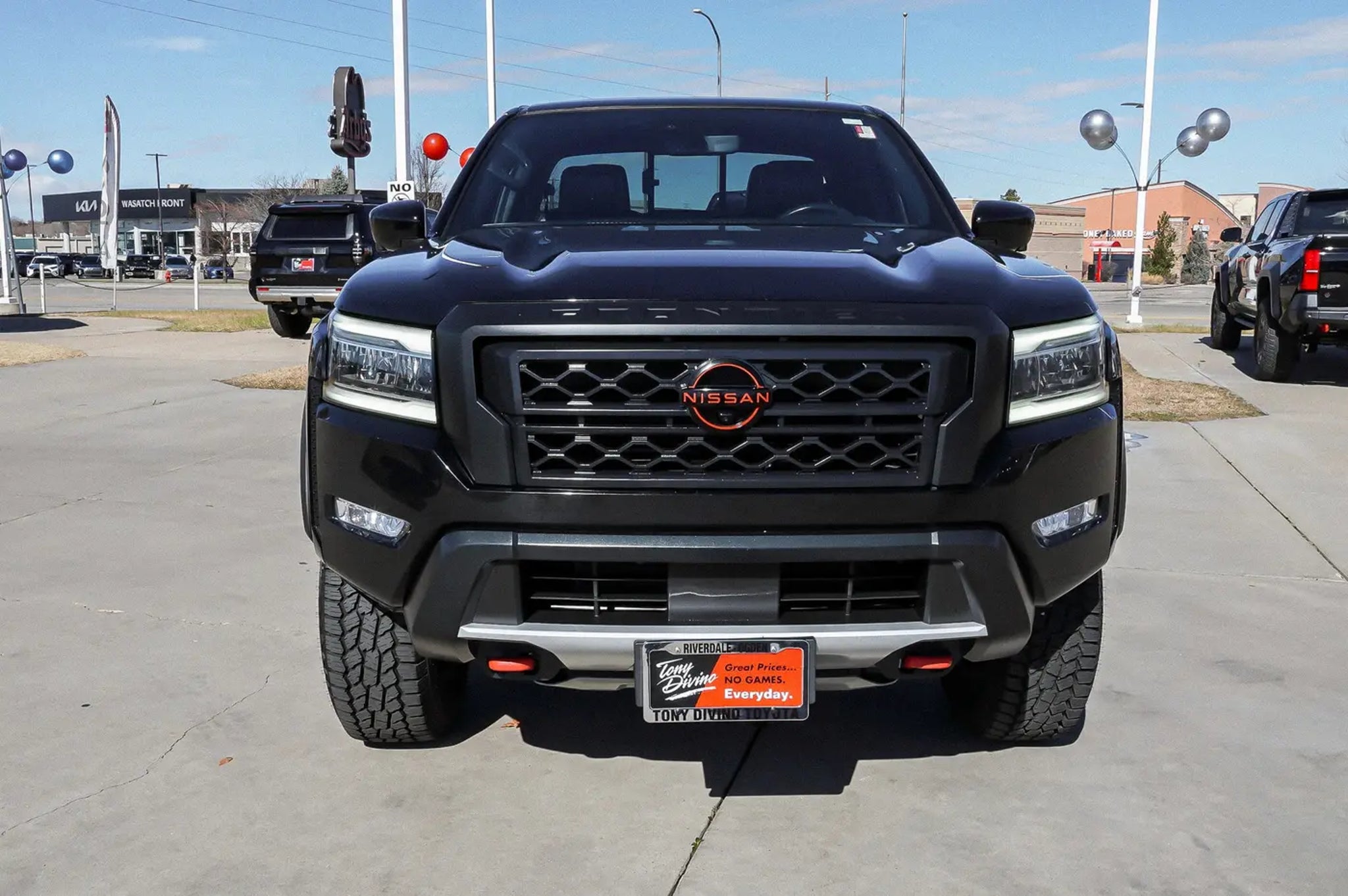 Delivers 22 Highway MPG and 17 City MPG! This Nissan Frontier boasts a Regular Unleaded V-6 3.8 L/231 engine powering this Automatic transmission. SUPER BLACK, Wireless Phone Connectivity, Variable Intermittent Wipers. This Nissan Frontier Features the Following Options Turn-By-Turn Navigation Directions, Trip Computer, Transmission: 9-Speed Automatic w/Overdrive, Transmission w/Driver Selectable Mode and Oil Cooler, Towing Equipment -inc: Trailer Sway Control, Tire Pressure Monitoring System Tire Specific Low Tire Pressure Warning, Tailgate Rear Cargo Access, Steel Spare Wheel, Solid Axle Rear Suspension w/Leaf Springs, Smart Device Integration. Stop By Today Stop by Tony Divino Toyota located at 777 West Riverdale Rd, Riverdale, UT 84405 for a quick visit and a great vehicle! * Estimated Monthly Payment will depend on vehicle make and model and will be determined upon actual vehicle inspection. All payments are estimates. Tax, title, registration and documentation fee ($349) are extra.* While every reasonable effort is made to ensure the accuracy of this information, we are not responsible for any errors or omissions contained on these pages. Please verify any information in question with Tony Divino Toyota.