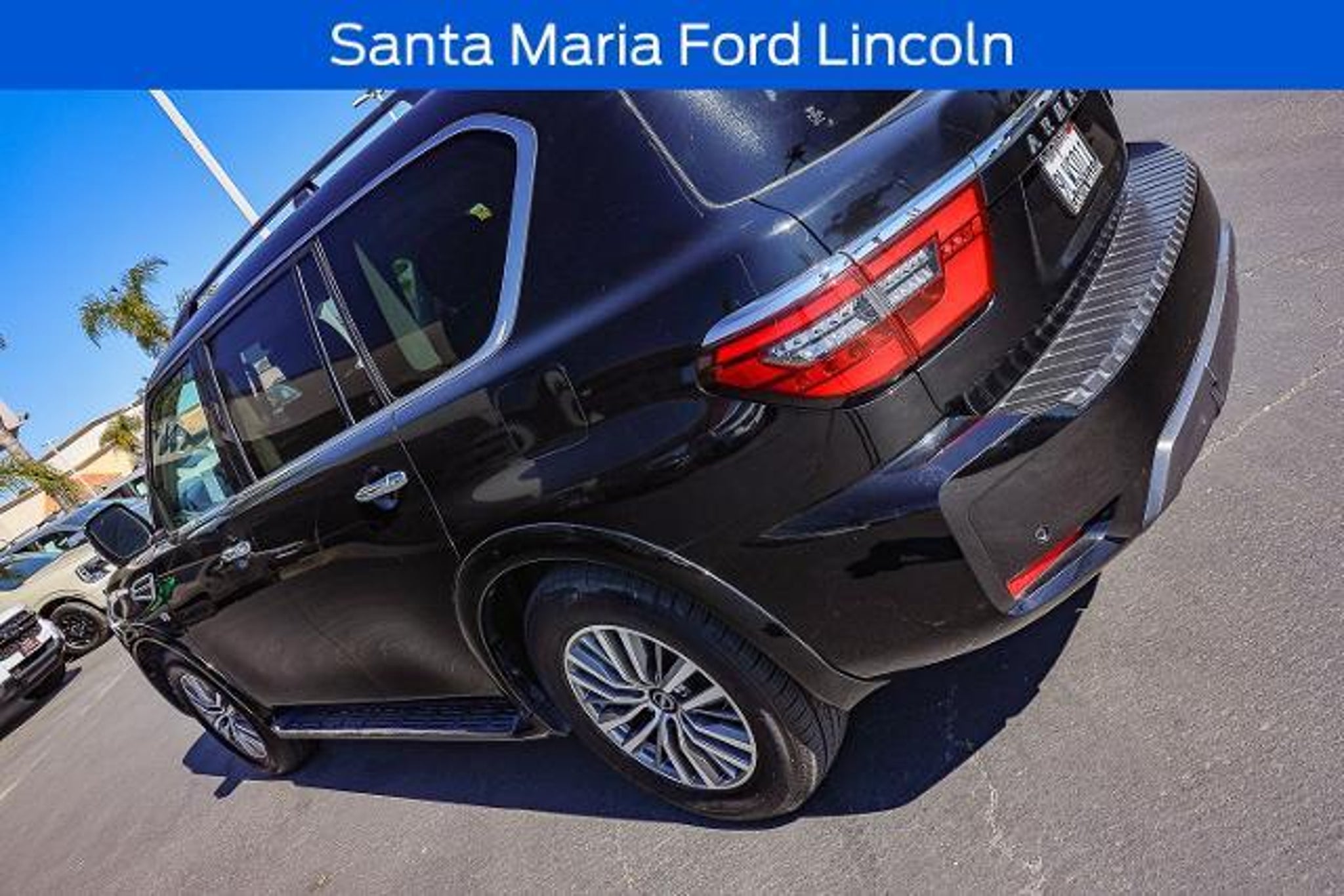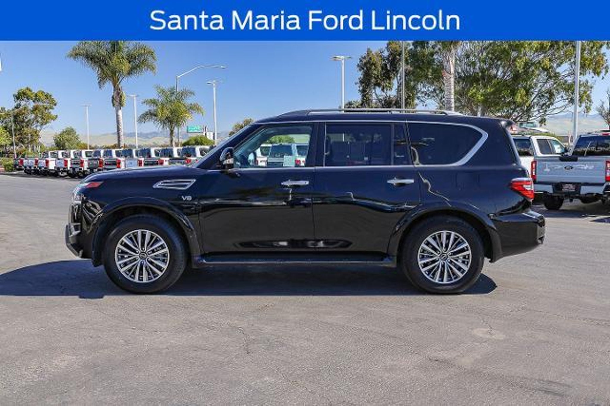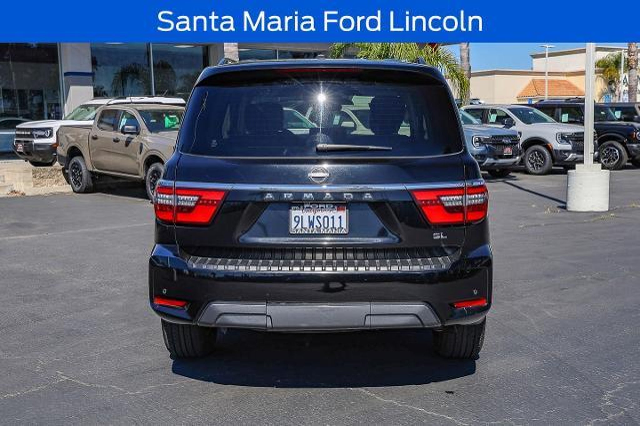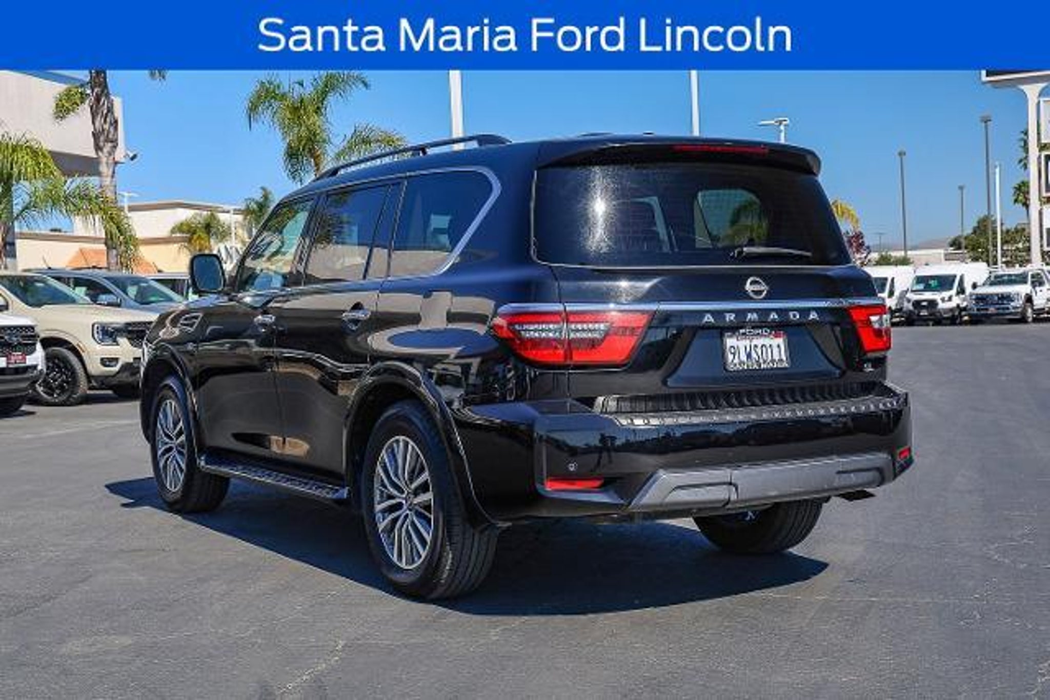 All of our Pre-Owned vehicles are subject to a 100 point inspection to ensure safety and reliability. 13 Speakers, 2.94 Axle Ratio, 20 Painted Alloy Wheels, 2nd Row Captain's Chairs, 2nd Row Center Console w/Padded Armrest, 3rd Row Carpeted Floor Mats - Captain Seat, 3rd row seats: split-bench, 4-Wheel Disc Brakes, ABS brakes, Air Conditioning, Alloy wheels, AM/FM radio: SiriusXM, Anti-whiplash front head restraints, Auto High-beam Headlights, Auto tilt-away steering wheel, Auto-dimming door mirrors, Auto-dimming Rear-View mirror, Auto-leveling suspension, Automatic temperature control, Brake assist, Bumpers: body-color, Captain's Chairs Package, Delay-off headlights, Driver door bin, Driver vanity mirror, Dual front impact airbags, Dual front side impact airbags, Electronic Stability Control, Emergency communication system: NissanConnect Services, Exterior Parking Camera Rear, Four wheel independent suspension, Front anti-roll bar, Front Bucket Seats, Front Center Armrest, Front dual zone A/C, Front fog lights, Front reading lights, Fully automatic headlights, Garage door transmitter: HomeLink, Heated door mirrors, Heated Front Bucket Seats, Heated front seats, Illuminated entry, Leather Seat Trim, Leather Shift Knob, Low tire pressure warning, Memory seat, Navigation System, NissanConnect featuring Apple CarPlay and Android Auto, Occupant sensing airbag, Outside temperature display, Overhead airbag, Overhead console, Panic alarm, Passenger door bin, Passenger vanity mirror, Power door mirrors, Power driver seat, Power Liftgate, Power moonroof, Power passenger seat, Power steering, Power windows, Radio: NissanConnect w/SiriusXM, Rear air conditioning, Rear anti-roll bar, Rear reading lights, Rear seat center armrest, Rear window defroster, Rear window wiper, Reclining 3rd row seat, Remote keyless entry, Security system, Speed control, Speed-sensing steering, Speed-Sensitive Wipers, Split folding rear seat, Spoiler, Steering wheel memory, Steering wheel mounted audio controls, Tachometer, Telescoping steering wheel, Tilt steering wheel, Traction control, Trip computer, Turn signal indicator mirrors, Variably intermittent wipers, Voltmeter. Super Black 2021 Nissan Armada SL RWD 7-Speed Automatic 5.6L V8 DOHC 32V LEV3-ULEV125 400hp Recent Arrival! When was the last time you used the word 'love' to describe how you feel about your car? At Santa Maria Ford, we hear our customers say it all the time, and for good reason. Serving drivers from Paso Robles, Santa Barbara, and Pismo Beach, we offer a wide rang