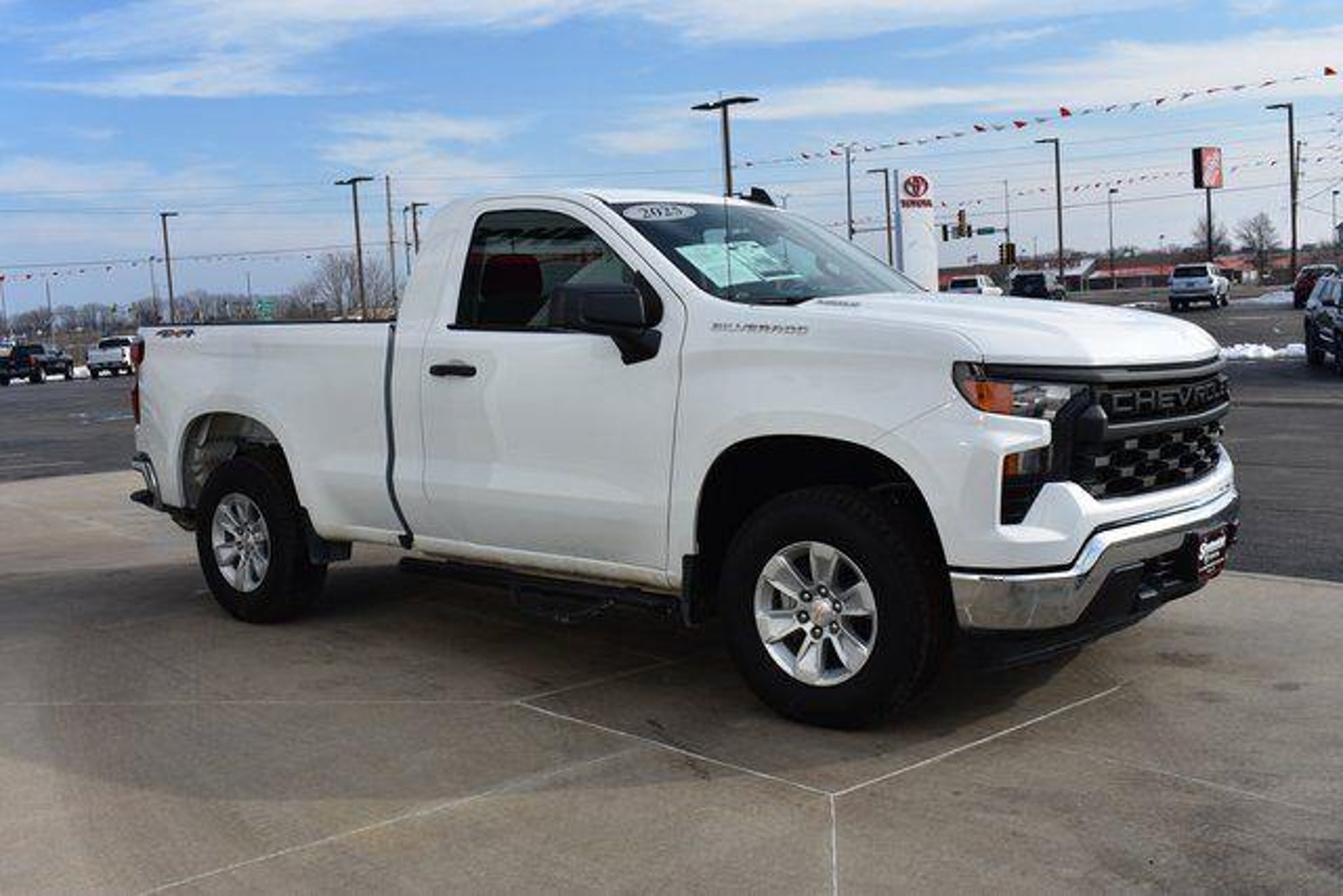 [ 2025 Chevrolet Silverado 1500 Summit White WT 2.7L I4 Turbocharged DOHC 16V LEV3-SULEV30 310hp 8-Speed Automatic 4WD Fixed Running Boards Towing/Camper Pkg Clean Carfax Backup Camera Silverado 1500 WT 2D Standard Cab 8-Speed Automatic 4WD Summit White Black Cloth 2 Speakers 4-Way Manual Driver Seat Adjuster ABS brakes Air Conditioning Bluetooth® For Phone Compass Driver door bin Front Center Armrest w/Storage Front Chrome Bumper Front reading lights Fully automatic headlights Heated door mirrors Illuminated entry Low tire pressure warning Manual Tailgate Function w/No EZ Lift Outside temperature display Overhead console Panic alarm Passenger door bin Passenger vanity mirror Power door mirrors Power Front Windows w/Driver Express Up/Down Power Front Windows w/Passenger Express Down Power steering Power windows Radio data system Rear step bumper Remote Keyless Entry Speed control Standard Tailgate Tilt steering wheel Tire Pressure Monitoring System Traction control Variably intermittent wipers. Shottenkirk Toyota of Quincy Illinois has been serving the needs of tri-state motorists for years.Offering top notch new and used Toyota sales service and parts in a friendly environment that puts a premium on service not prices! We're proud to be a destination for used car shoppers from the Jacksonville Springfield Carthage Il. Hannibal Kirksville St. Louis Columbia Mo. And the Mt.Pleasant Keokuk Farmington Fort Madison Iowa areas.Whether you visit us to buy an used Chevrolet like a Silverado Camaro Impala G6 Sonic Cruz Corvette Equinox Traverse Tahoe Suburban Colorado Avalanche or to get service for your existing vehicle you'll get impeccable service.We have an outstanding reputation for quality and a no-hassle buying experience. You may also visit us at ] [Our Toyota dealership is happy to help drivers in Quincy, IL and surrounding areas in finding Toyota cars, trucks and SUVs for sale. We believe that after just a few moments of sifting through our abundant inventory, motorists will find the perfect vehicle for their needs. We also offer competitive finance packages and service options as well! Did we mention that most of your automotive requests can be booked entirely online? Starting online can save you lots of valuable time. Our website will serve you well if you're looking to apply for financing, schedule a service appointment, or browse service specials. ]