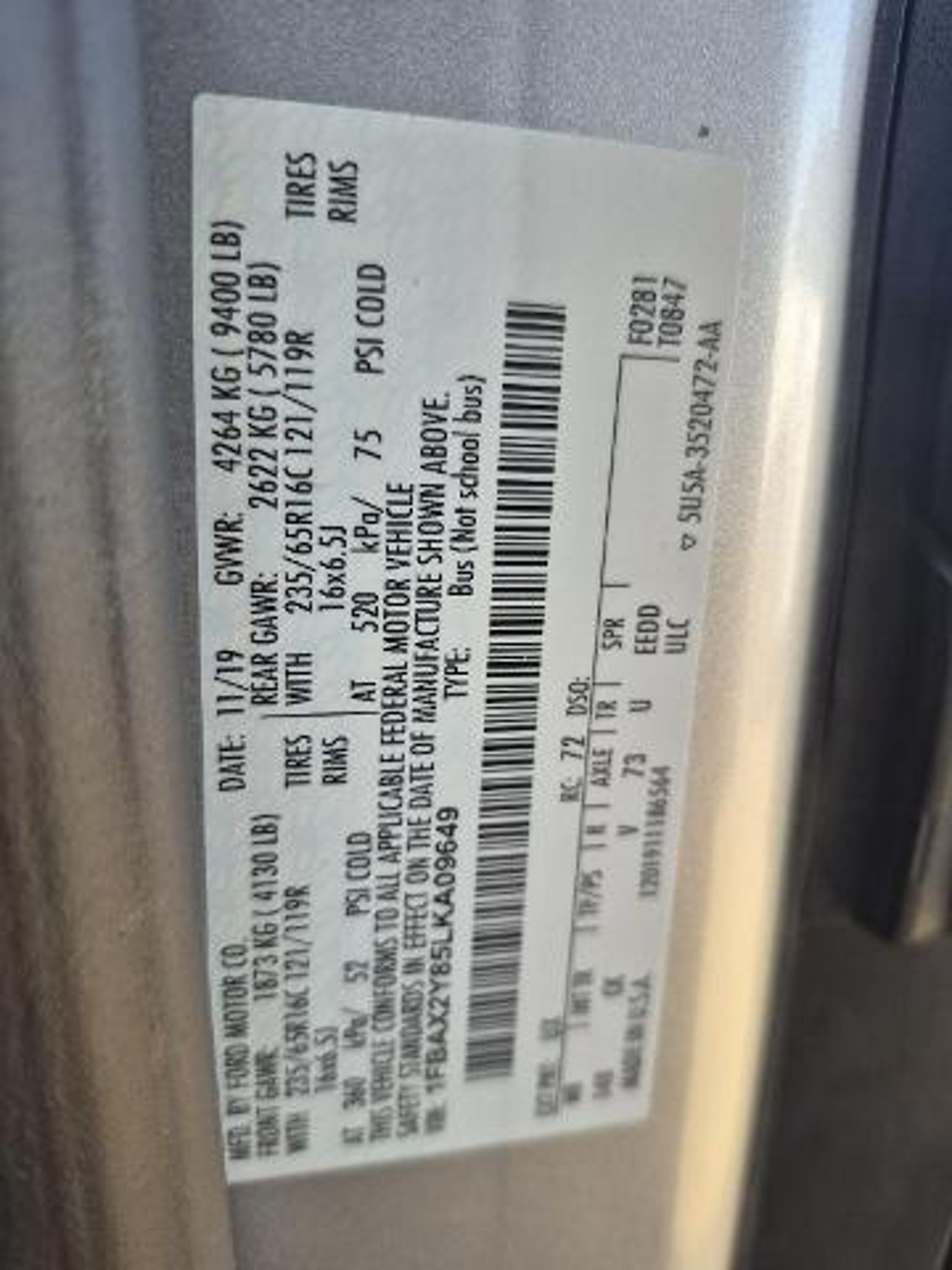 VIN 1FBAX2Y85LKA09649
