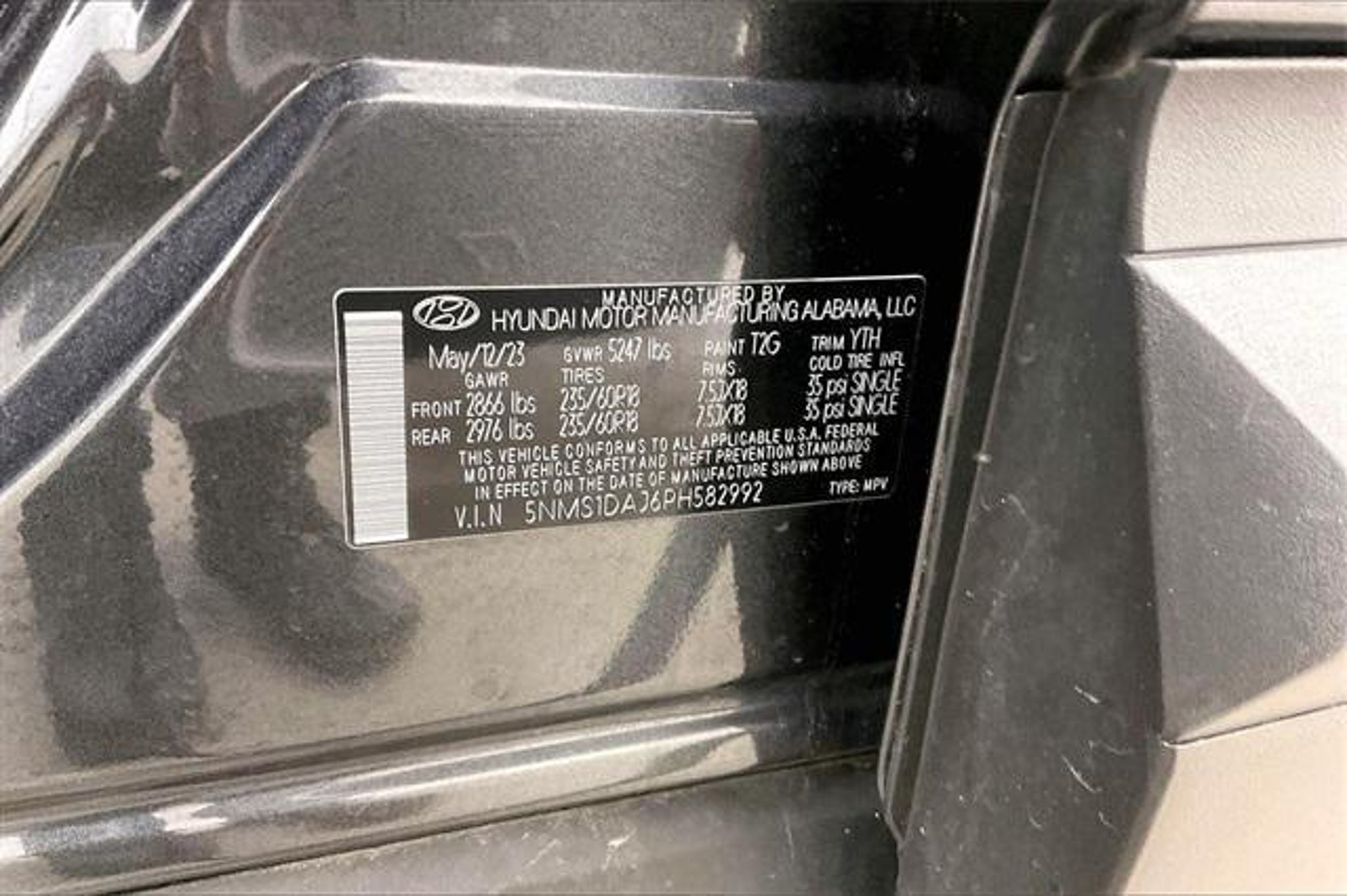 VIN 5NMS1DAJ6PH582992