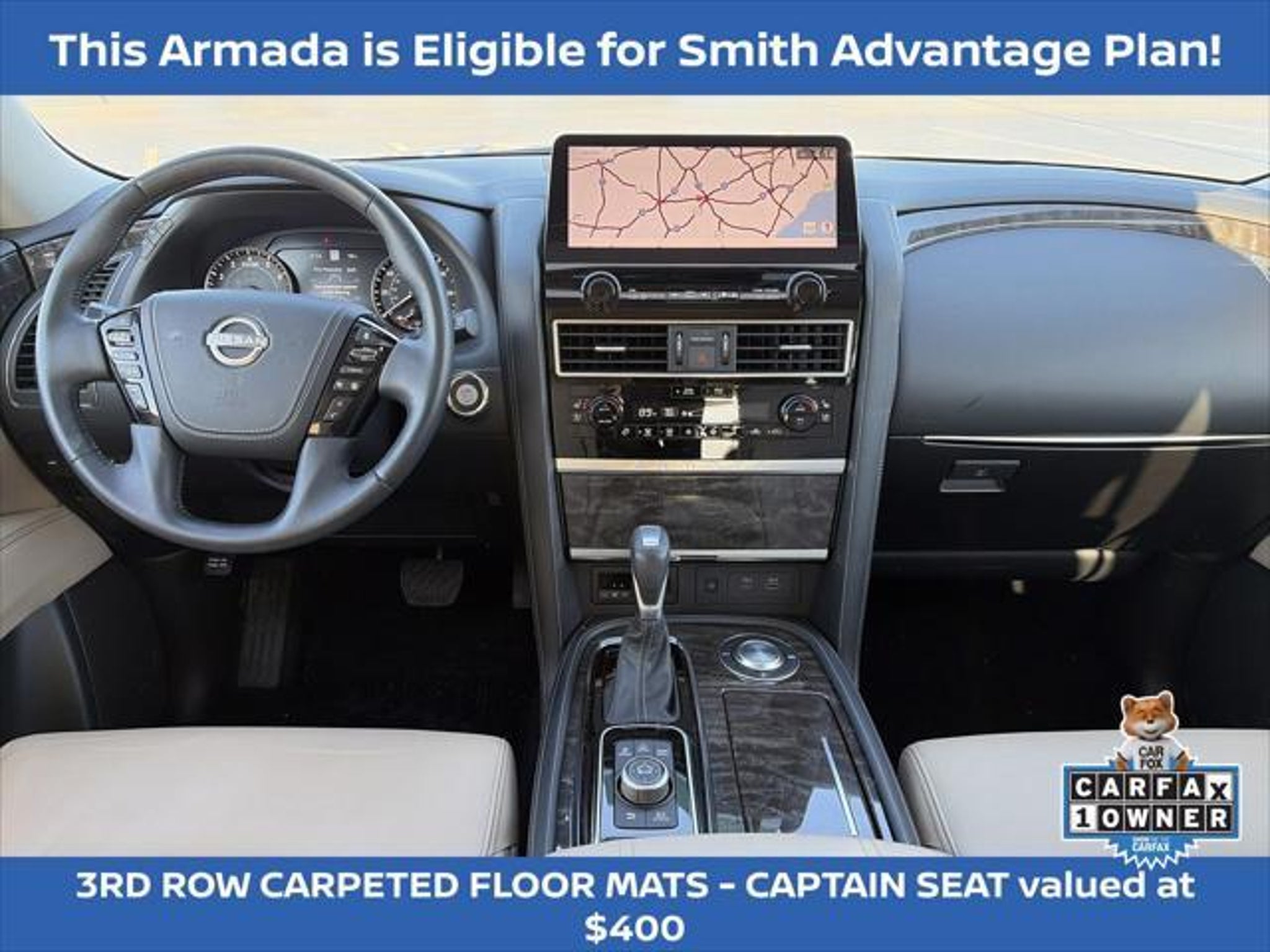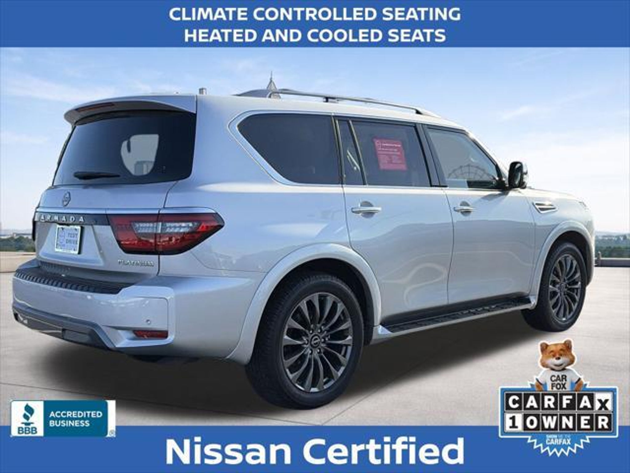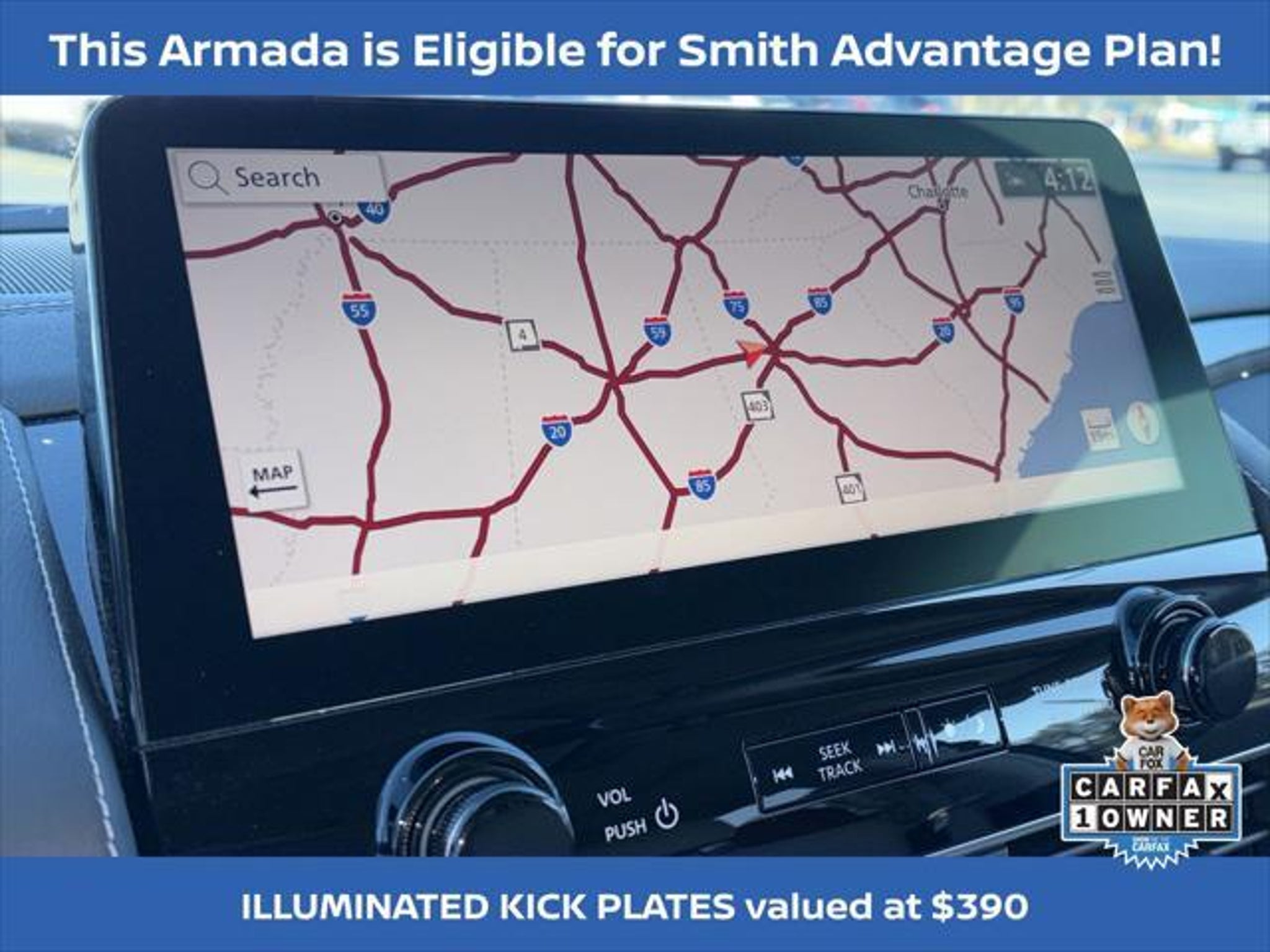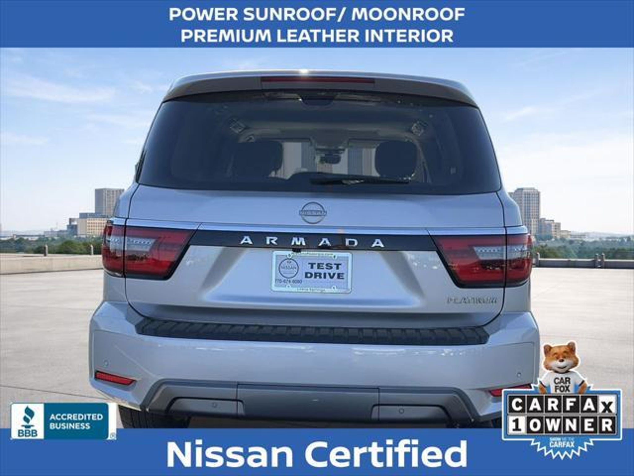 Experience the pinnacle of luxury and capability with the 2024 Nissan Armada Platinum. This exceptional SUV is a true masterpiece, blending advanced technology, premium comfort, and unparalleled performance to elevate your driving experience. Boasting an impressive array of features, the 2024 Armada Platinum stands out from the crowd: "¢ NISSAN CERTIFIED PRE-OWNED! 7 YEAR / 100,000 POWERTRAIN WARRANTY "¢ 7 YEAR / 100,000 MILE 24 HOUR ROADSIDE ASSISTANCE COVERAGE "¢ ONE OWNER! "¢ 3RD ROW SEATING "¢ FACTORY GPS NAVIGATION "¢ POWER SUNROOF/ MOONROOF "¢ PREMIUM LEATHER INTERIOR "¢ CLIMATE CONTROLLED SEATING "¢ HEATED AND COOLED SEATS "¢ HEATED STEERING WHEEL "¢ MEMORY SEAT "¢ WIRELESS APPLE CARPLAY / ANDROID AUTO "¢ SIRIUS XM SATELLITE RADIO "¢ BOSE PREMIUM AUDIO PACKAGE The Armada Platinum's captivating presence is further enhanced by its striking 22 wheel package and sleek silver exterior. Step inside and be enveloped in the luxurious quilted leather seating, where you'll enjoy the convenience of power-adjustable and heated/ventilated front seats, as well as a heated steering wheel for unparalleled comfort. Powered by a robust 5.6L V8 engine delivering 400 horsepower, the Armada Platinum provides the perfect blend of strength and efficiency, with an impressive 19 mpg on the highway. Cutting-edge safety features, including Intelligent Forward Collision Warning, Automatic Emergency Braking, and Blind Spot Intervention, ensure you and your loved ones can travel with confidence. The 2024 Nissan Armada Platinum is more than just a vehicle "“ it's a statement of refined taste and uncompromising quality. Experience the pinnacle of SUV luxury and capability today. We want to ensure you have all the details you need! Our pricing and information are presented with utmost accuracy. Please keep in mind that prices and incentives can vary depending on your location, and they are subject to change. It's important to note that government fees such as tax, tag, title, and WRA are not included in our prices. At Nissan of Lithia Springs, we proudly offer automotive loan financing through our esteemed Finance Department. Contact one of our dedicated finance managers to learn more about our Credit Assistance Program. Our exceptional team of sales and finance associates is committed to providing top-notch care and addressing all your automotive concerns with the utmost dedication. Visit our dealership at 811 Thornton Rd, Lithia Springs, GA, or call us at . We are looking forward to assisting all our customers in the greater Atlanta area with great enthusiasm and sincerity.