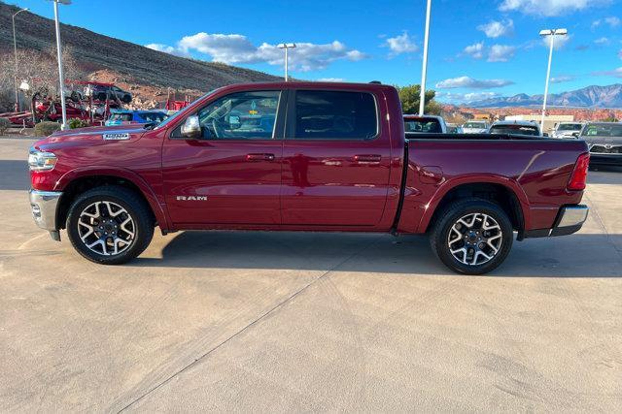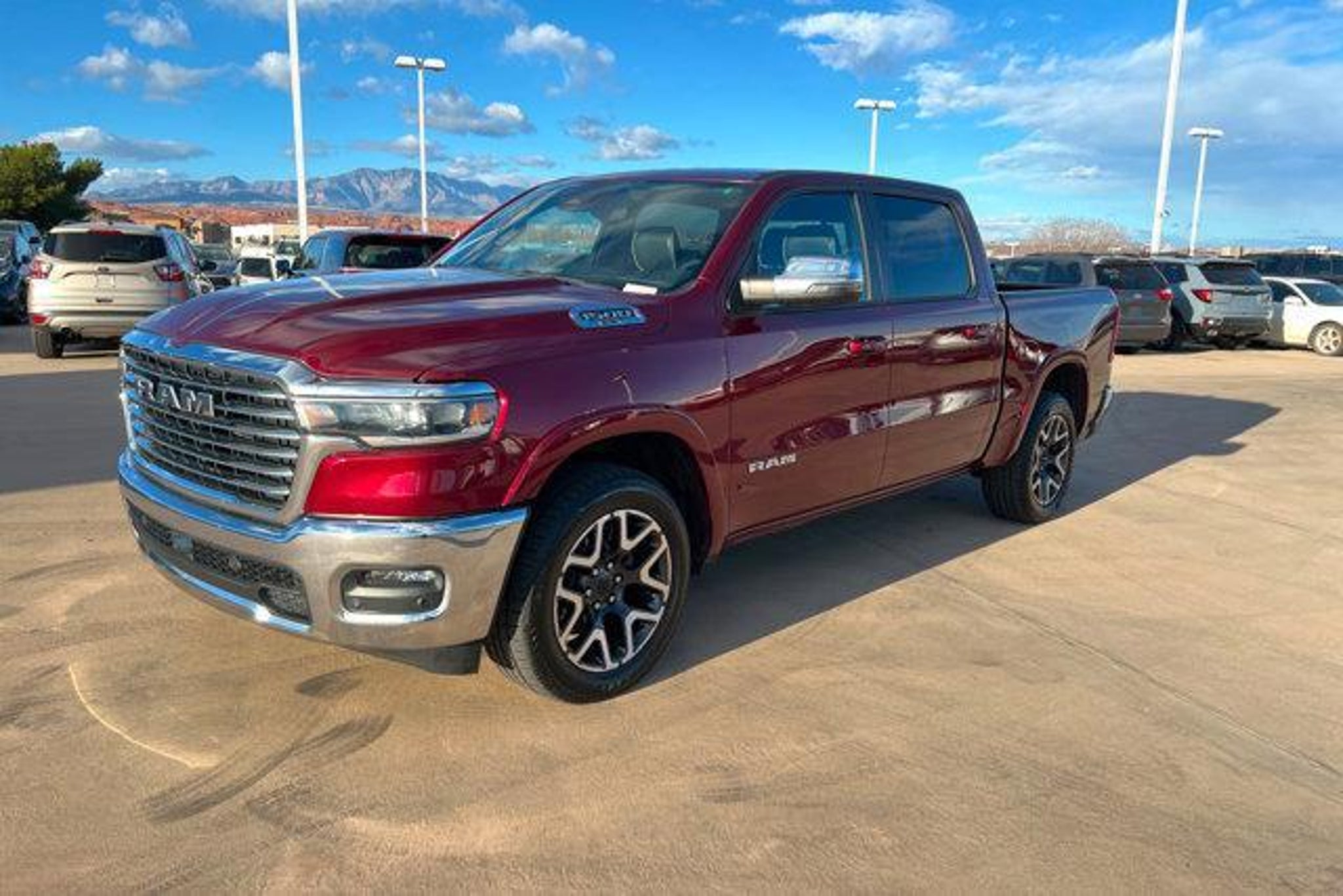 Details > 2025 RAM 1500 4X4 Laramie 4DR Crew Cab 5.6 FT. SB Pickup For Sale in St. George, UT Private Party Sellers Click here to place your ad now! You auta tell them you saw the ad in AutaBuy when you call or email. 1/24 2/24 3/24 4/24 5/24 6/24 7/24 8/24 9/24 10/24 11/24 12/24 13/24 14/24 15/24 16/24 17/24 18/24 19/24 20/24 21/24 22/24 23/24 24/24 View 24 Photos View All Add to My Garage Parked in Your Garage! Stephen Wade Chrysler Contact Seller: I would like to: Make Offer Check Availability Ask A Question Request More Photos Check Financing Options Send a copy of this message to me Add this listing to my garage Send to Mobile Mileage 53,487 Exterior Color Delmonico Red Pearlcoat Interior Color Black Doors 4 Engine 3.0L I6 Transmission 8 Speed Auto Stock # 9199440 VIN 1C6SRFJPXSN563034 Estimated Monthly Payment $748 mo Apply Now J.J. Best Banc & Co. 2025 RAM 1500 4X4 Laramie 4DR Crew Cab 5.6 FT. SB Pickup Description: Stephen Wade Chrysler, Jeep, Dodge, Ram · Mileage: 53,487 · Color: Delmonico Red Pearlcoat Price: $43,000. Mileage 53,487 Exterior Color Delmonico Red Pearlcoat Interior Color Black Doors 4 Engine 3.0L I6 Transmission 8 Speed Auto Stock # 9199440 VIN 1C6SRFJPXSN563034 Estimated Monthly Payment $748 mo Apply Now J.J. Best Banc & Co. Add to My Garage Parked in Your Garage! Message Seller Stephen Wade Chrysler Contact Seller: I would like to: Make Offer Check Availability Ask A Question Request More Photos Check Financing Options Send a copy of this message to me Add this listing to my garage Offered for sale by Stephen Wade Chrysler ST. GEORGE, UT Price: $43,000. Offered for sale by Stephen Wade Chrysler ST. GEORGE, UT [entire inventory] Ask Auta Intelligence The first collector-car AI built directly into a classic car marketplace What colors did these come in? What's the typical towing capacity in this configuration? Tell me about this model What factory options were available on this model? How far is this from me? Where is this located? When was this model first introduced? What kind of mileage do these get? What transmission options did these offer? How easy are parts to find for this model? What engine options did these come with? Can you show me more pickups/trucks for a similar price? What size tires does this run from the factory? How many 1500s were produced in Red? How many of these were produced? What does this VIN number tell me? What trim levels were available for this model? Do you have a similar car to sell? List It Now! Questions about this car? Ask Auta Intelligence for production numbers, available options, etc. · Subscribe to AutaBuy! · Send a Gift Subscription Notice to a Friend