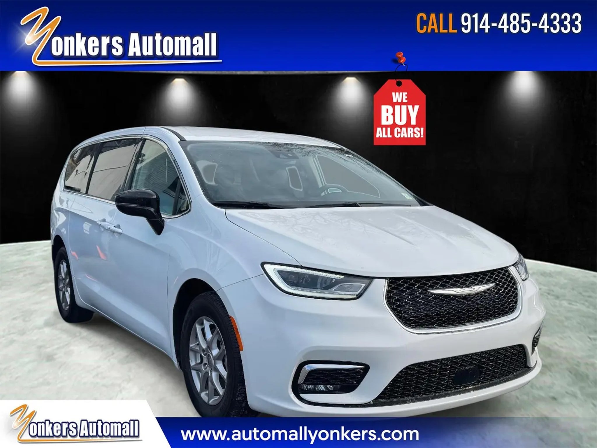 Yonkers Auto Mall has been helping customers at this location since 2007 and specializes in 1st class top quality off-lease vehicles with clean vehicle history reports. We'll always provide the customer with the support and customer service that's needed to ensure the customer is satisfied with our product and services.For your safety convenience and comfort this 2024 Chrysler Pacifica is equipped with: heated seatspower seatsrear view cameraleather seatsthird row seatAdaptive Sensing Cruise ControlAutomatic HeadlightsHeated Steering WheelLane Departure WarningPower Rear HatchRemote StartSatellite Radio ReadyBlind Spot DetectionLane AssistCross Traffic AlertAndroid AutoApple CarPlayBluetoothCaptain seatingForward Collision Mitigation and rain-sensing wipers. Easy approval process with same day delivery. We work with all types of credit. Yonkers Auto Mall is affiliated with over 30 franchise and pre-owned stores throughout the region. Carfax Certified Dealer. Automallyonkers.com or . Se Habla Espanol. Tax ID's (ITIN) welcome! See dealer website for full pricing details. 1716 Central Park Ave Yonkers NY 10710