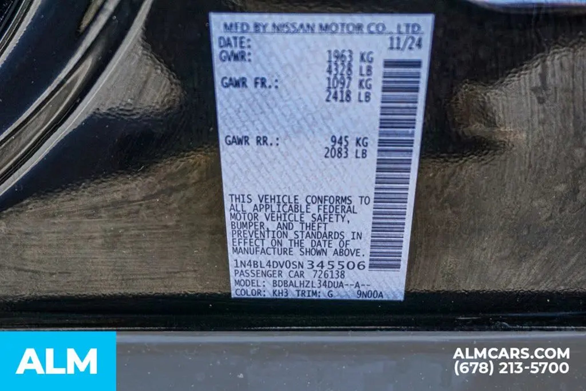 VIN 1N4BL4DV0SN345506